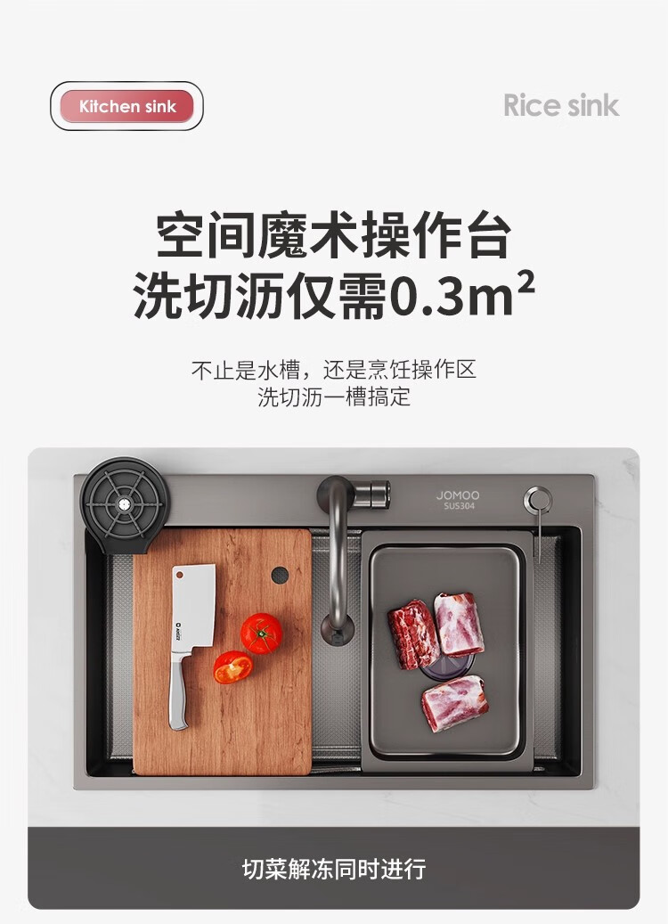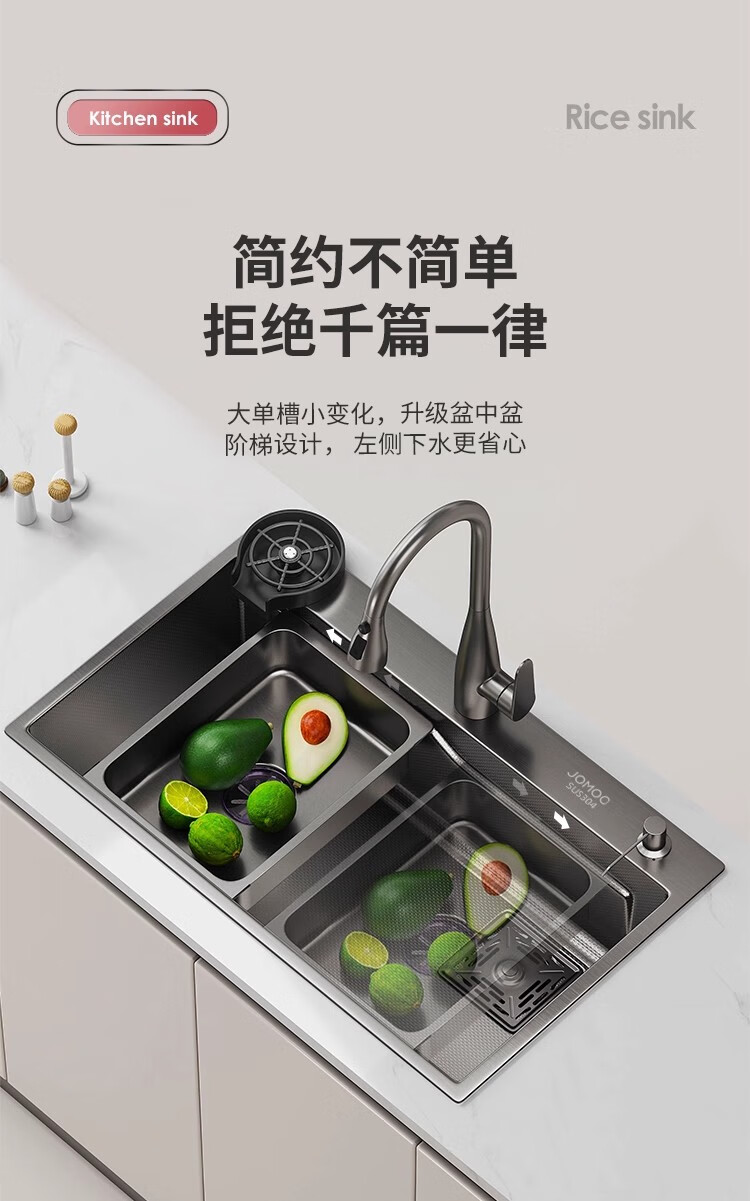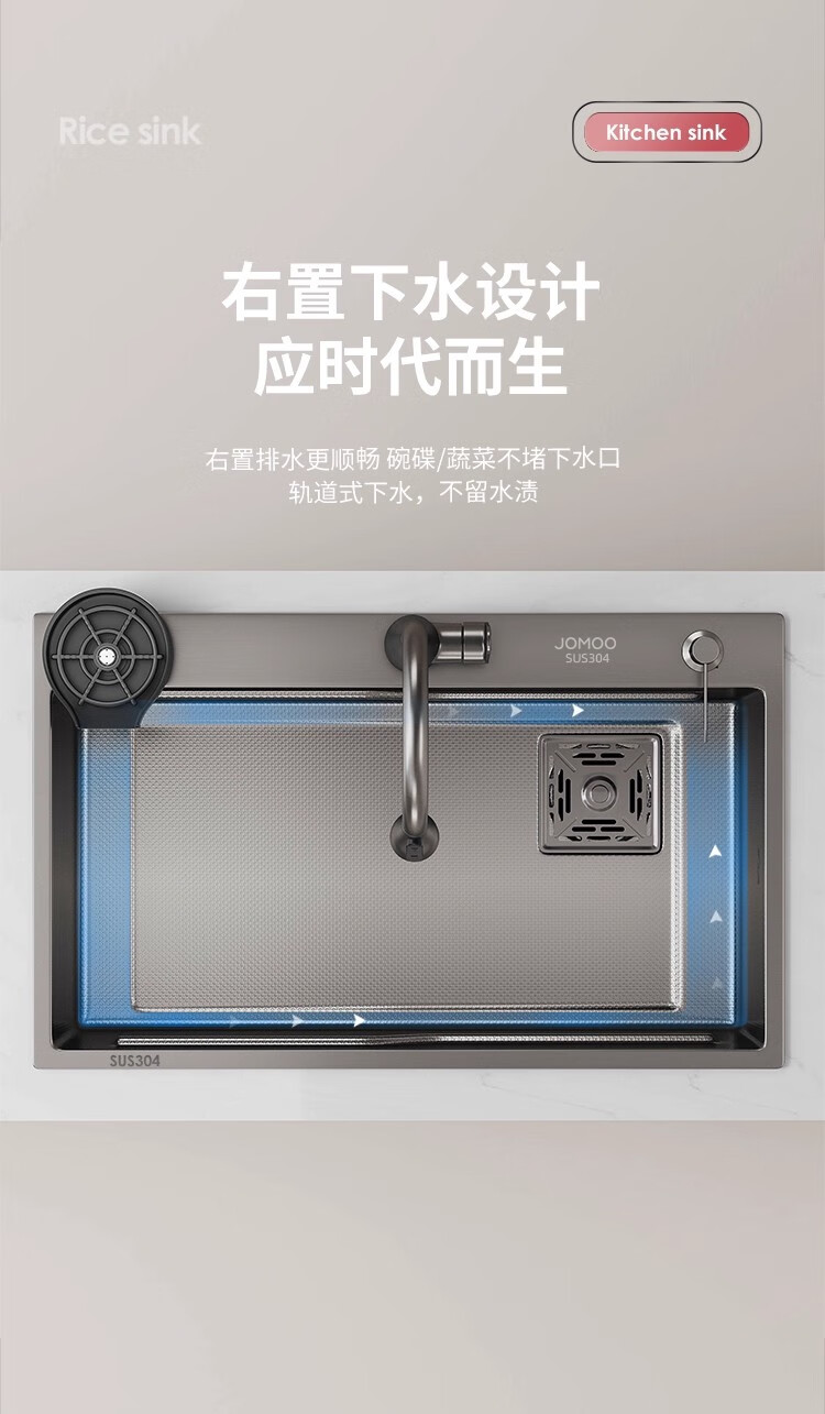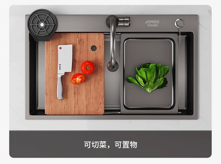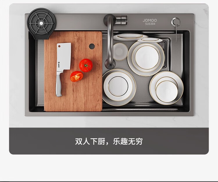 九牧(JOMOO)水槽枪灰色纳米加厚SUS304不锈钢手工大单槽家用厨房洗菜盆洗碗池 标准套餐[不带龙头] 600*450mm