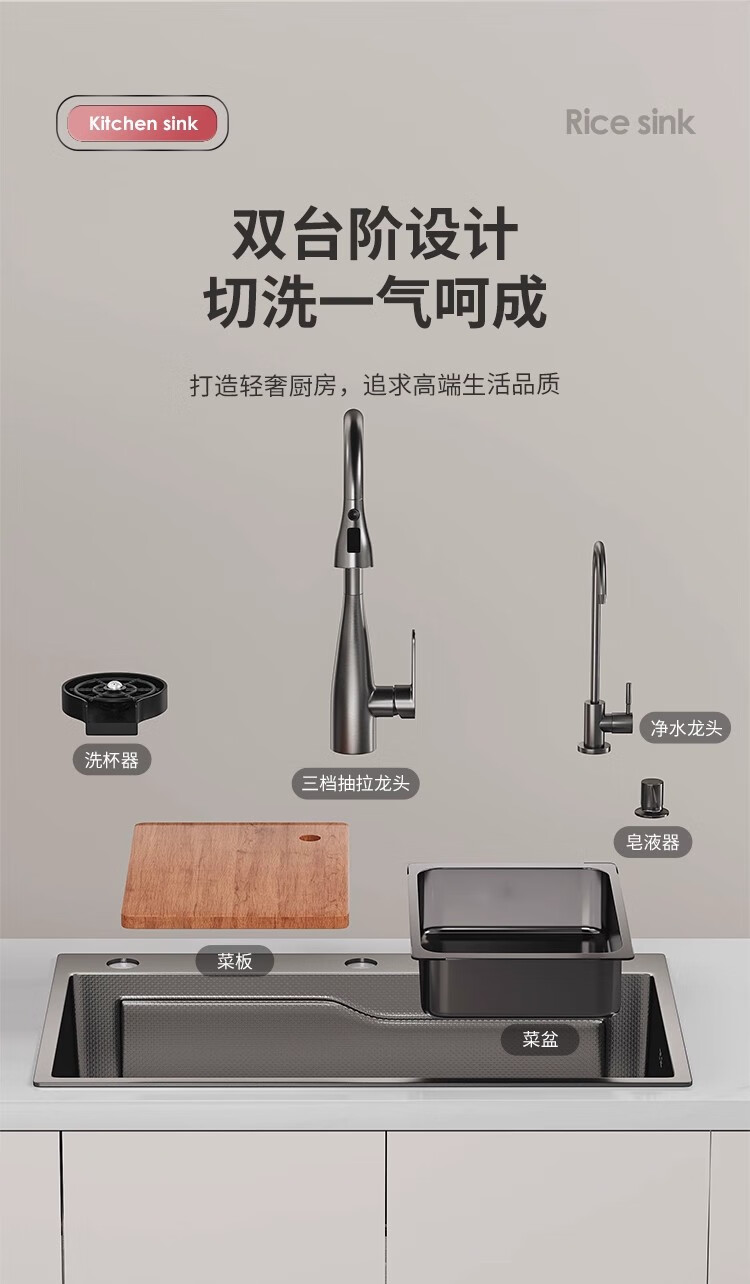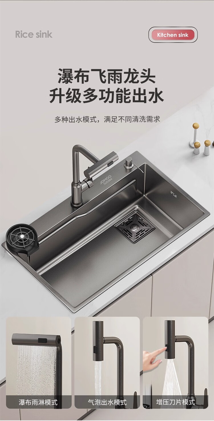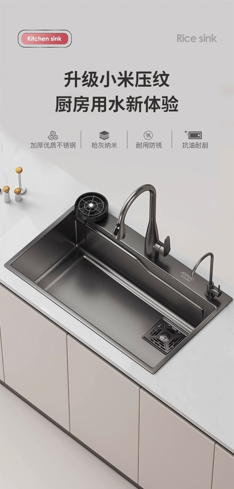 九牧(JOMOO)水槽枪灰色纳米加厚SUS304不锈钢手工大单槽家用厨房洗菜盆洗碗池 标准套餐[不带龙头] 600*450mm