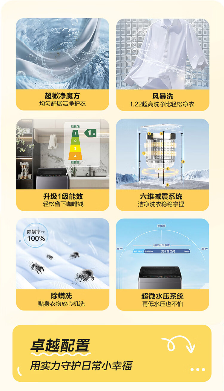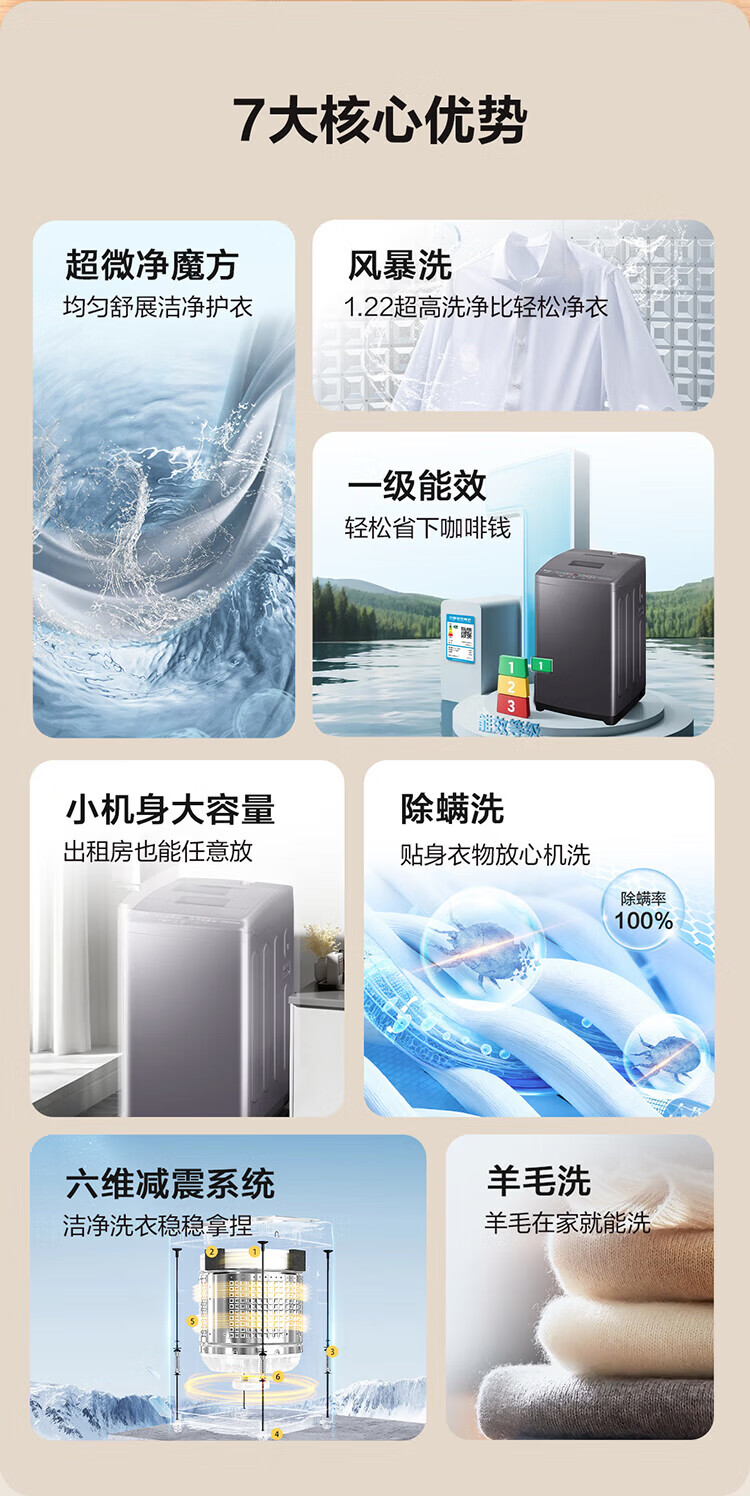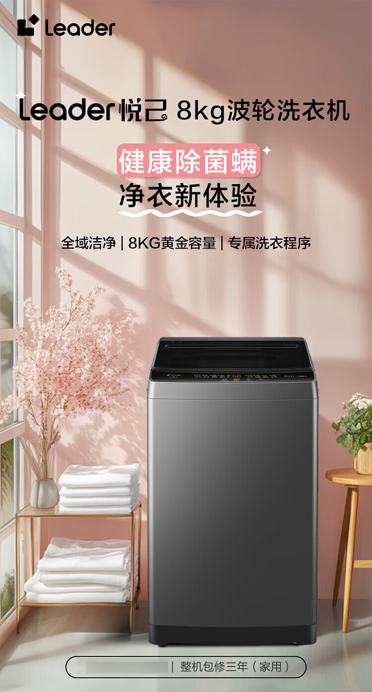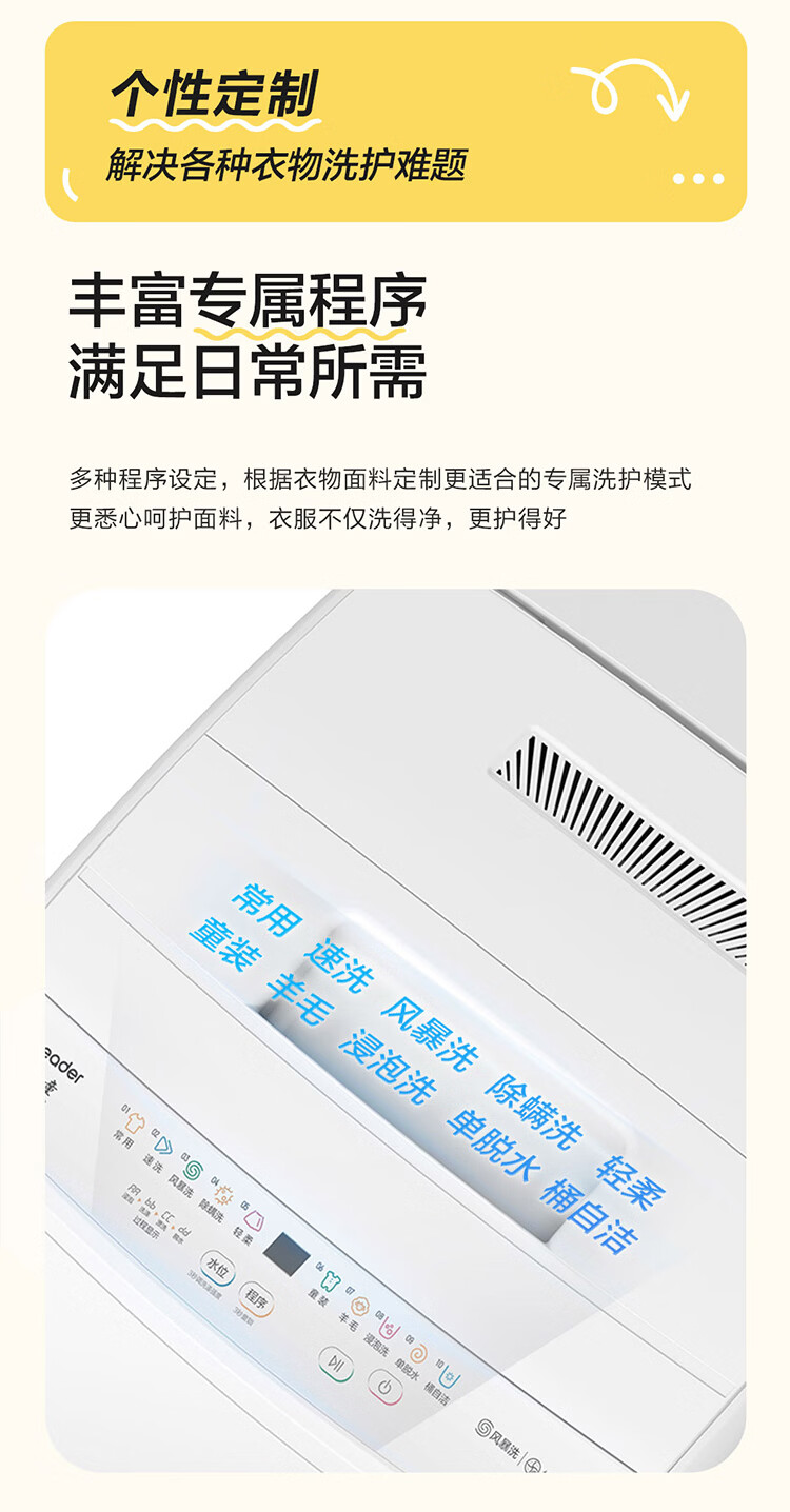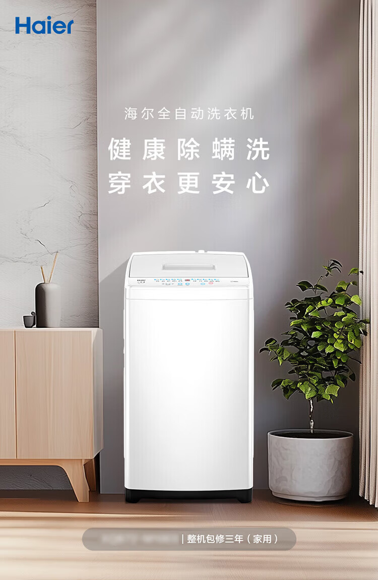 海尔(Haier)海尔波轮洗衣机全自动8/10公斤大神童大容量租房家用神器升级除菌除螨洗柔护内筒以旧换新补贴统帅 一级能效除螨洗风暴洗1.22洗净比 波轮 8.2kg