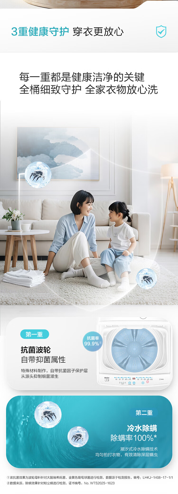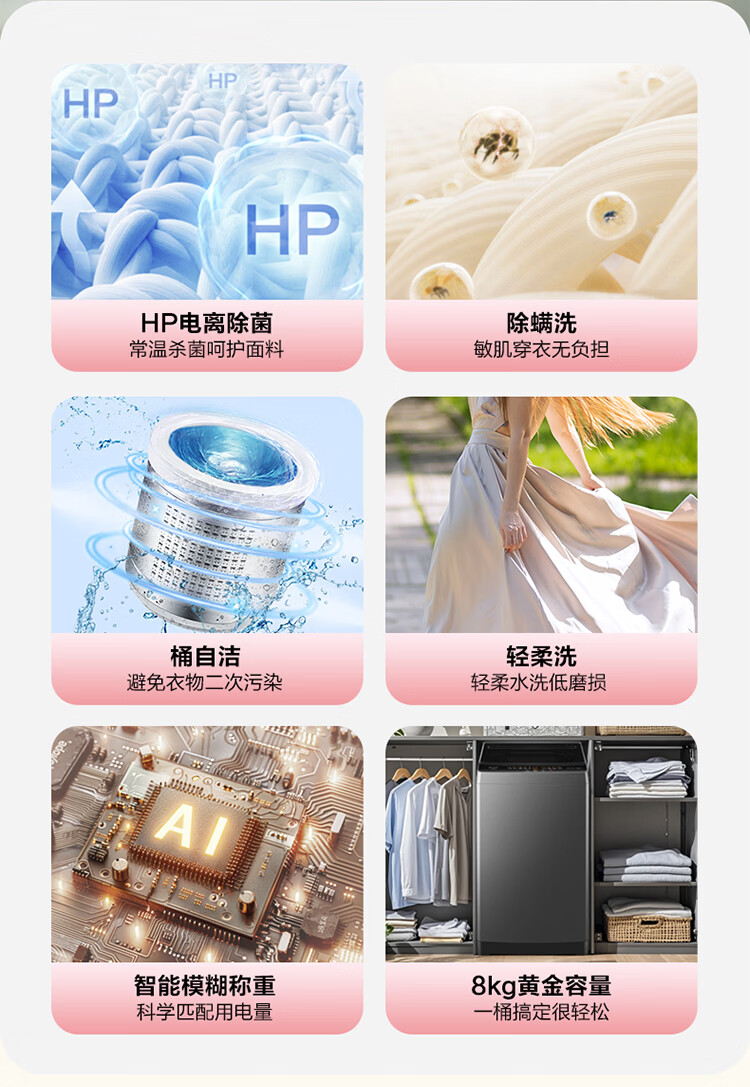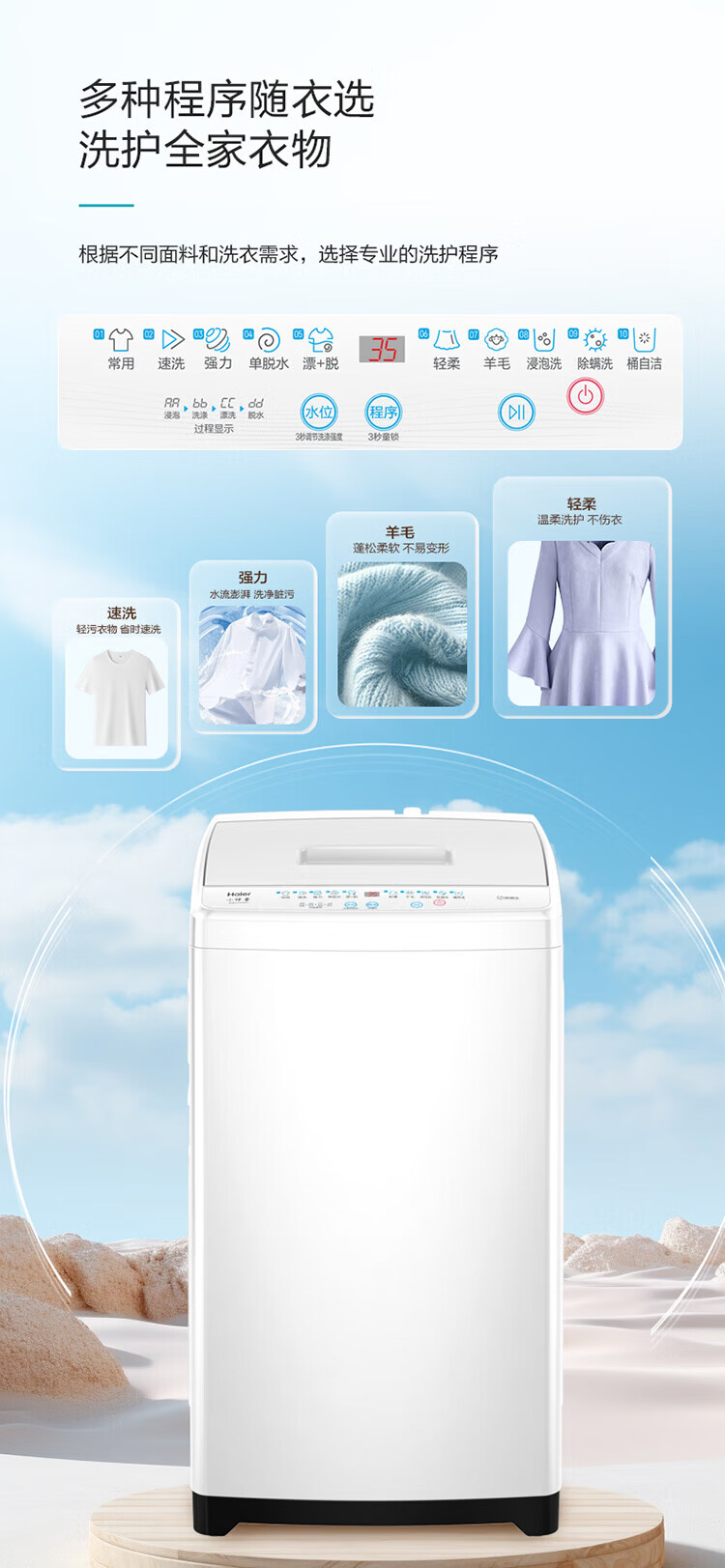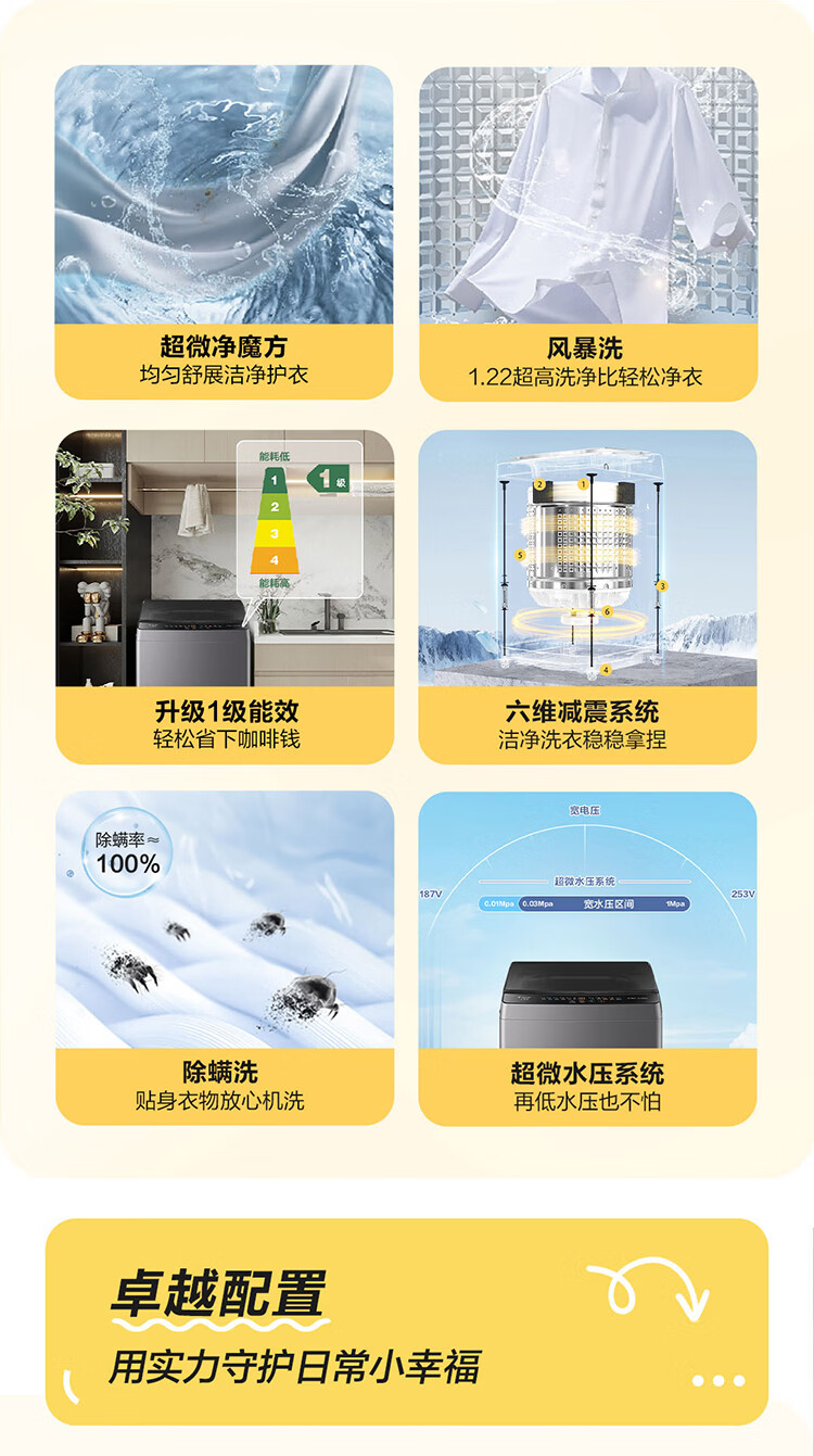 海尔(Haier)海尔波轮洗衣机全自动8/10公斤大神童大容量租房家用神器升级除菌除螨洗柔护内筒以旧换新补贴统帅 一级能效除螨洗风暴洗1.22洗净比 波轮 8.2kg