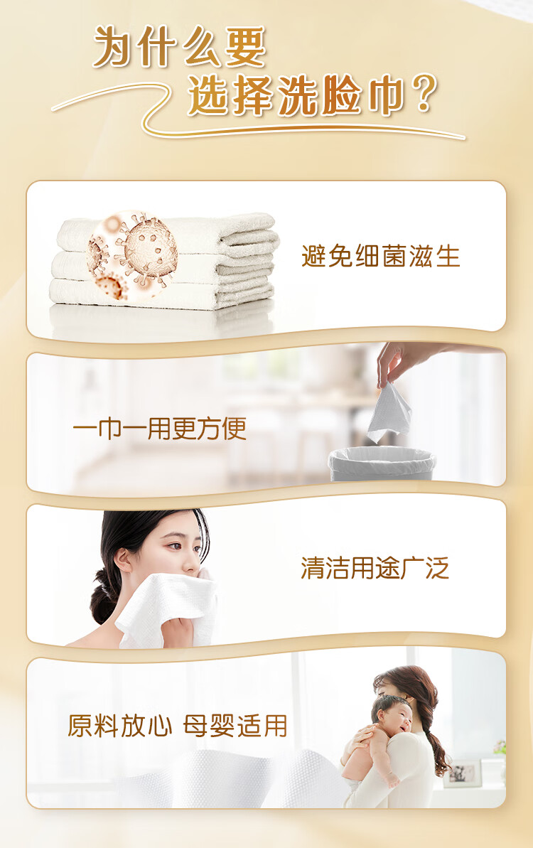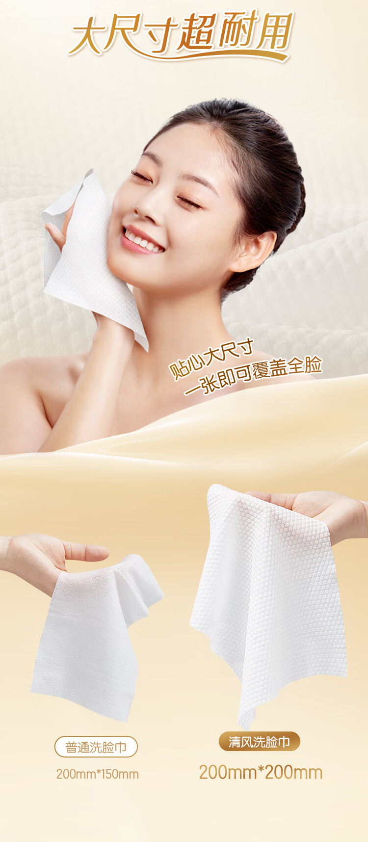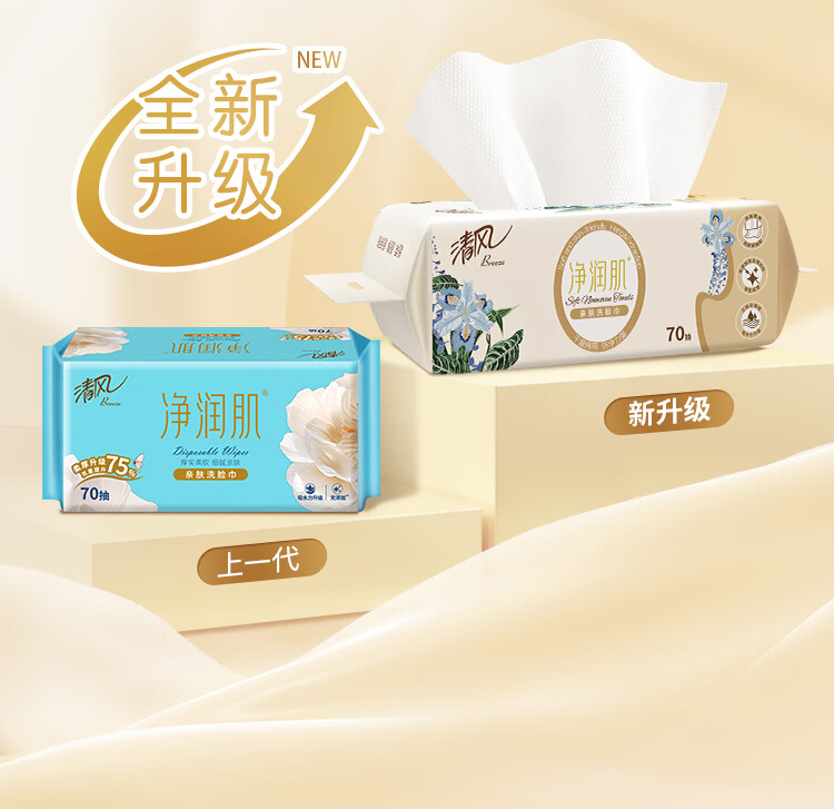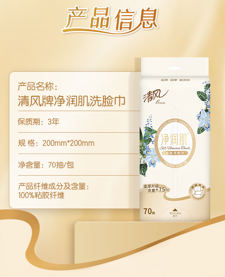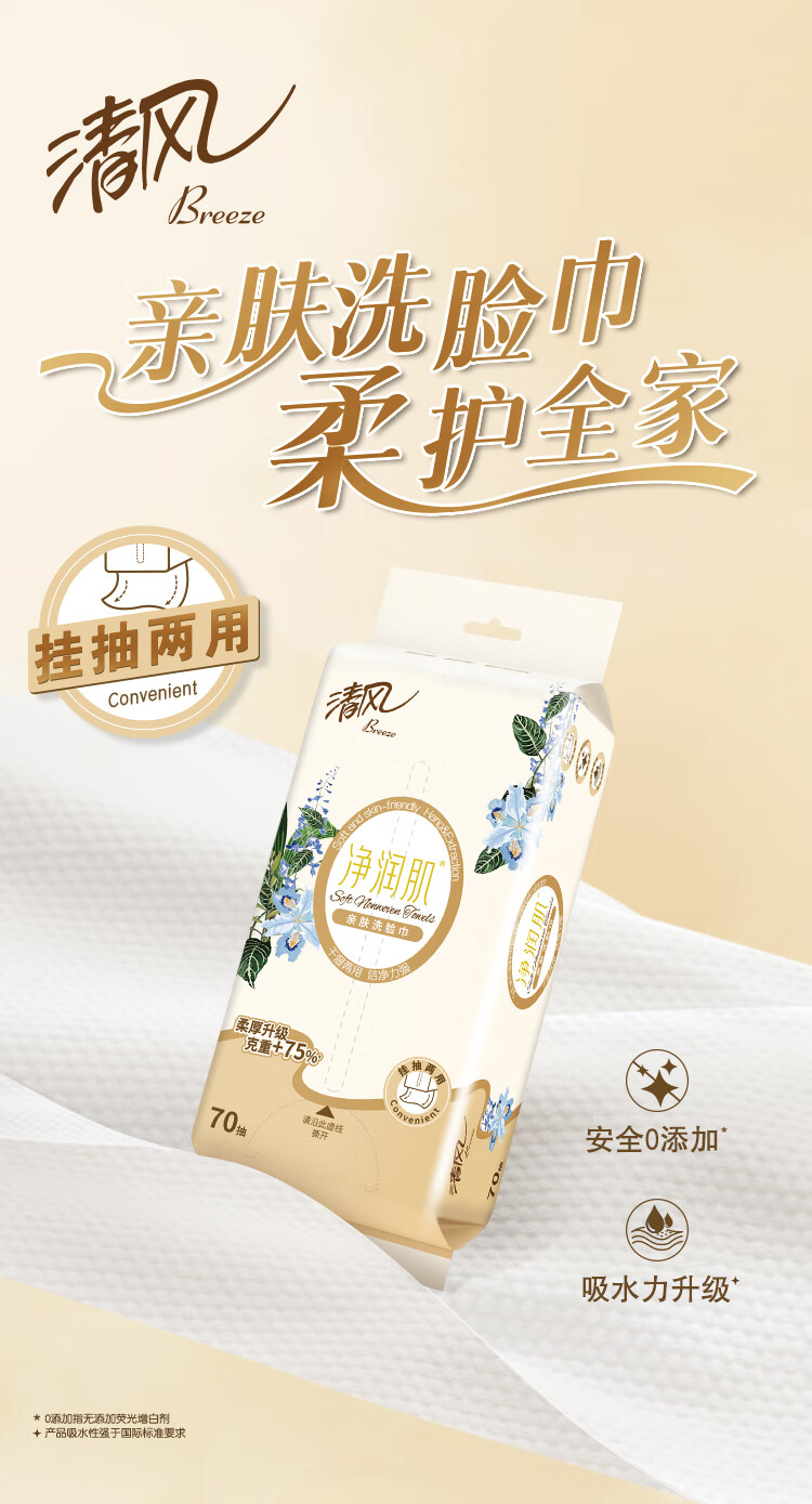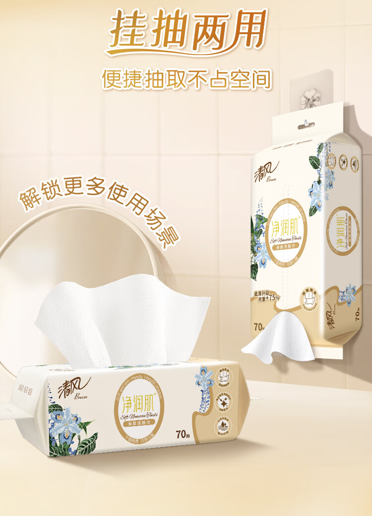 清风悬挂式洗脸巾70抽*1包 一次性擦脸巾加厚棉柔巾 挂抽两用