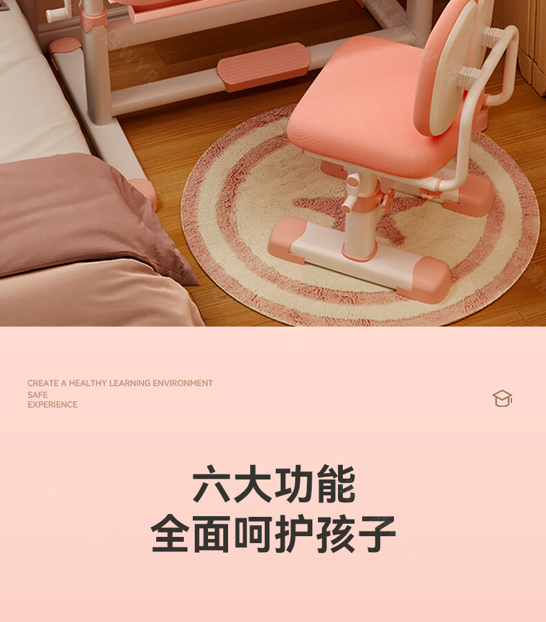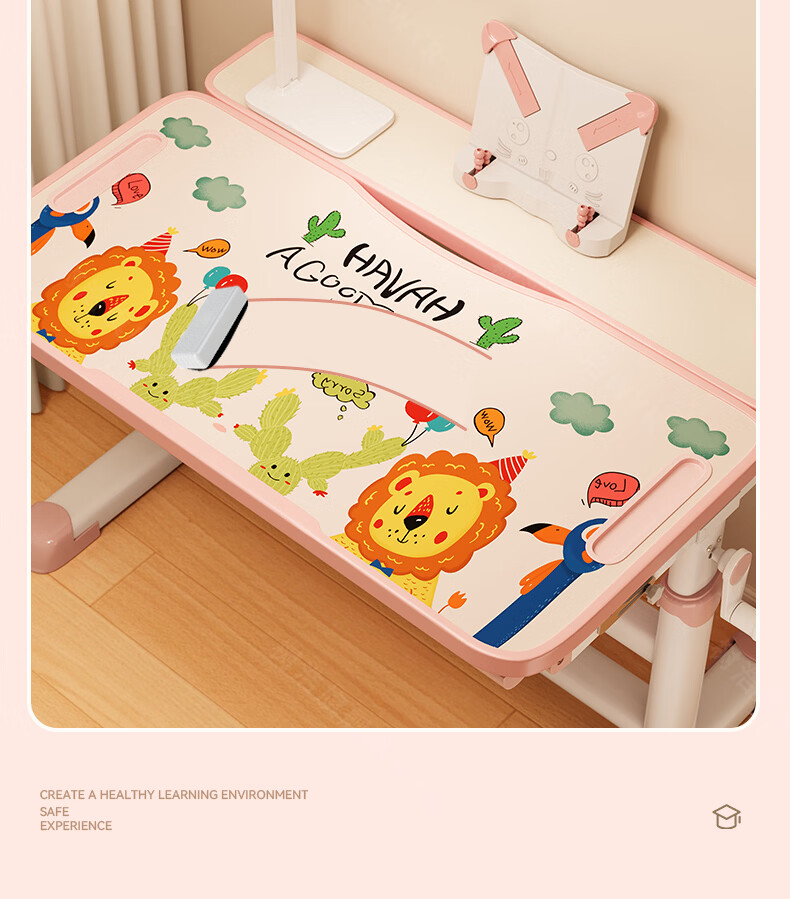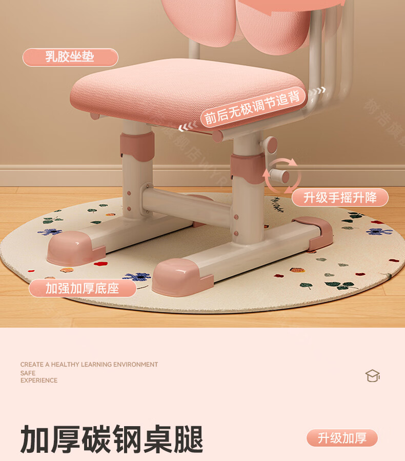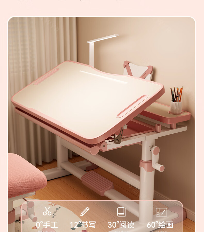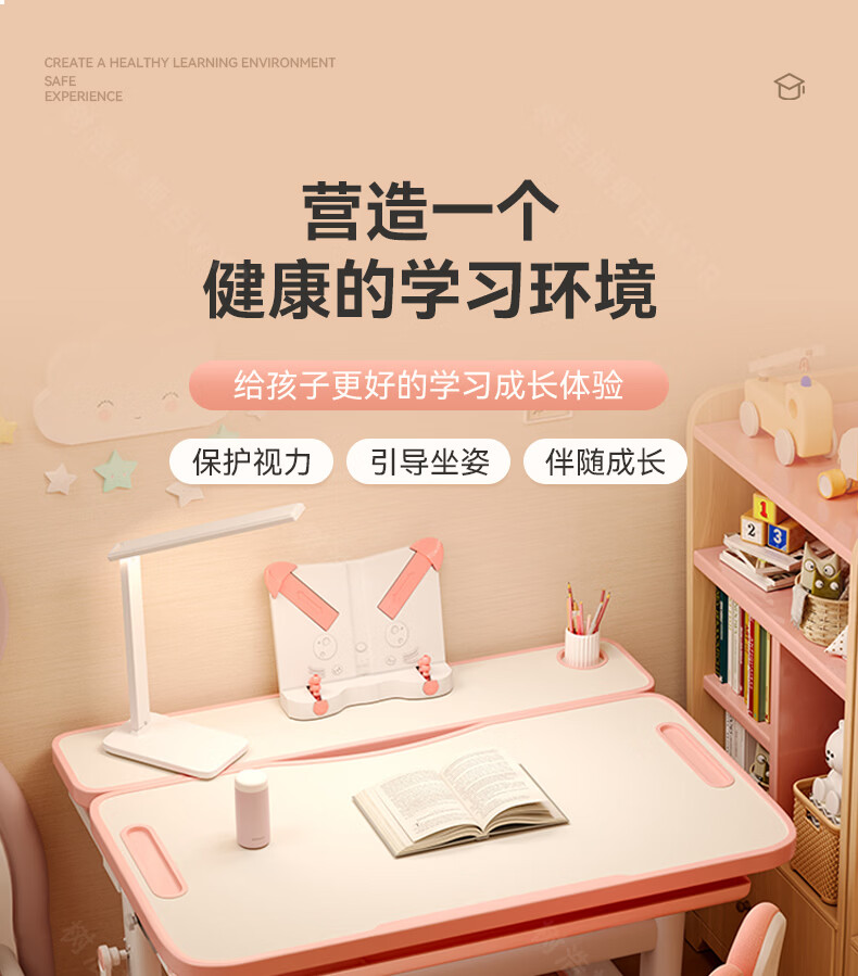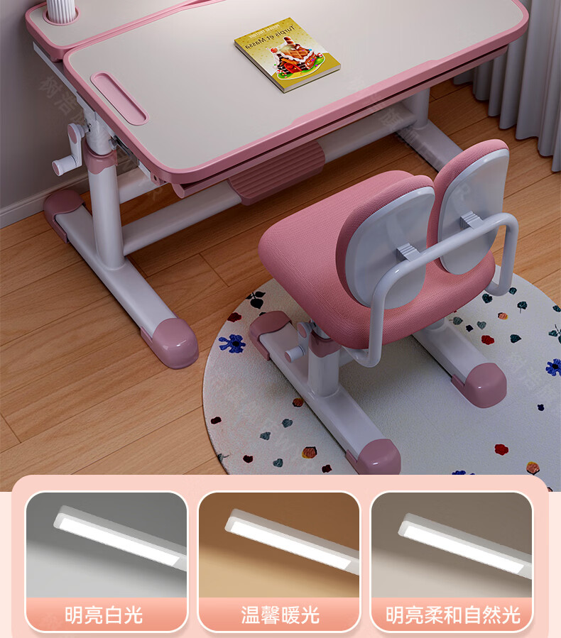 树浩儿童学习桌小学生家用可升降桌子小户型书房写作业专用书桌椅套装 【升级粉】乳胶椅+手摇升降桌+阅读架