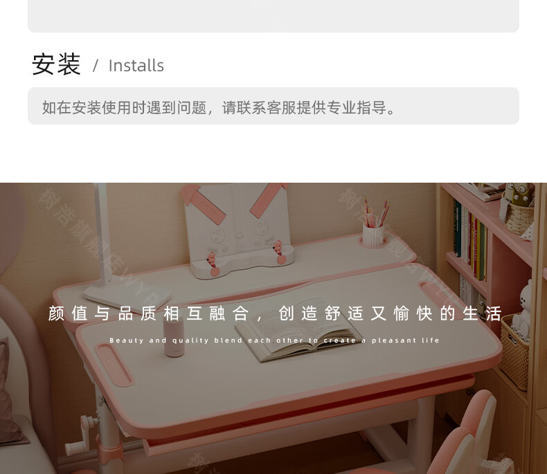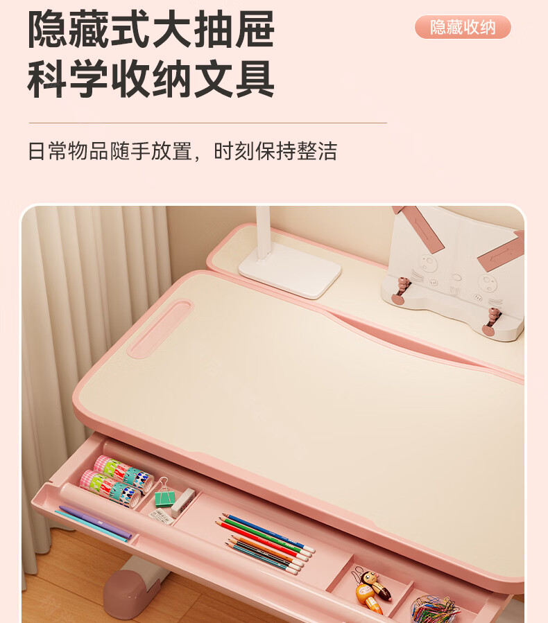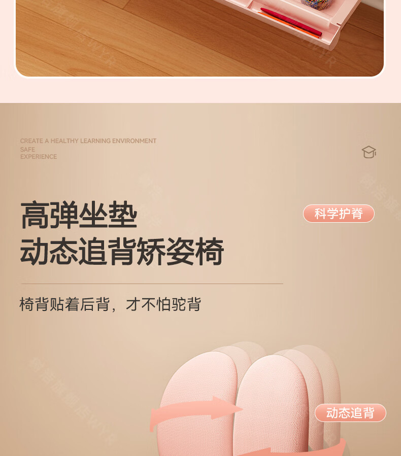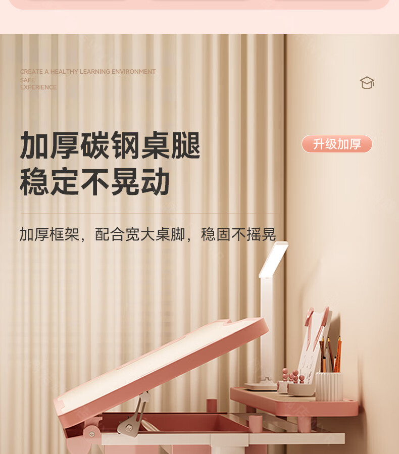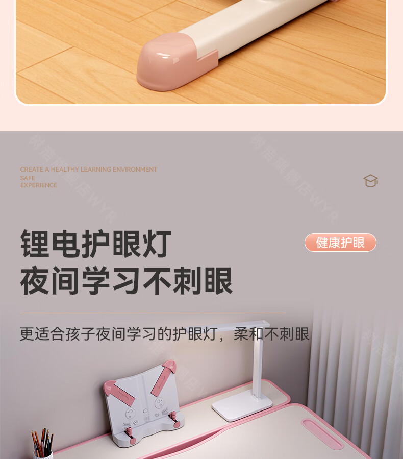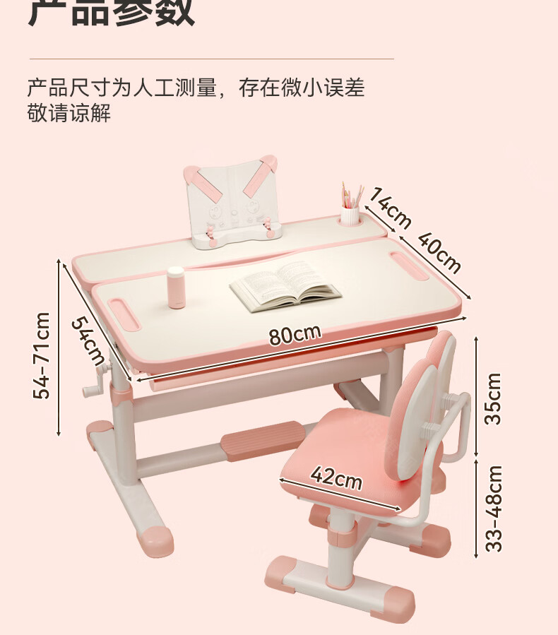 树浩儿童学习桌小学生家用可升降桌子小户型书房写作业专用书桌椅套装 【升级粉】乳胶椅+手摇升降桌+阅读架