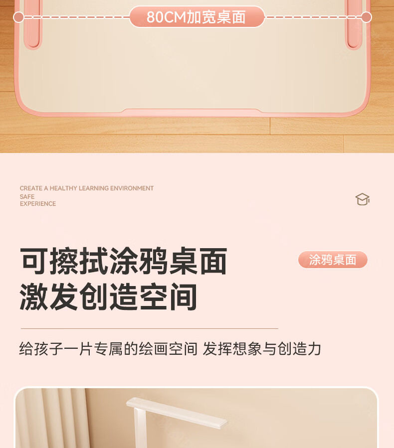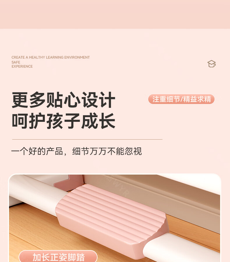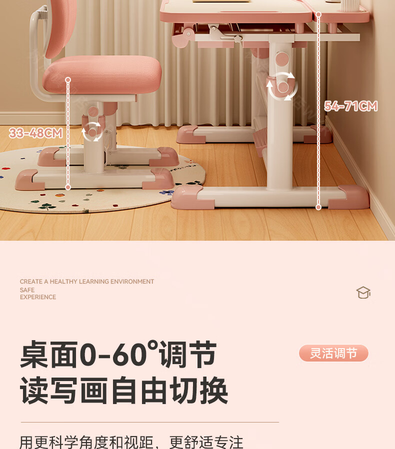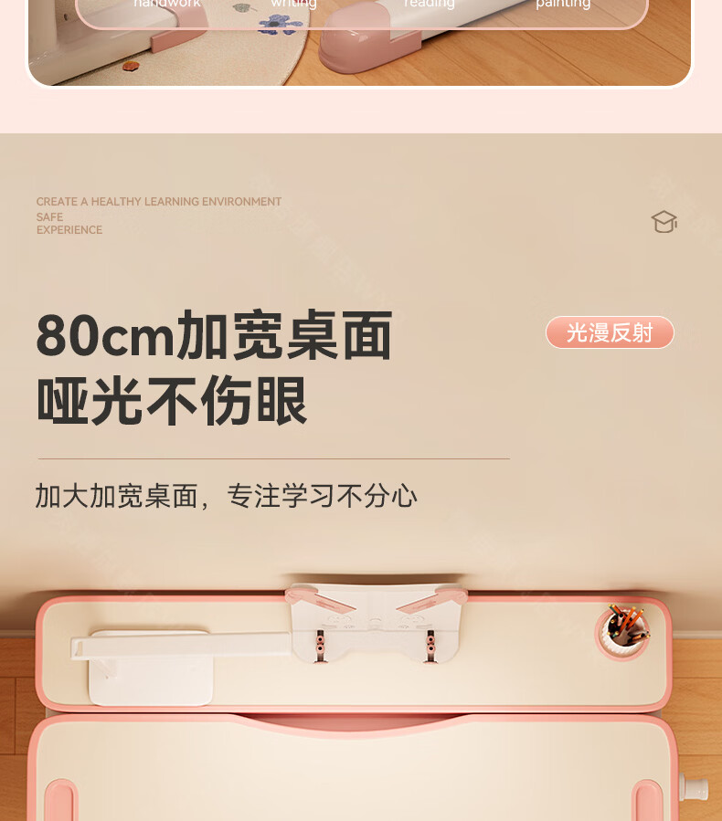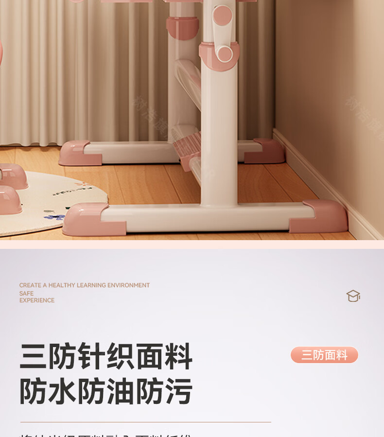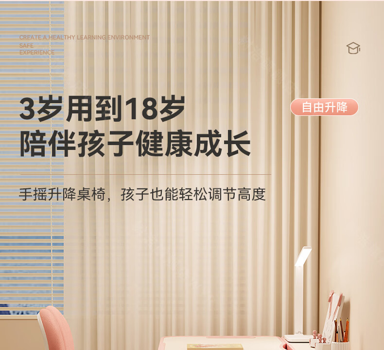 树浩儿童学习桌小学生家用可升降桌子小户型书房写作业专用书桌椅套装 【升级粉】乳胶椅+手摇升降桌+阅读架