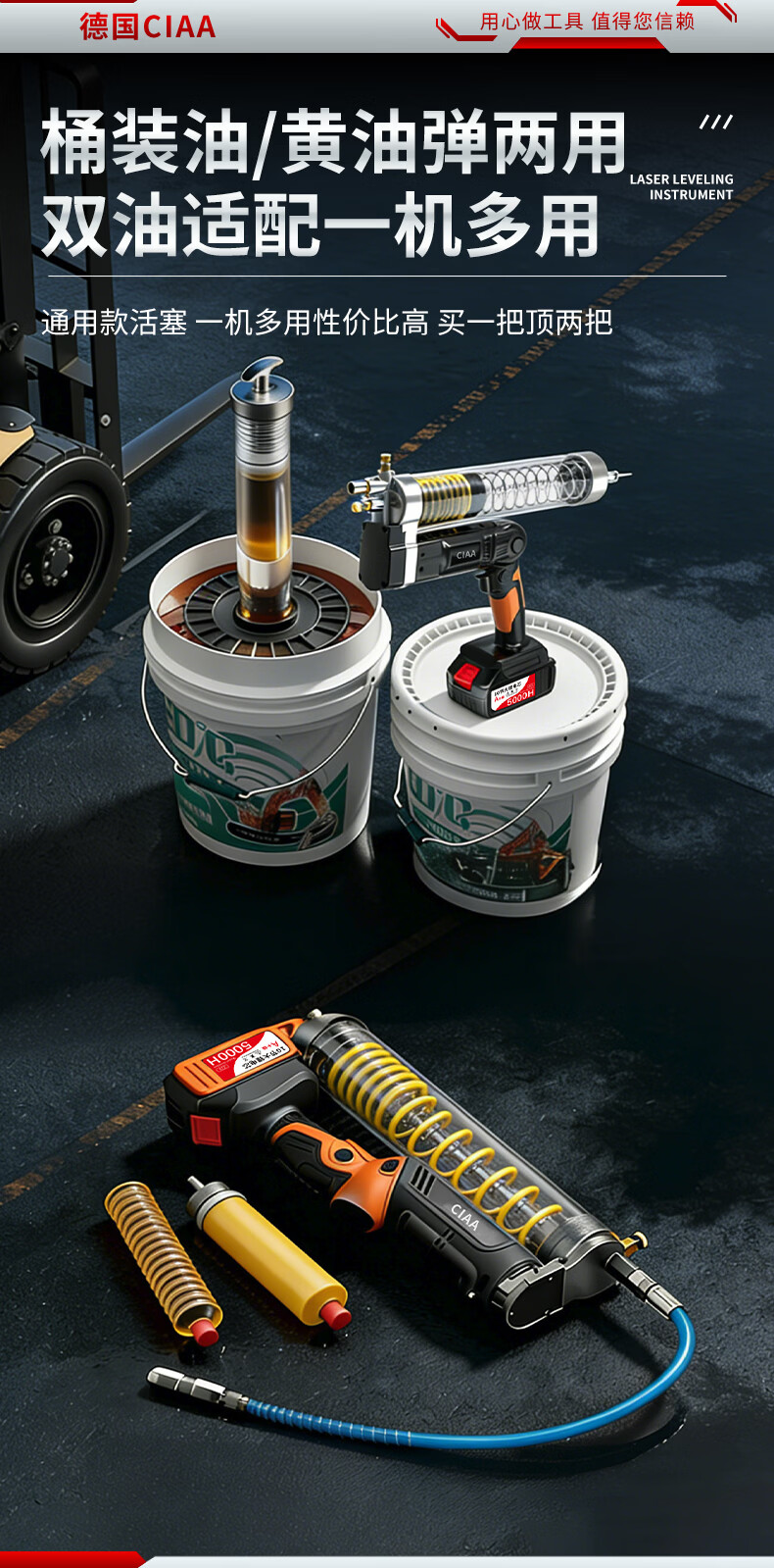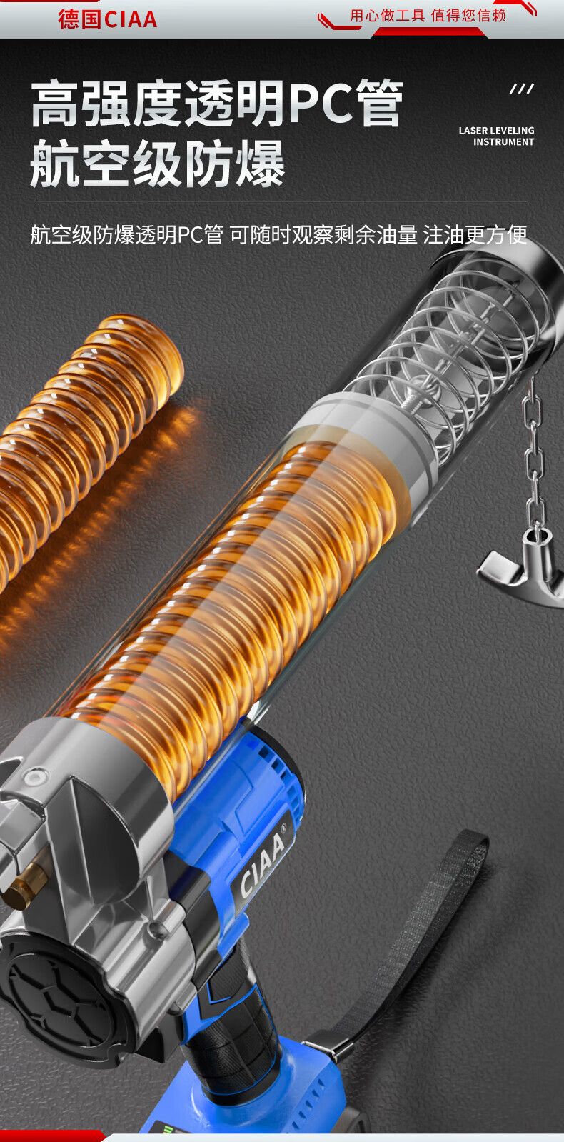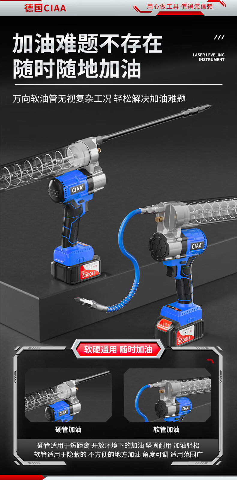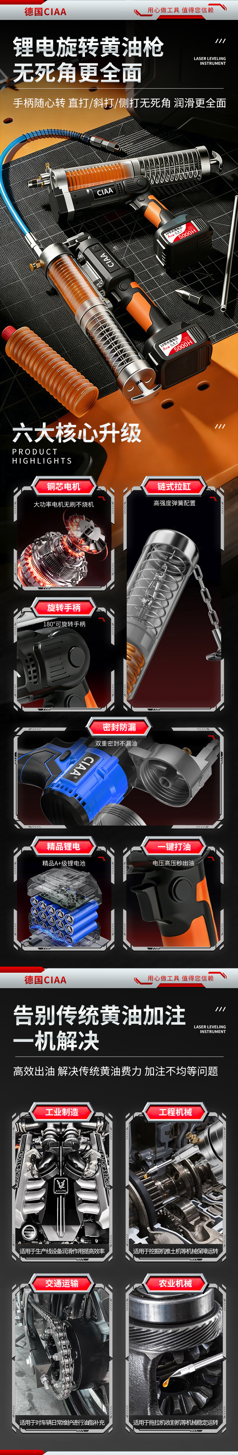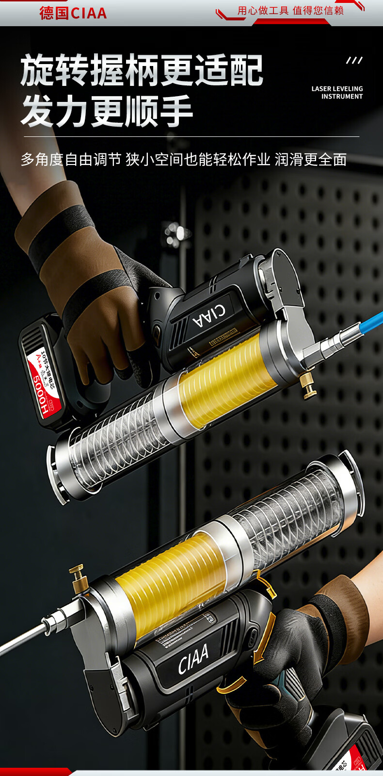 CIAA德国 充电式电动黄油枪锂电池挖机专用高压毛毛虫便携打黄油神器 重载款(一块5节2500H电池) 手柄可旋转