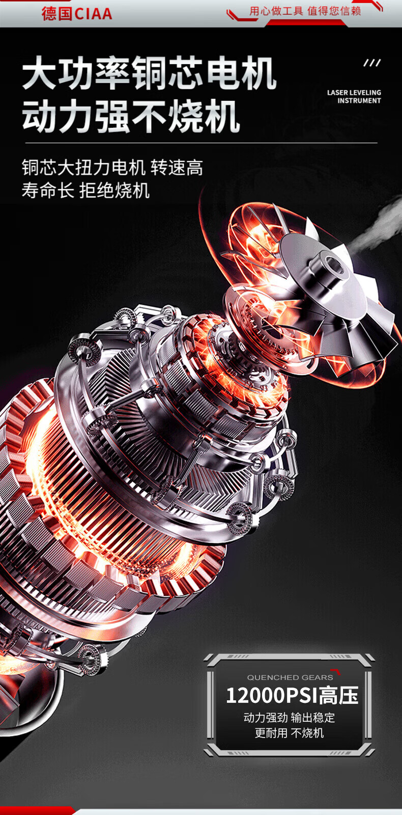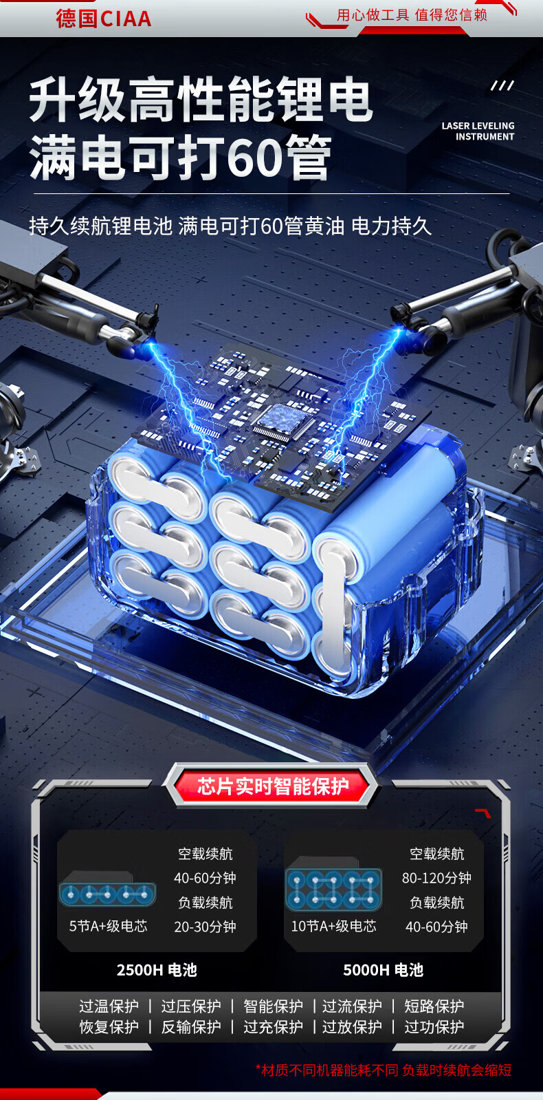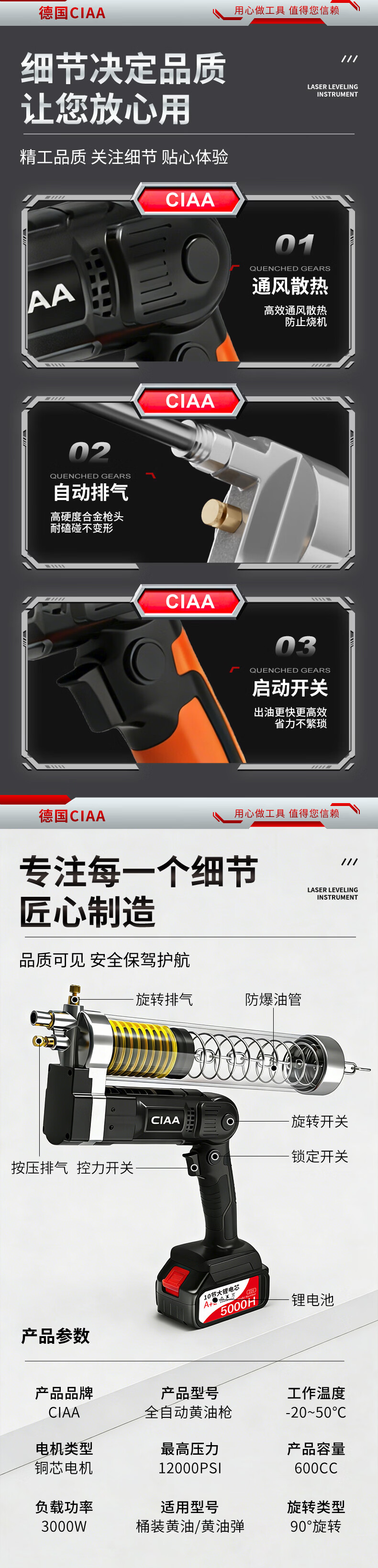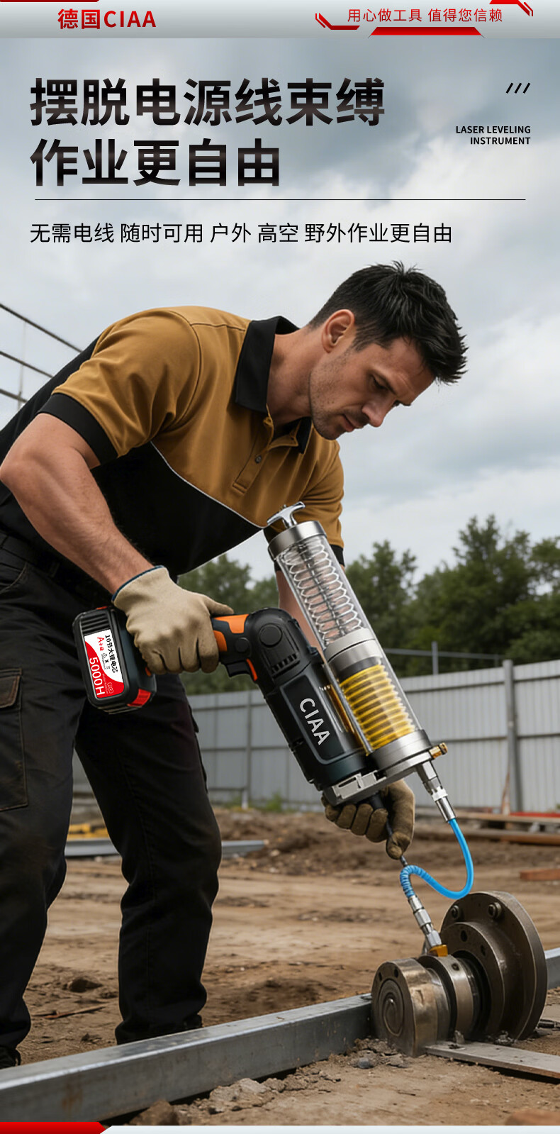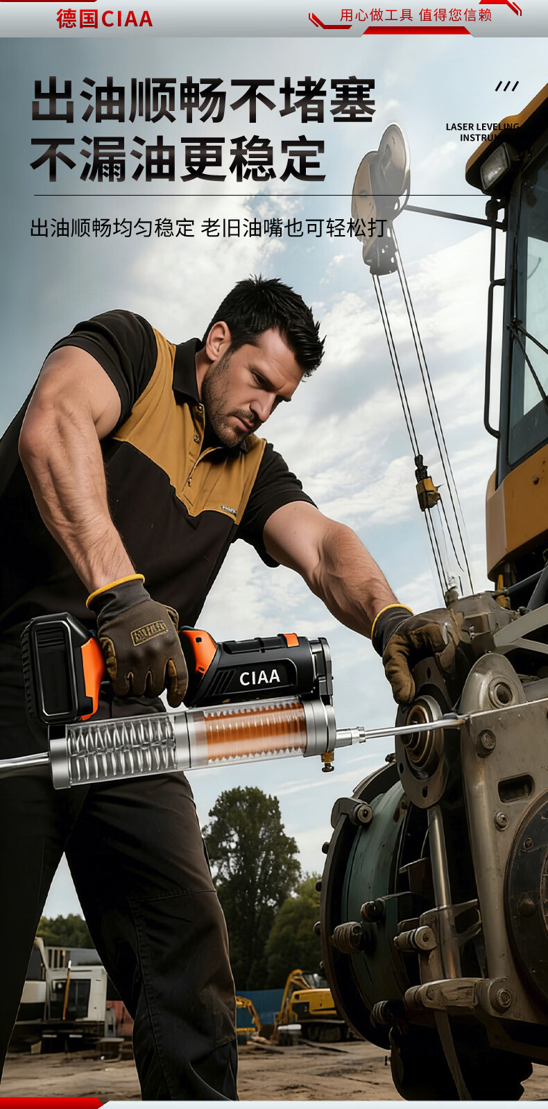 CIAA德国 充电式电动黄油枪锂电池挖机专用高压毛毛虫便携打黄油神器 重载款(一块5节2500H电池) 手柄可旋转