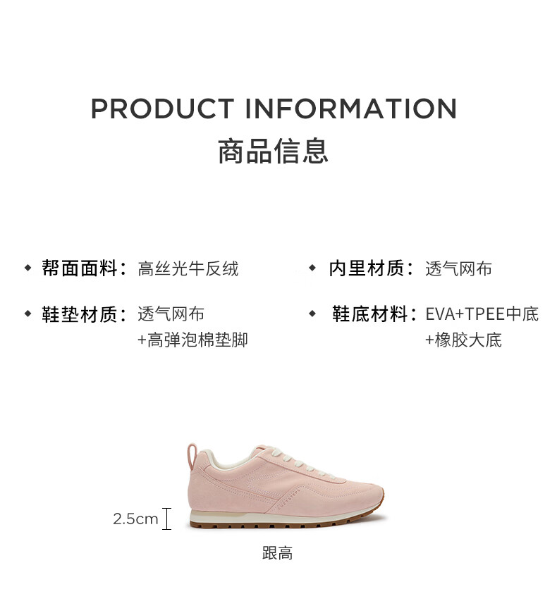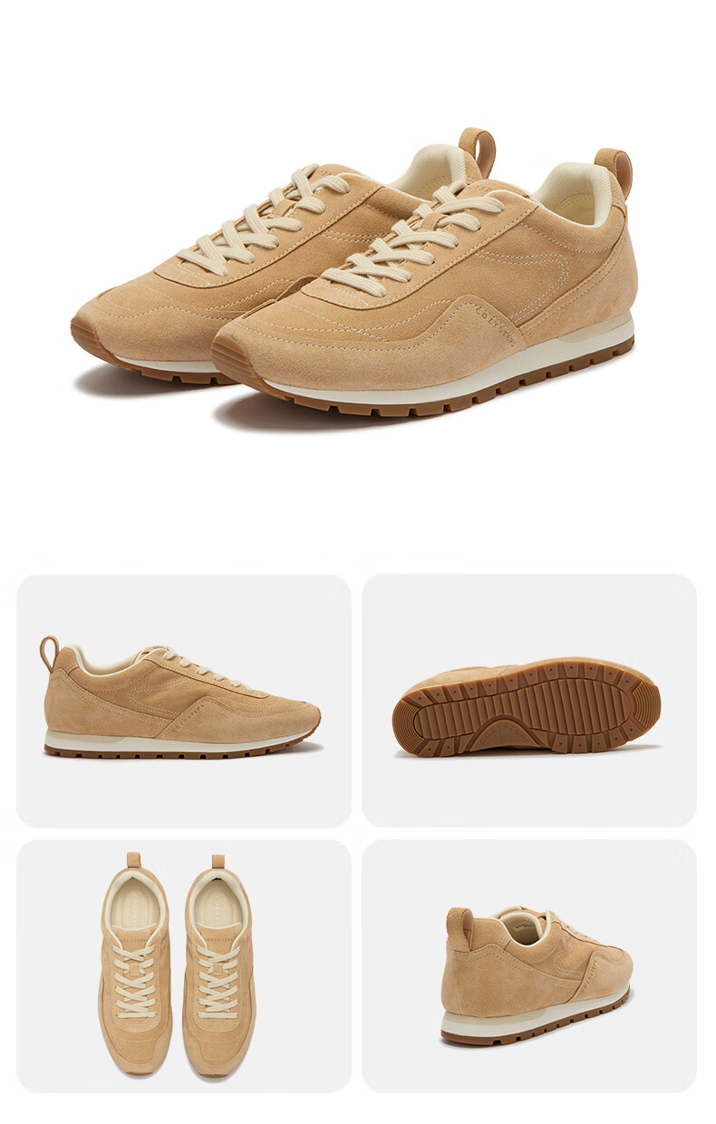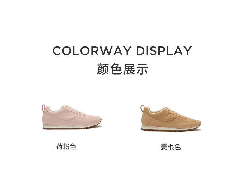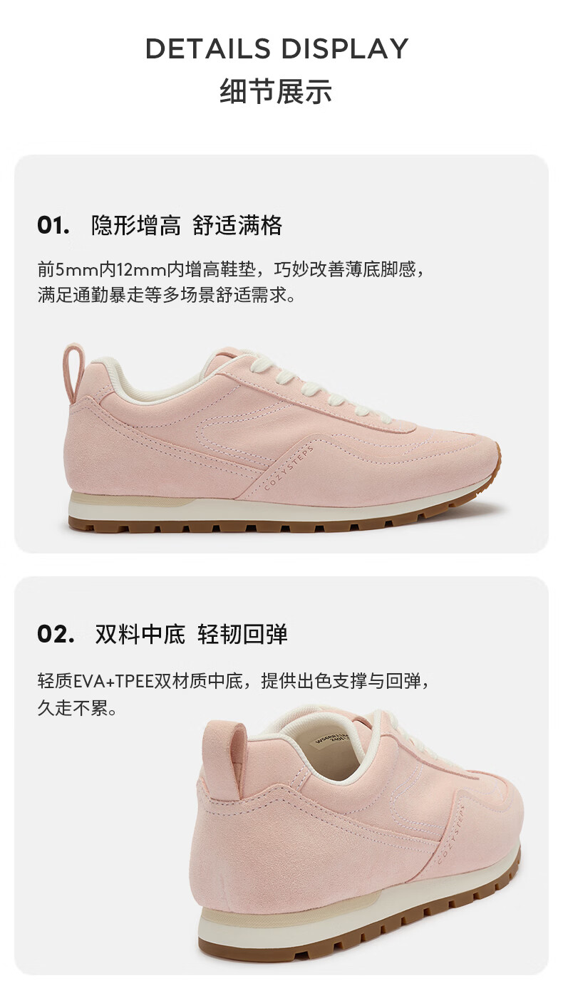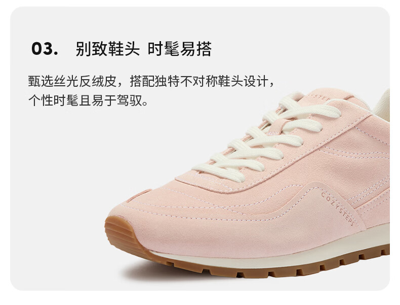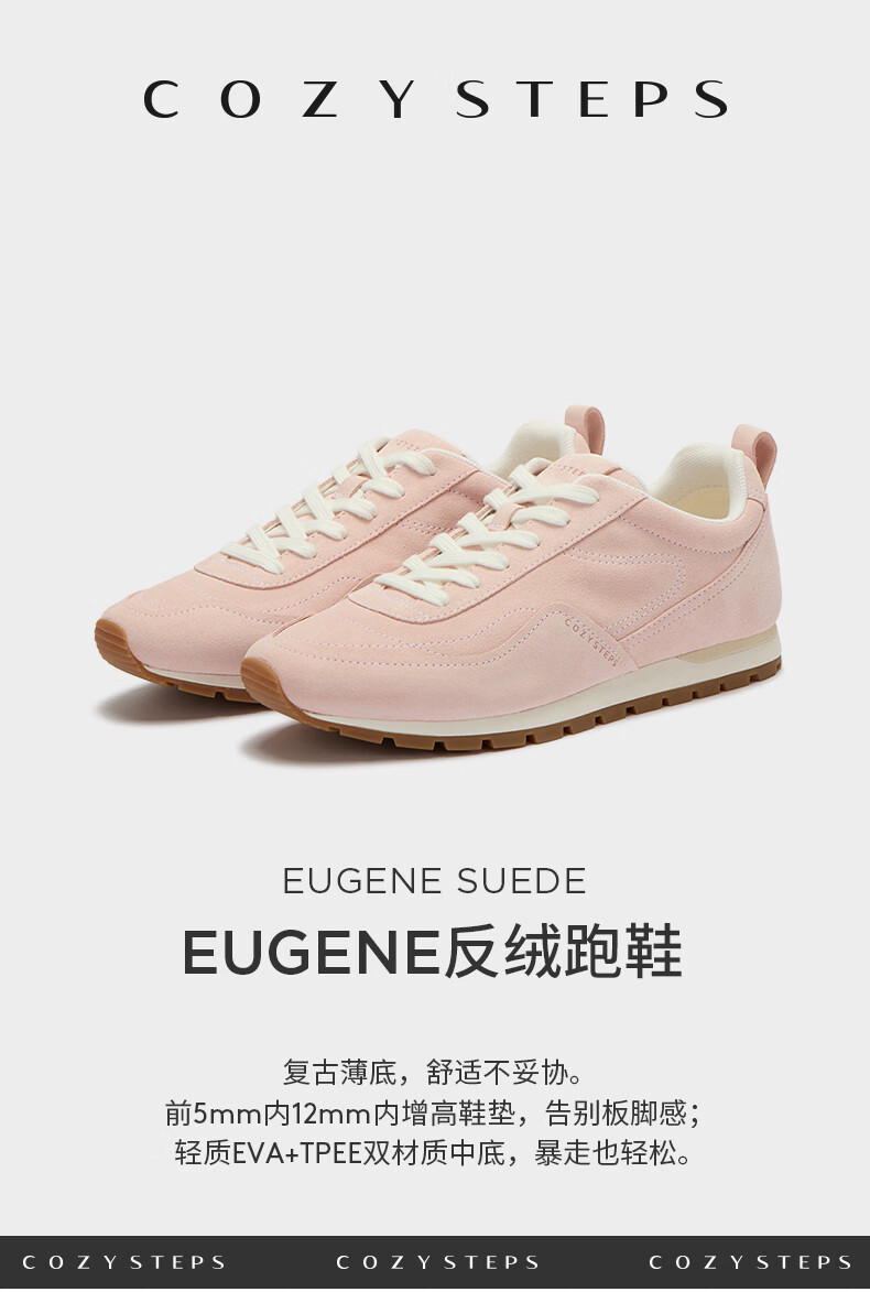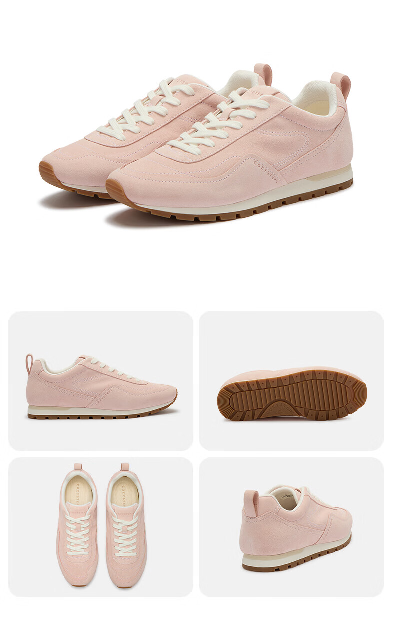 COZY STEPS可至女士26春季新款复古牛反绒休闲鞋薄底系带跑鞋 荷粉色 37