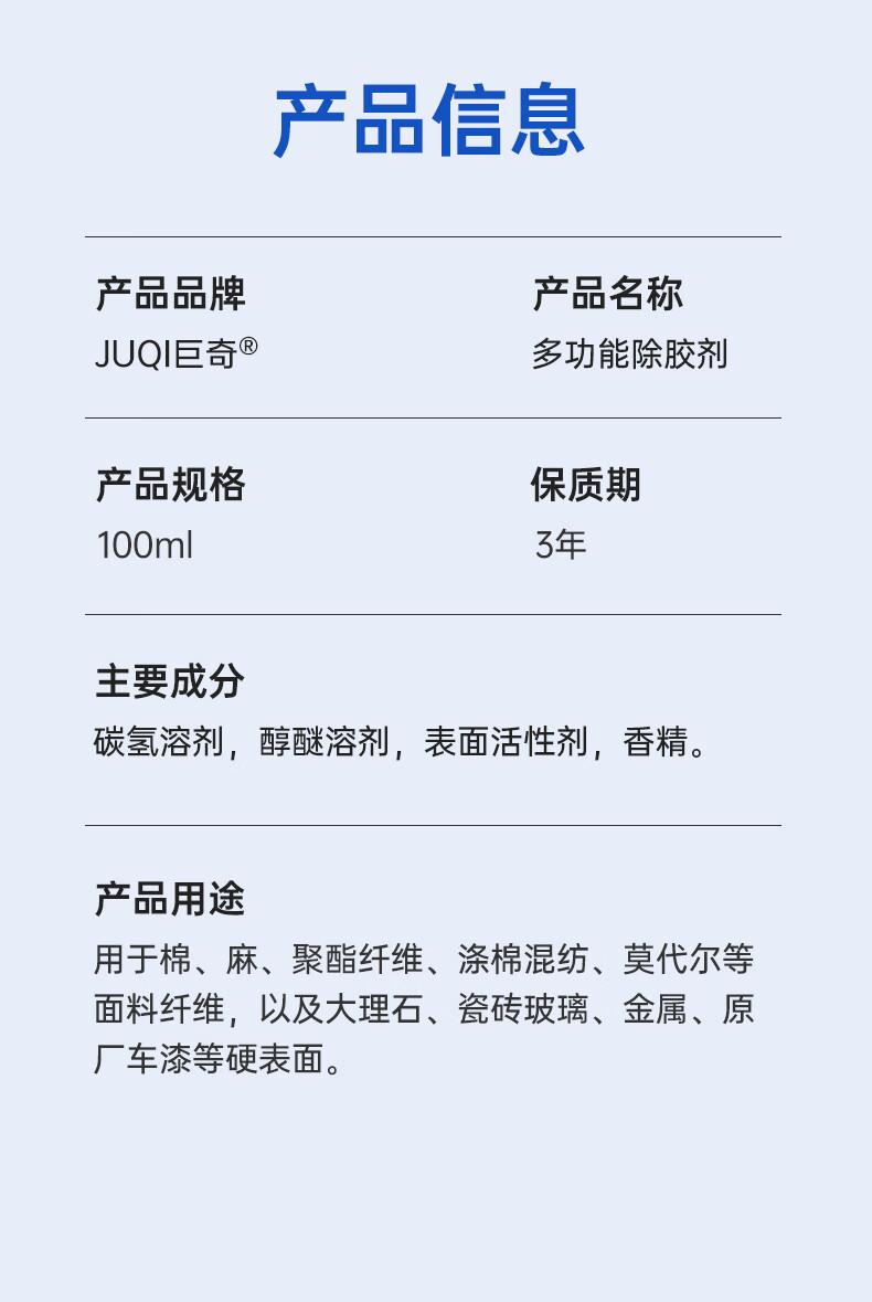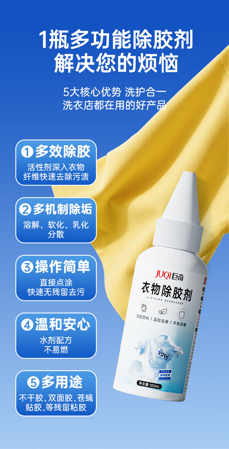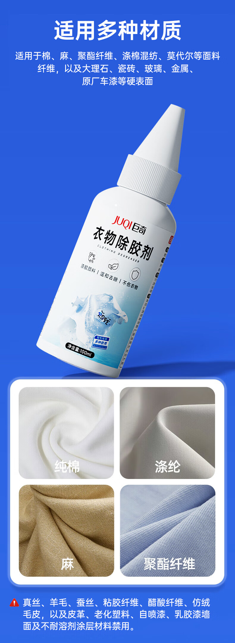 巨奇严选衣物除胶剂100ml*1瓶强力去除黏胶去污衣服发泡胶去除剂