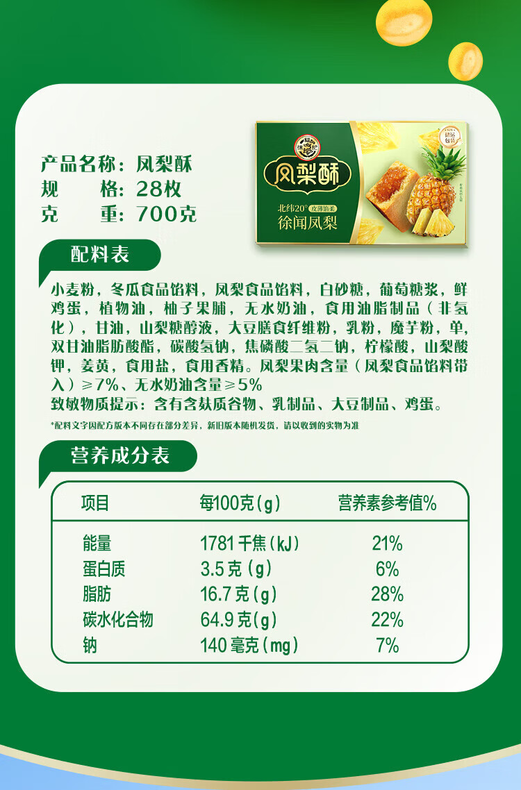 徐福记 包馅酥凤梨酥一口酥台湾风味营养早餐休闲零食下午茶小吃 【箱装28枚】约700g