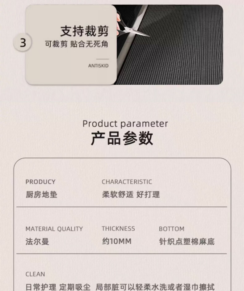 布迪思2026厨房专用地垫防水防油简约耐脏防滑可擦免洗 家的味道 50*80CM【厨房浴室通用】