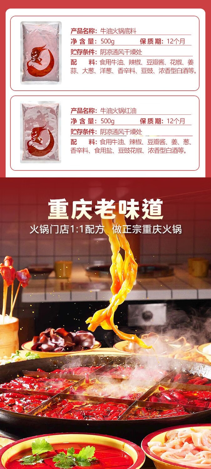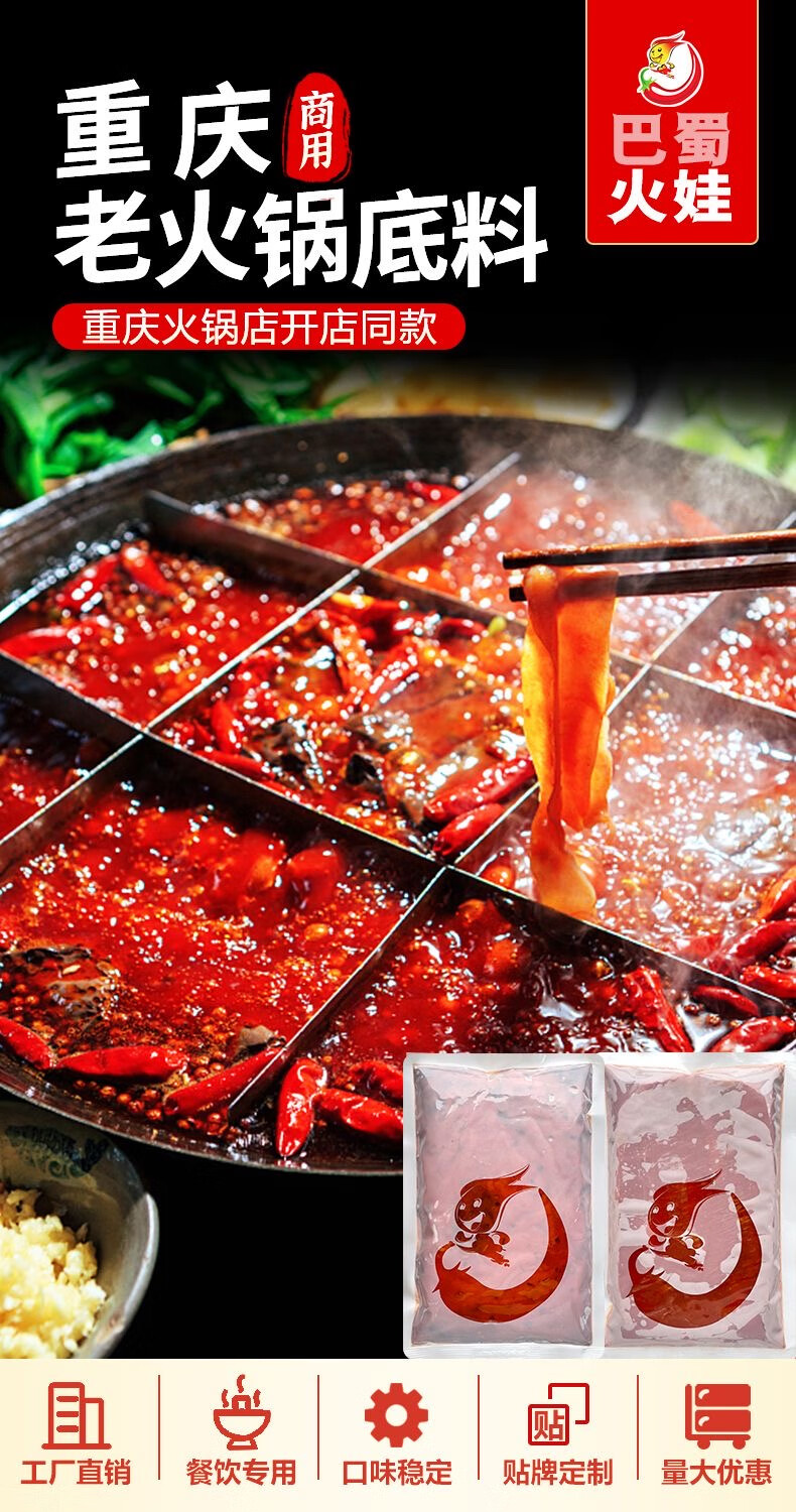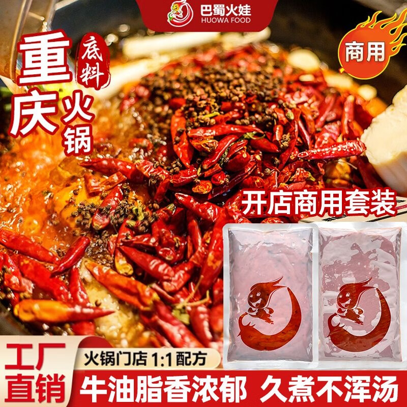 巴蜀火娃牛油火锅底料500g商用重庆老火锅调料批发四川牛油麻辣烫冒菜底料 性价比套装油+料1000g