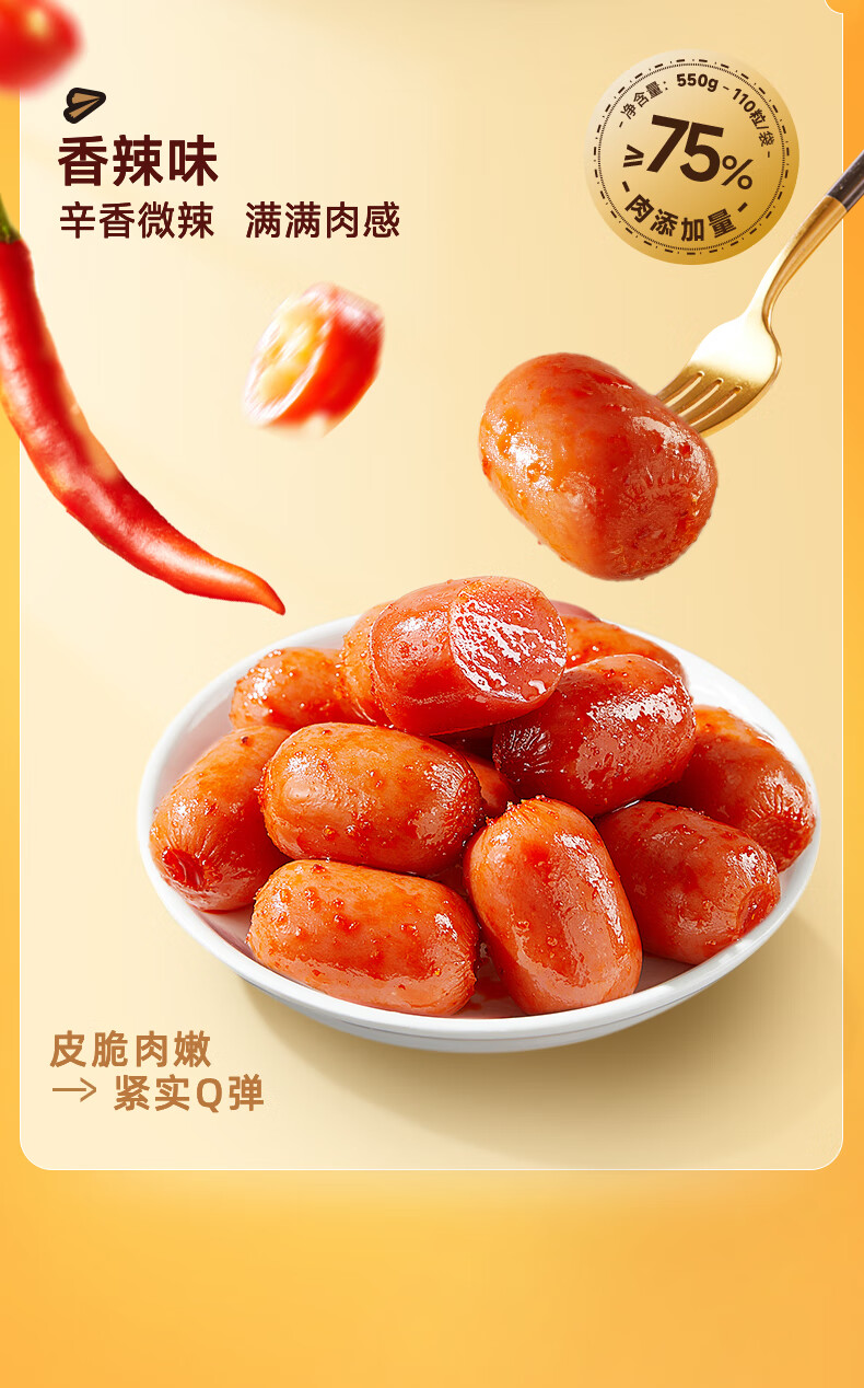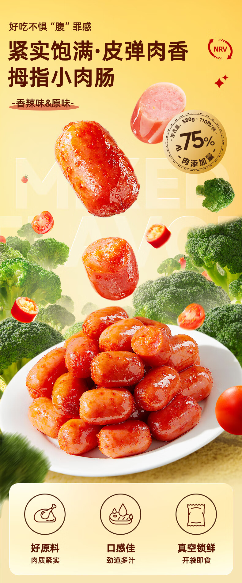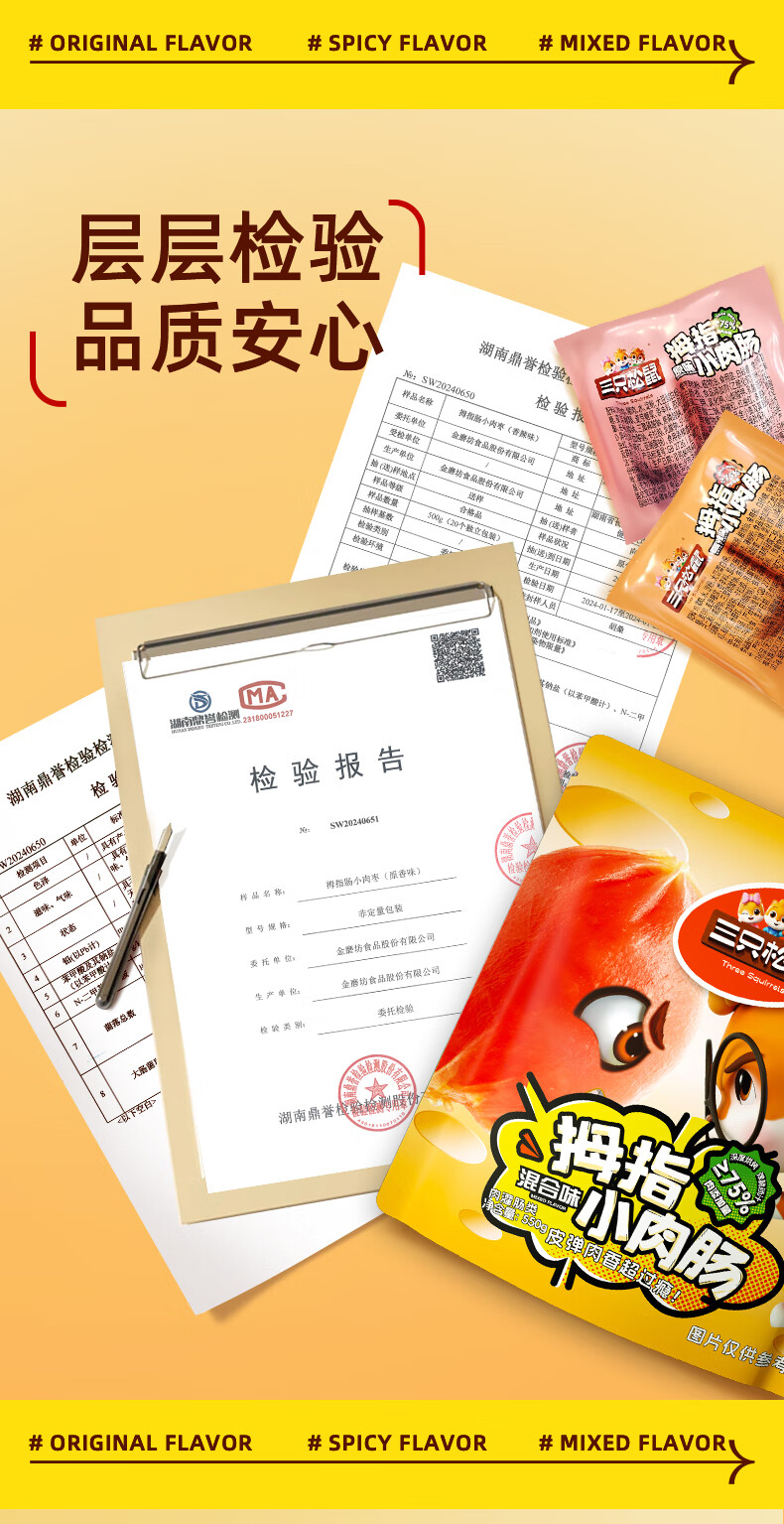 三只松鼠拇指小香肠110粒装混合口味香辣味+原味550g休闲零食即食火腿肠