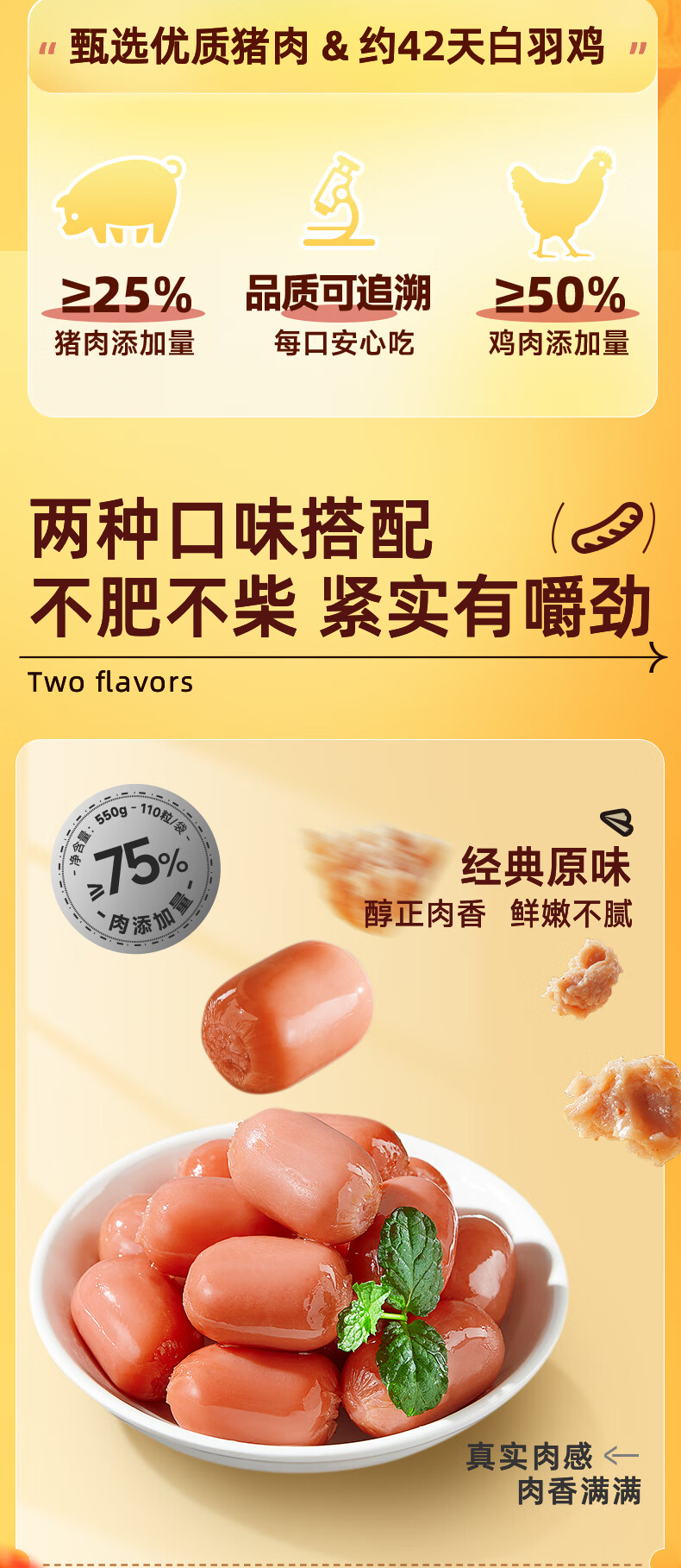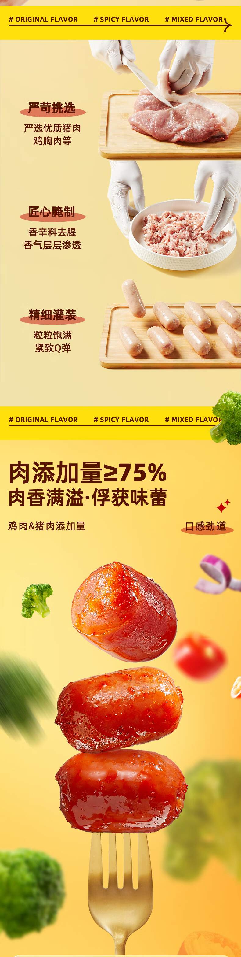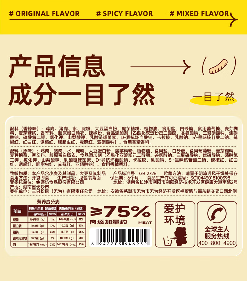 三只松鼠拇指小香肠110粒装混合口味香辣味+原味550g休闲零食即食火腿肠