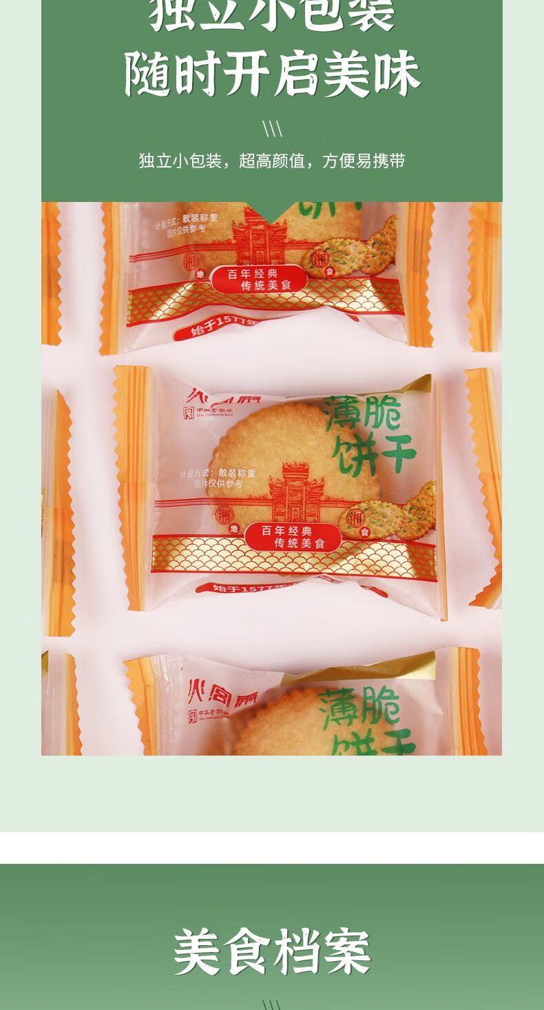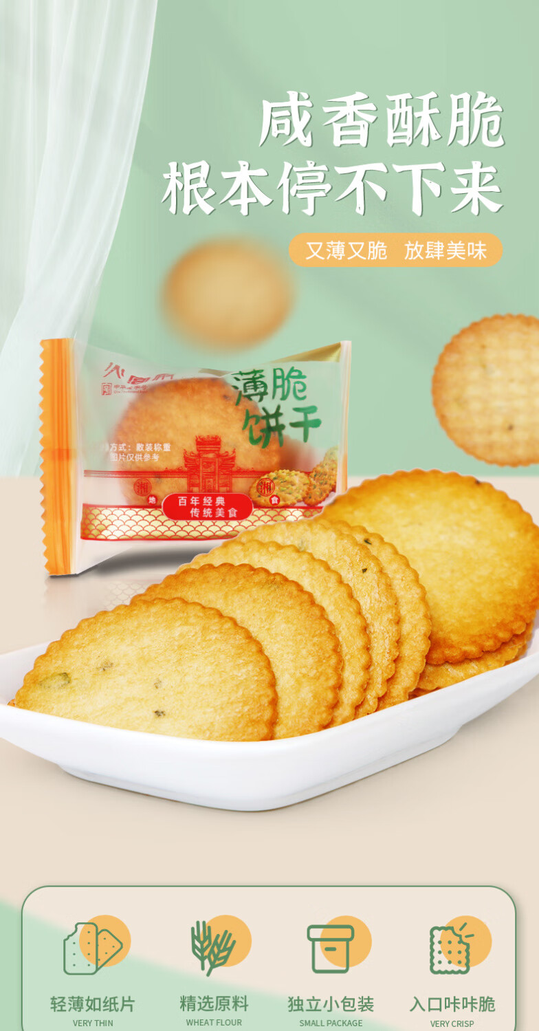 承吉祥【火宫殿】香葱薄脆饼干咸味散装早餐休闲办公学生零食代早餐 36包-实惠装【约500g】