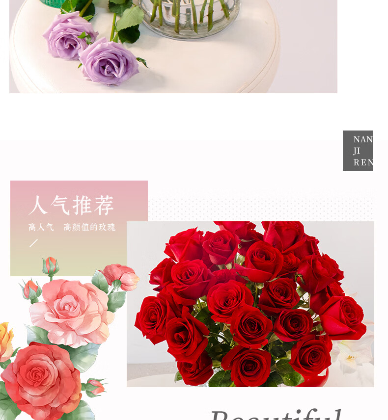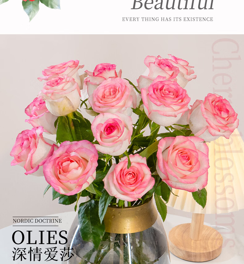 一网情深玫瑰鲜切花瓶插水养云南昆明基地直发鲜花 随机色玫瑰20枝