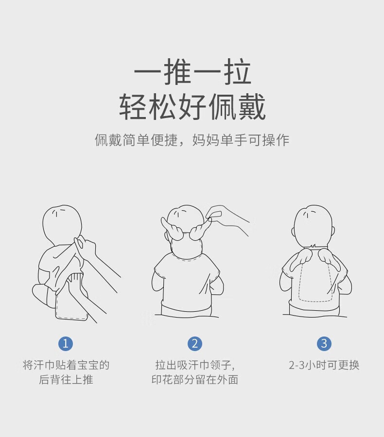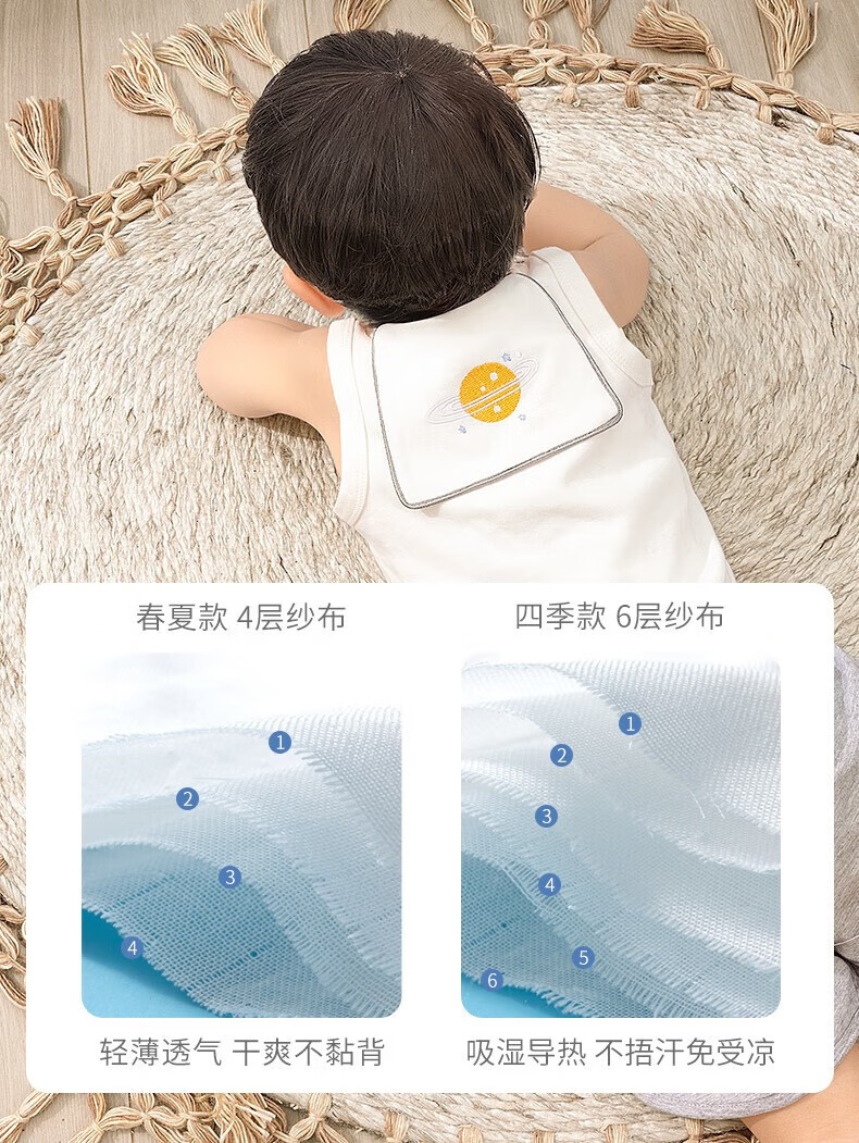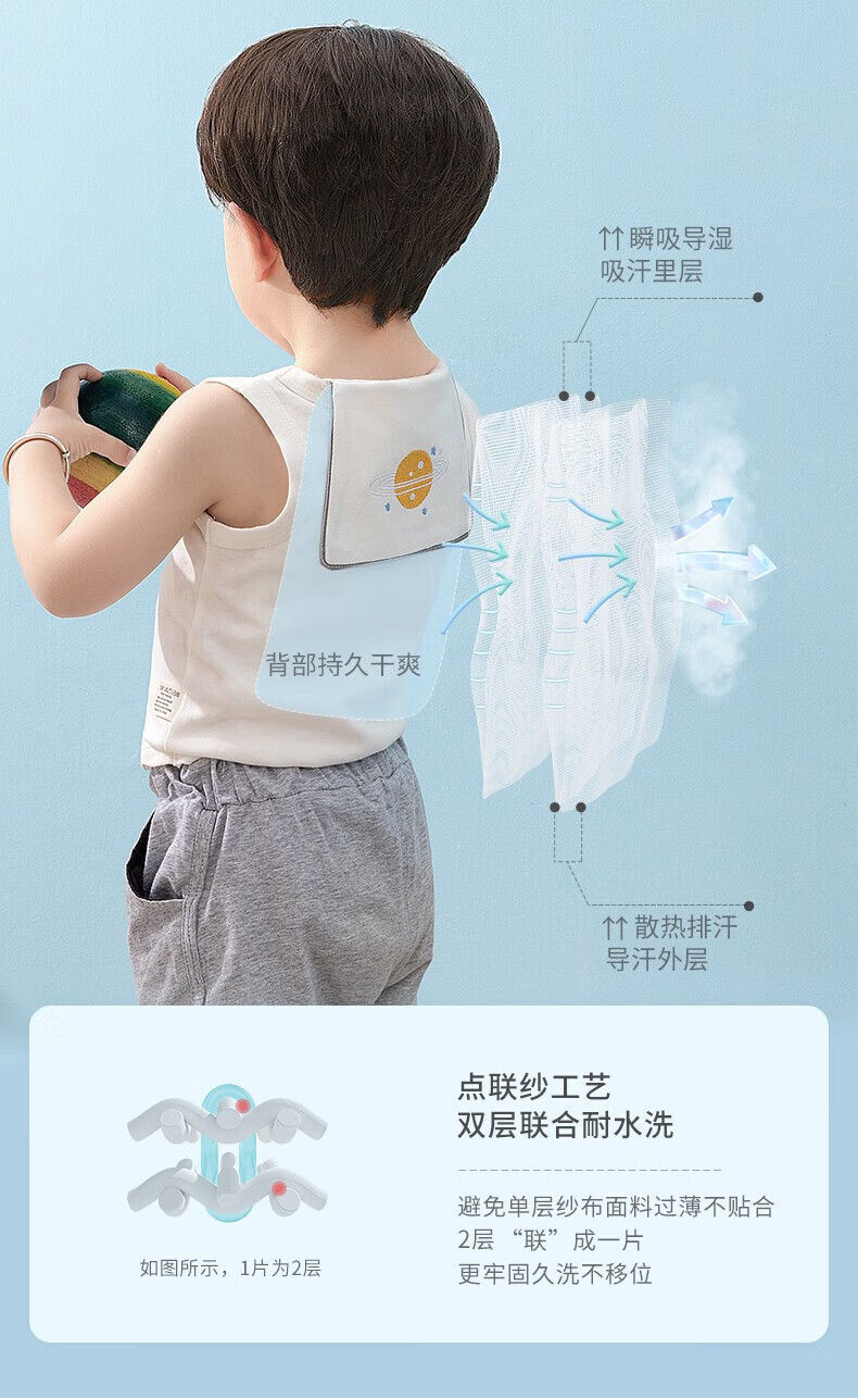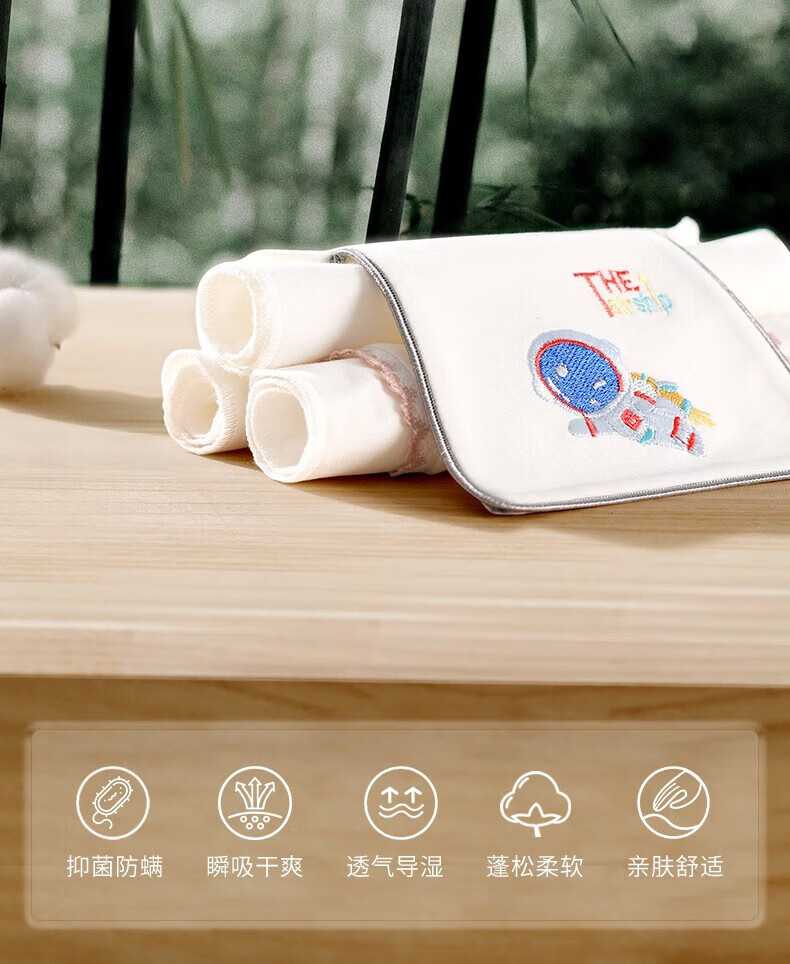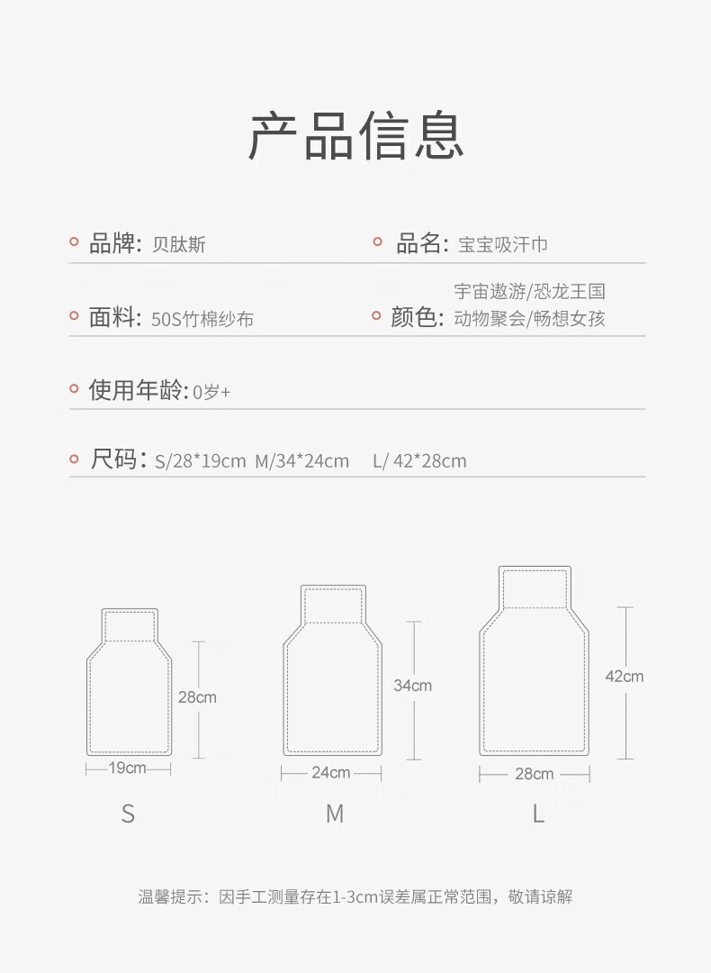 贝肽斯隔汗巾儿童吸汗巾纯棉垫背巾新生儿男女宝宝大号3条装 3条装 森林萌友 4层 【瞬吸干爽 10A抗菌】 S码【28*19cm】建议0-1岁