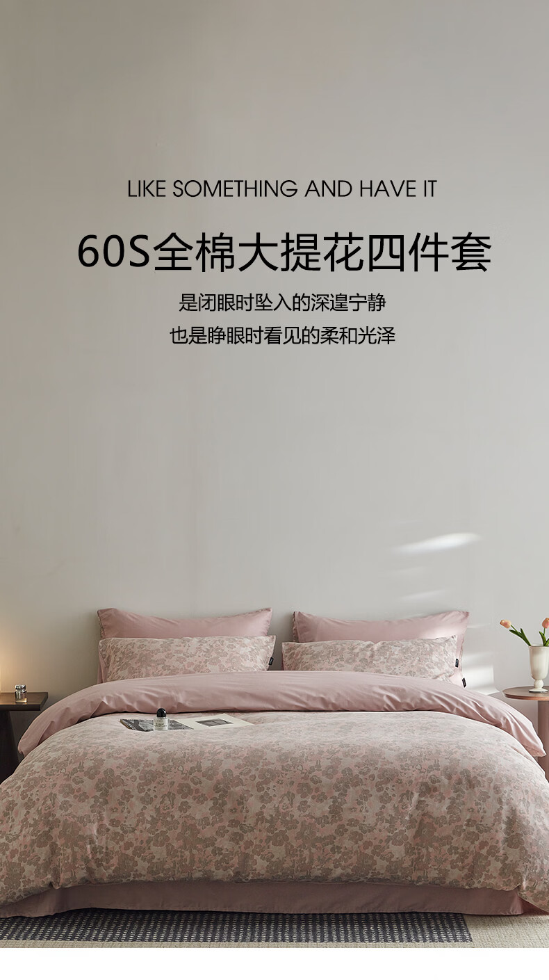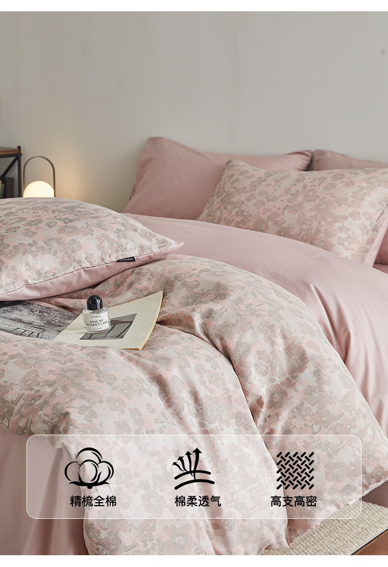 无印良品60支高端全棉四件套床上用品100%纯棉家用四季可裸睡床单被套床笠 暗香 【高支全棉 亲肤舒适】 1.2m 床单款 三件套 被套150*200cm