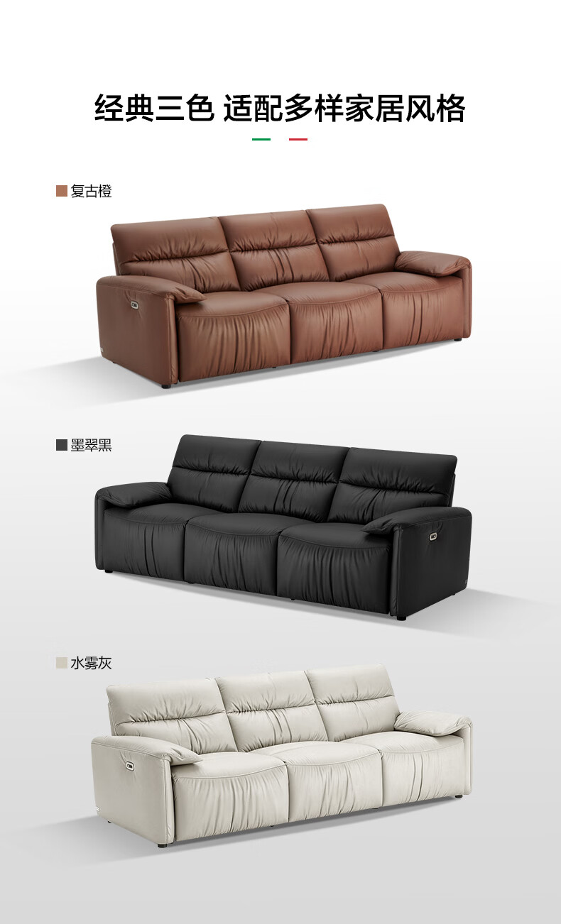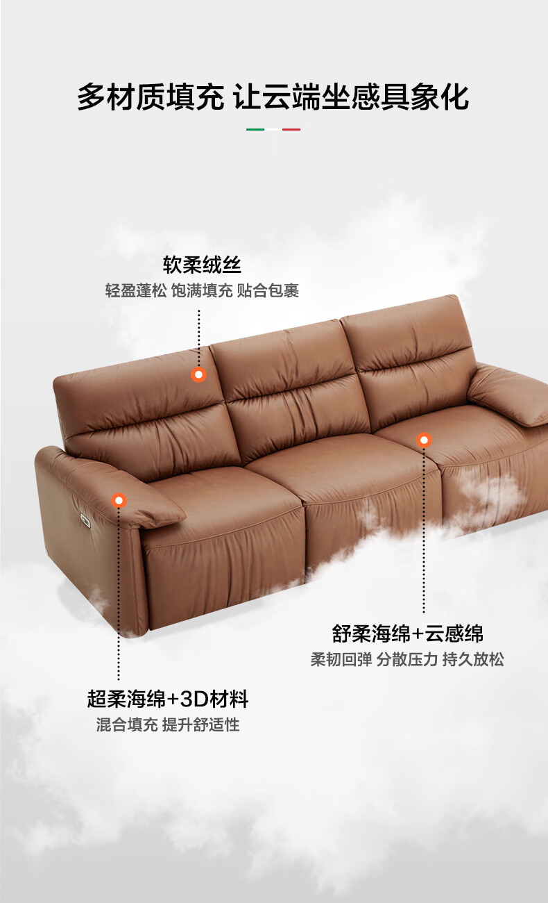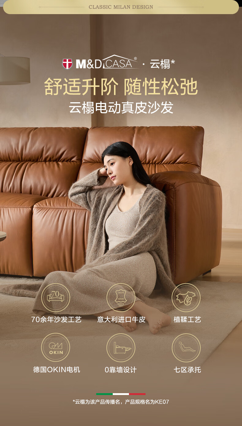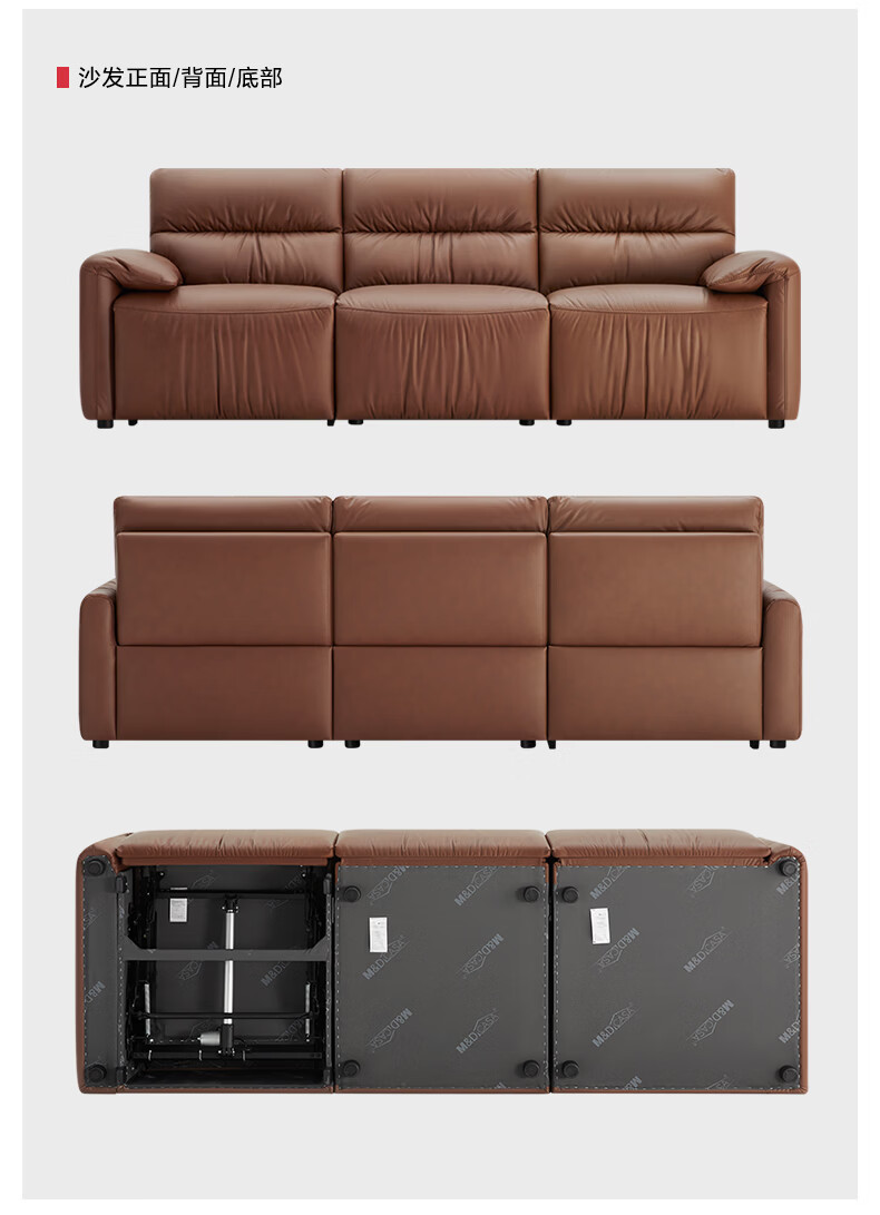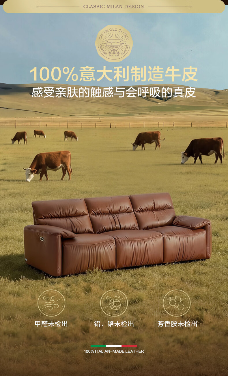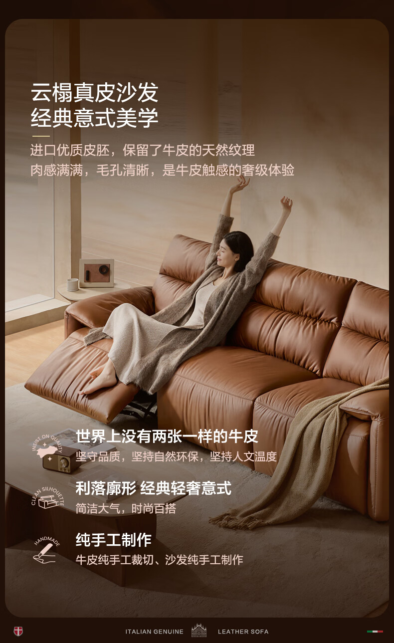 M&D CASA云榻意大利植鞣半青皮沙发真皮电动功能沙发客厅2026新款大象耳朵 墨翠黑|半青皮|2.62米-无电动