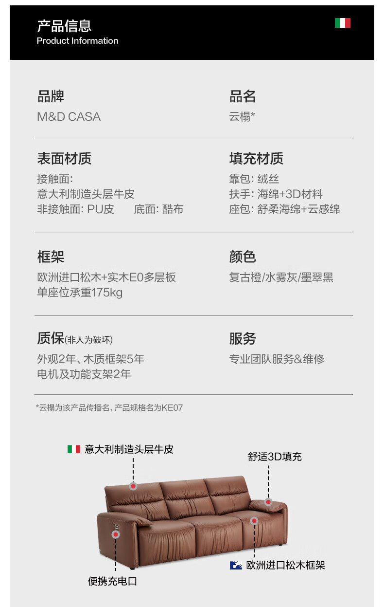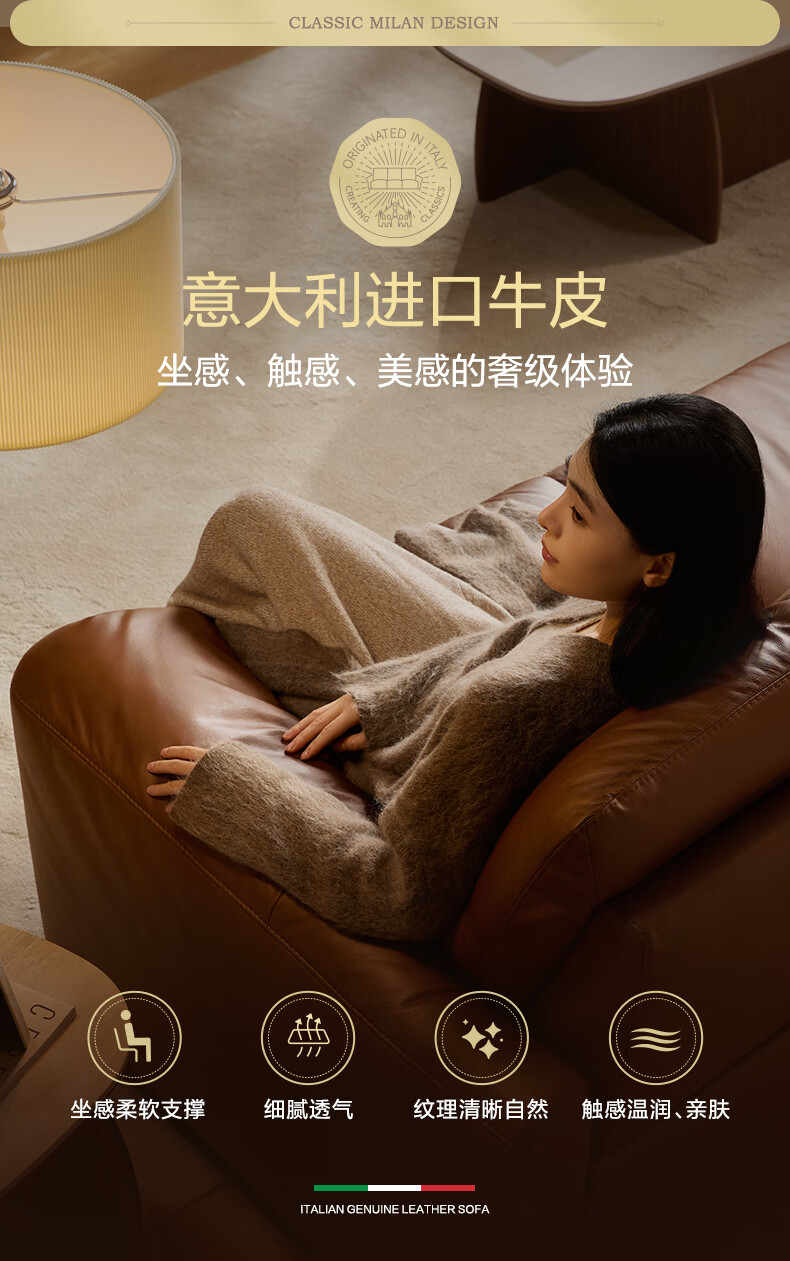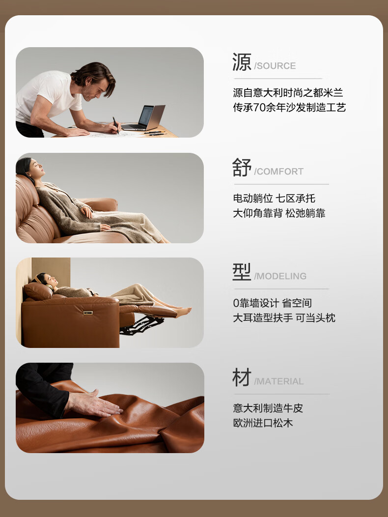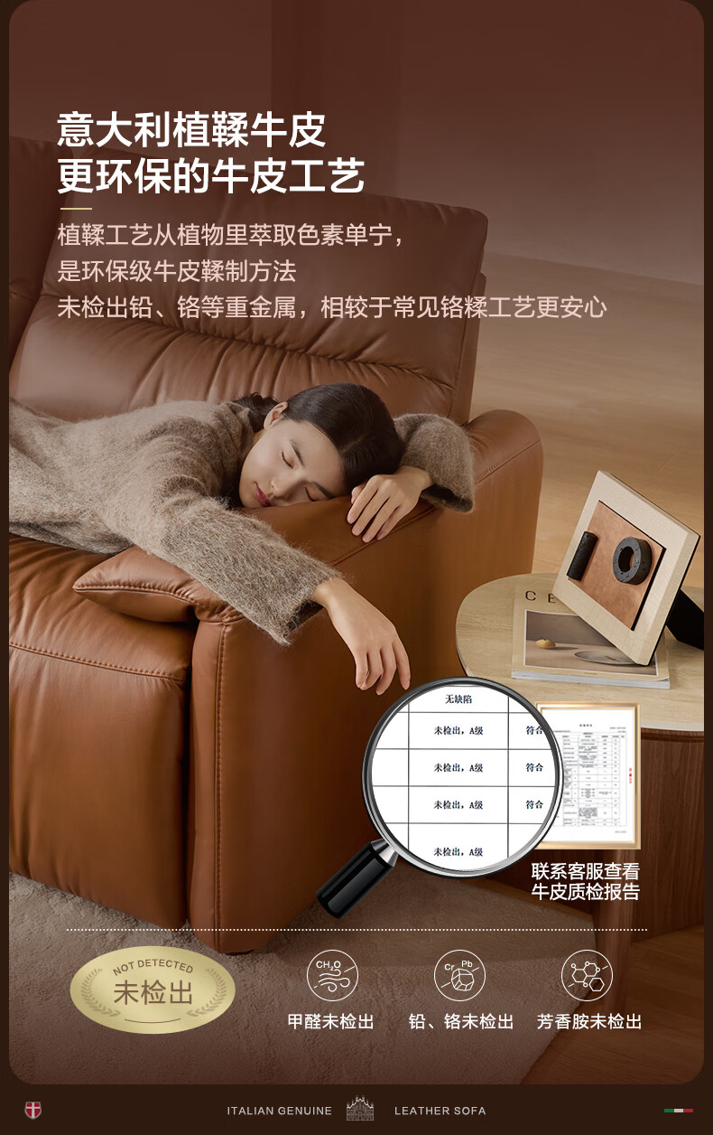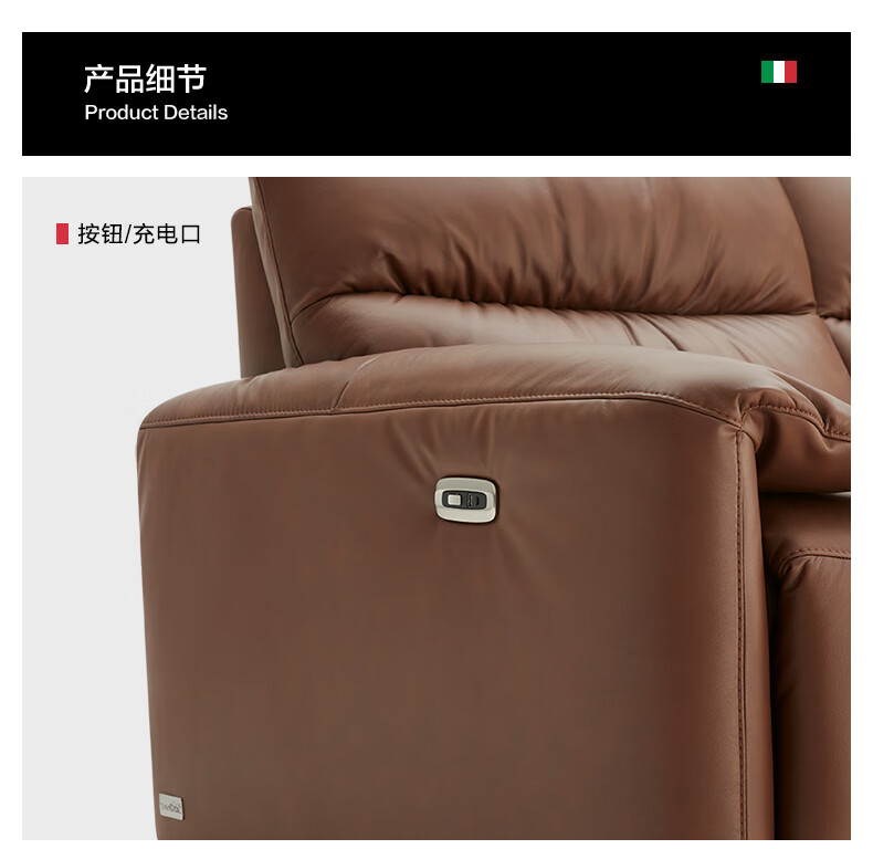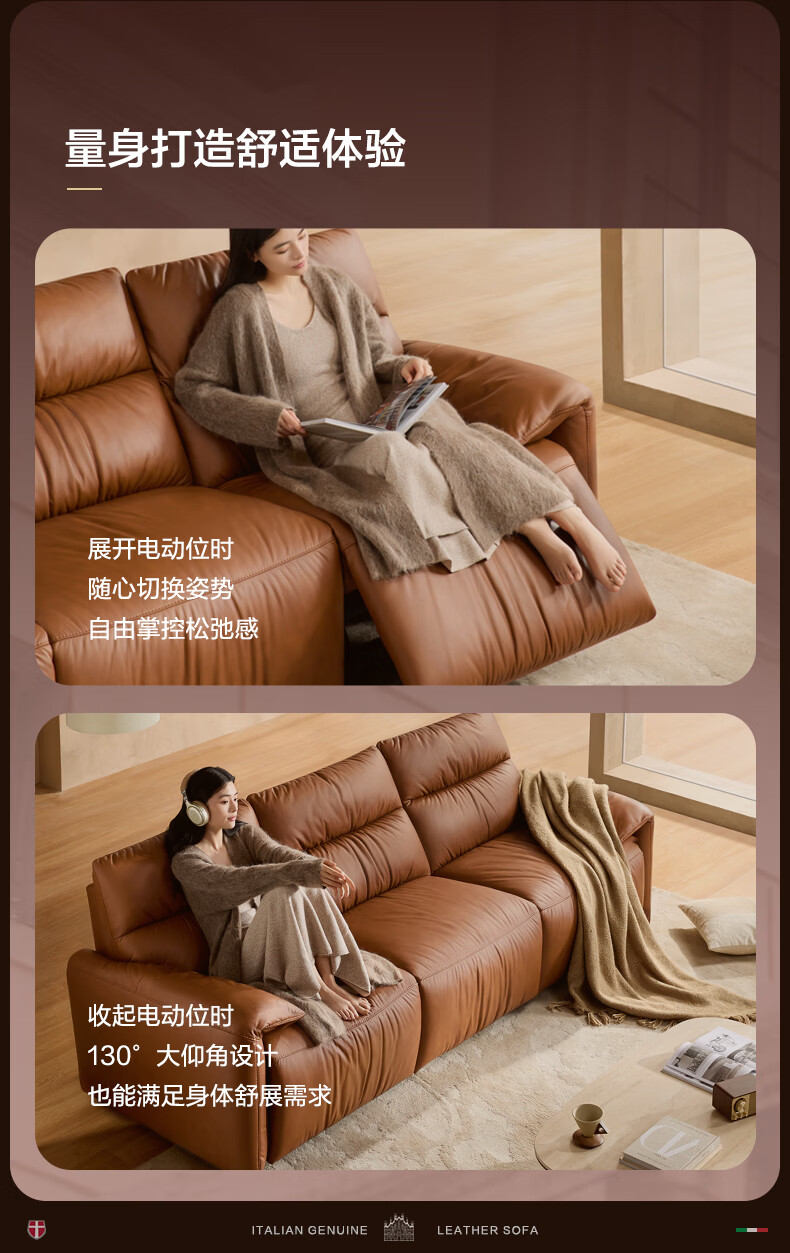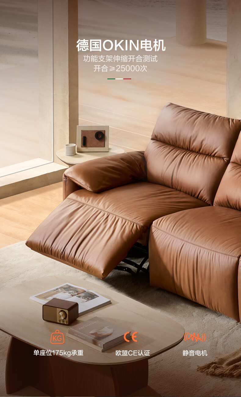M&D CASA云榻意大利植鞣半青皮沙发真皮电动功能沙发客厅2026新款大象耳朵 墨翠黑|半青皮|2.62米-无电动