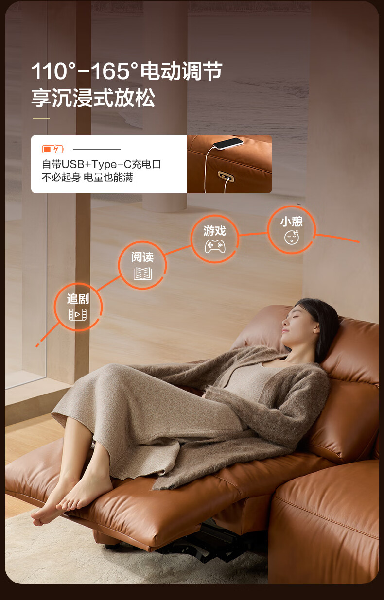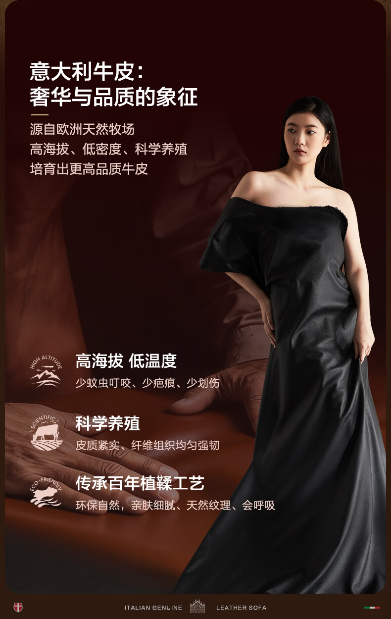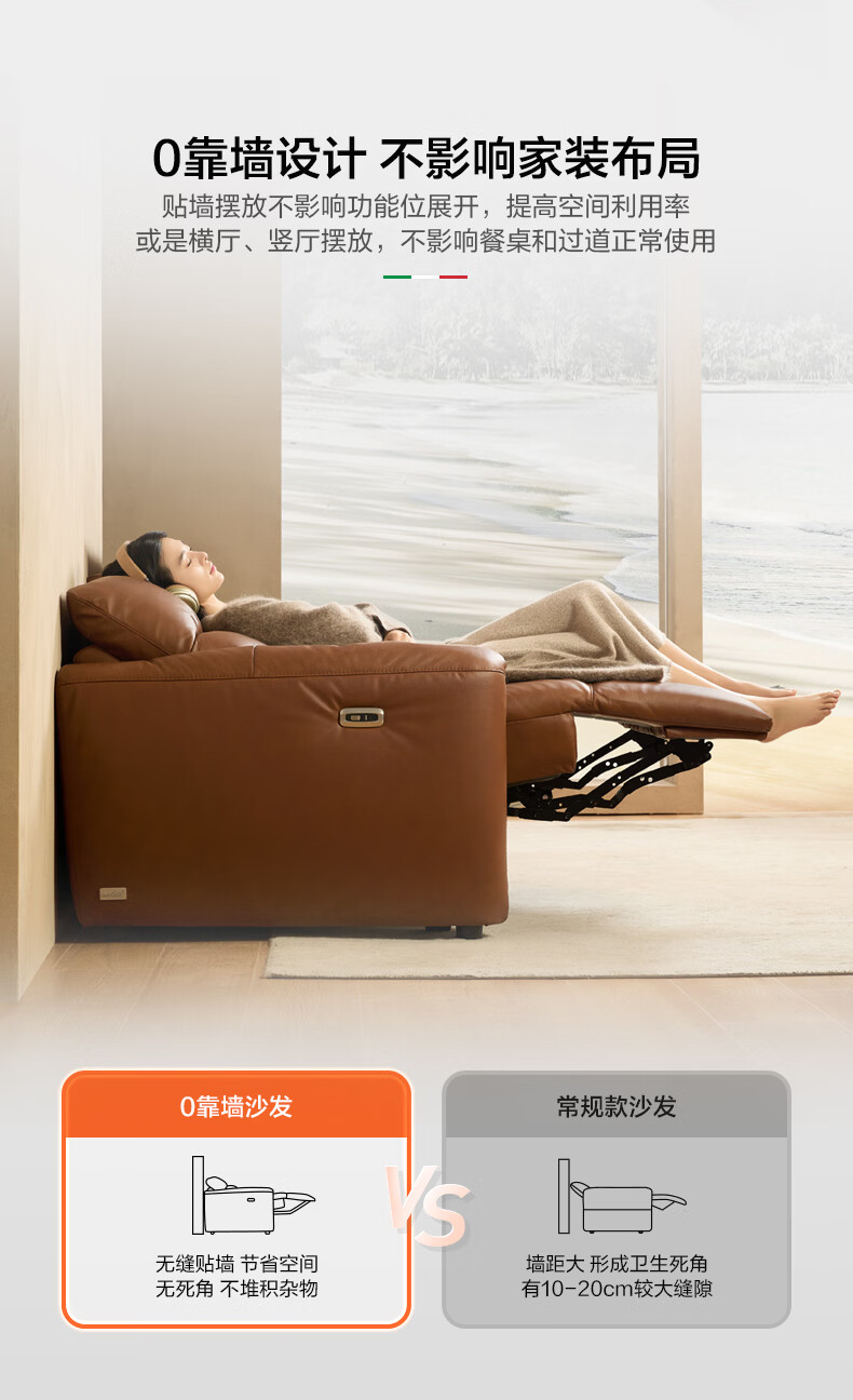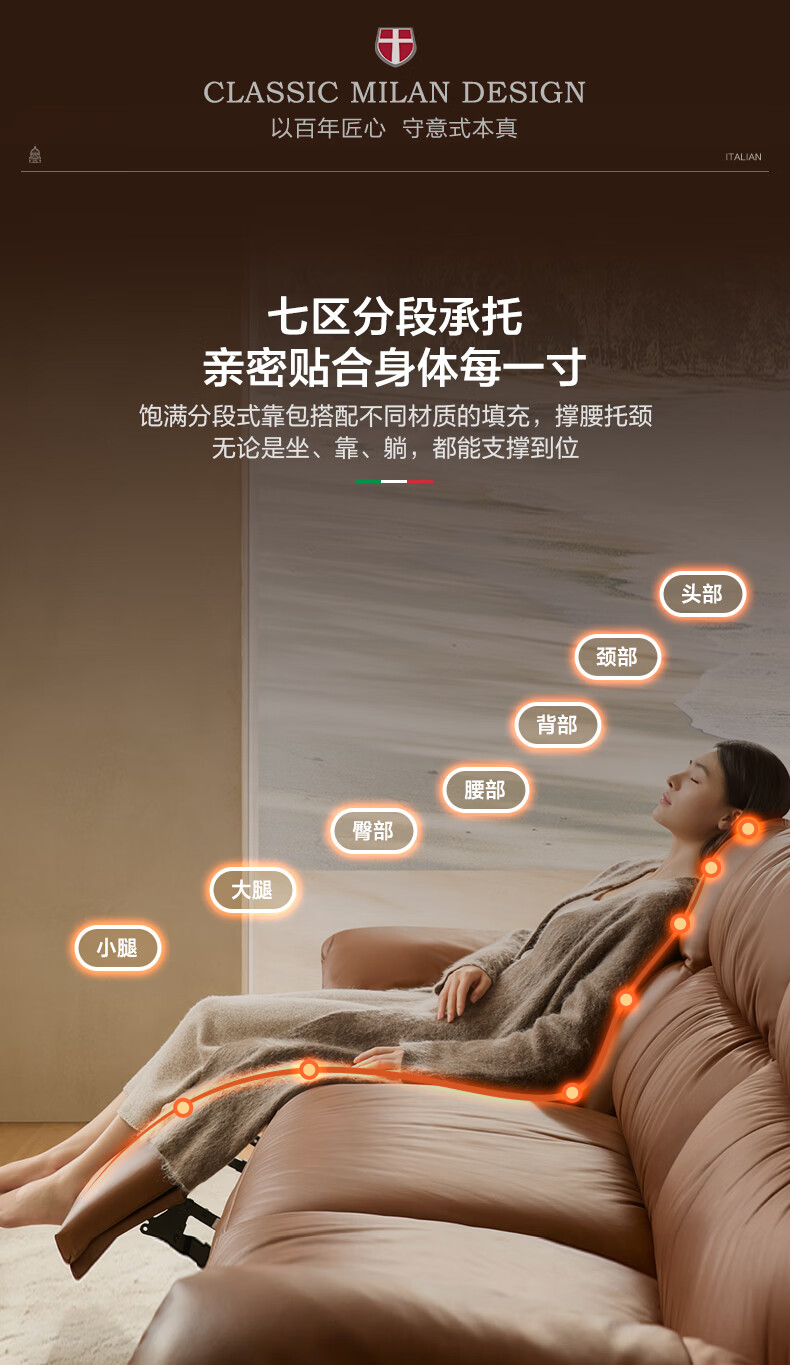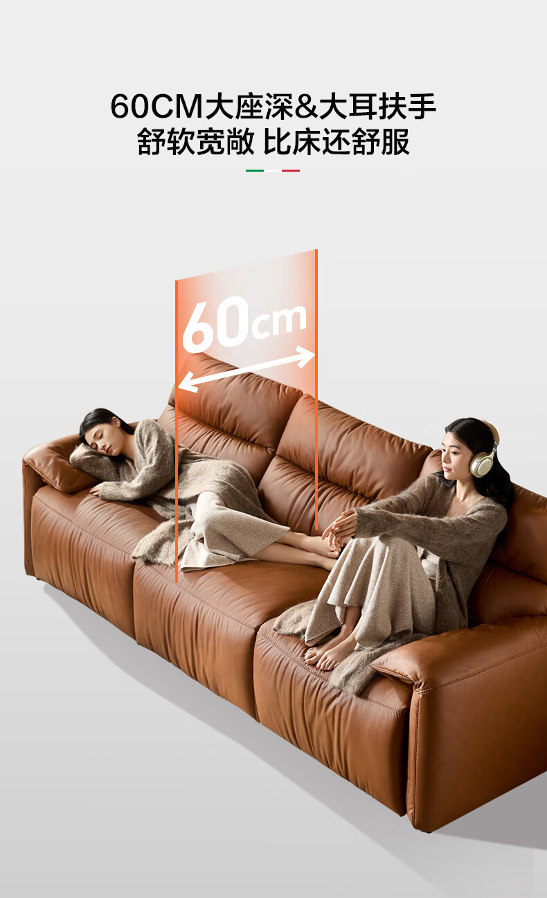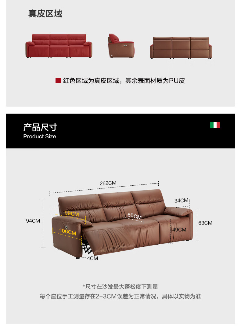 M&D CASA云榻意大利植鞣半青皮沙发真皮电动功能沙发客厅2026新款大象耳朵 墨翠黑|半青皮|2.62米-无电动