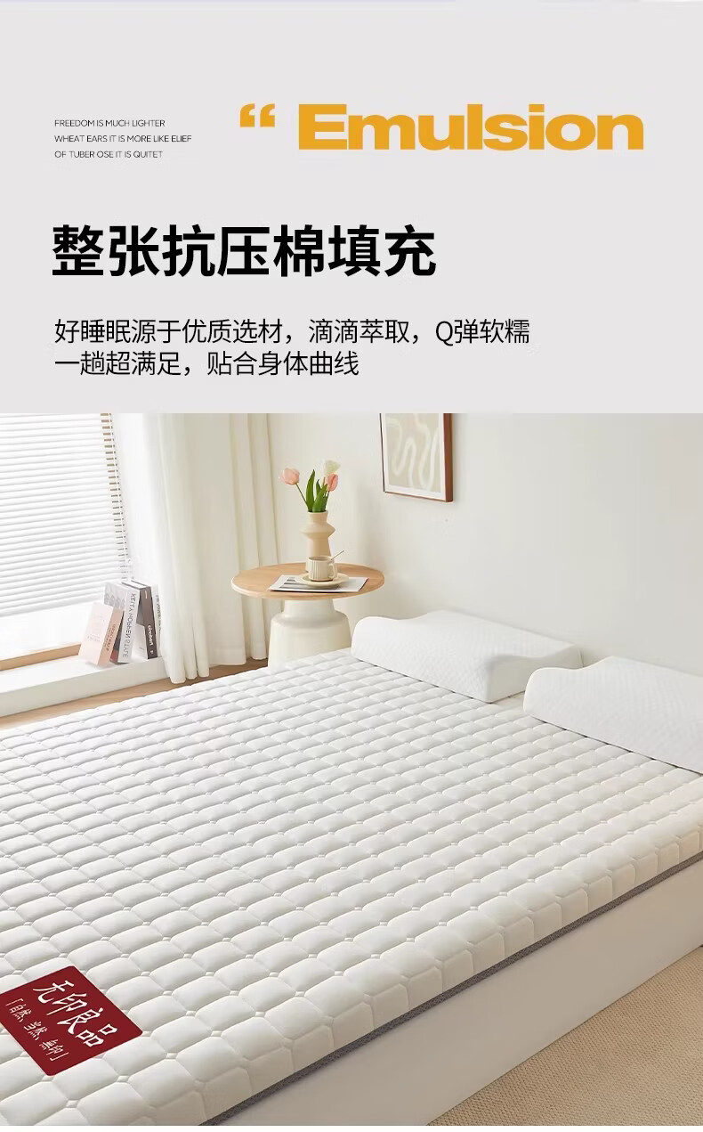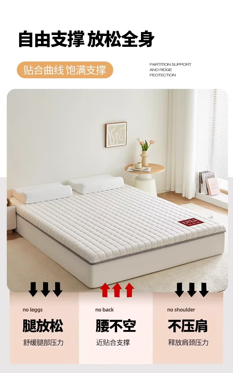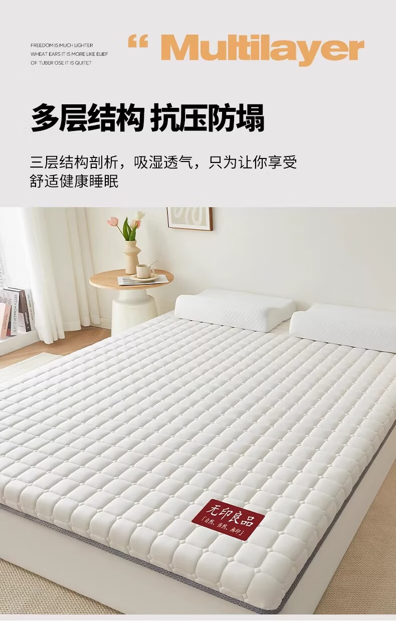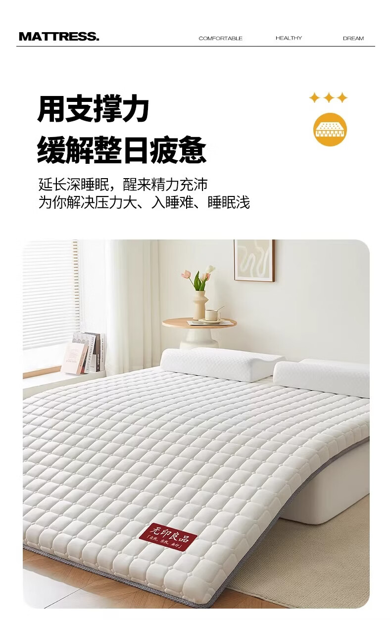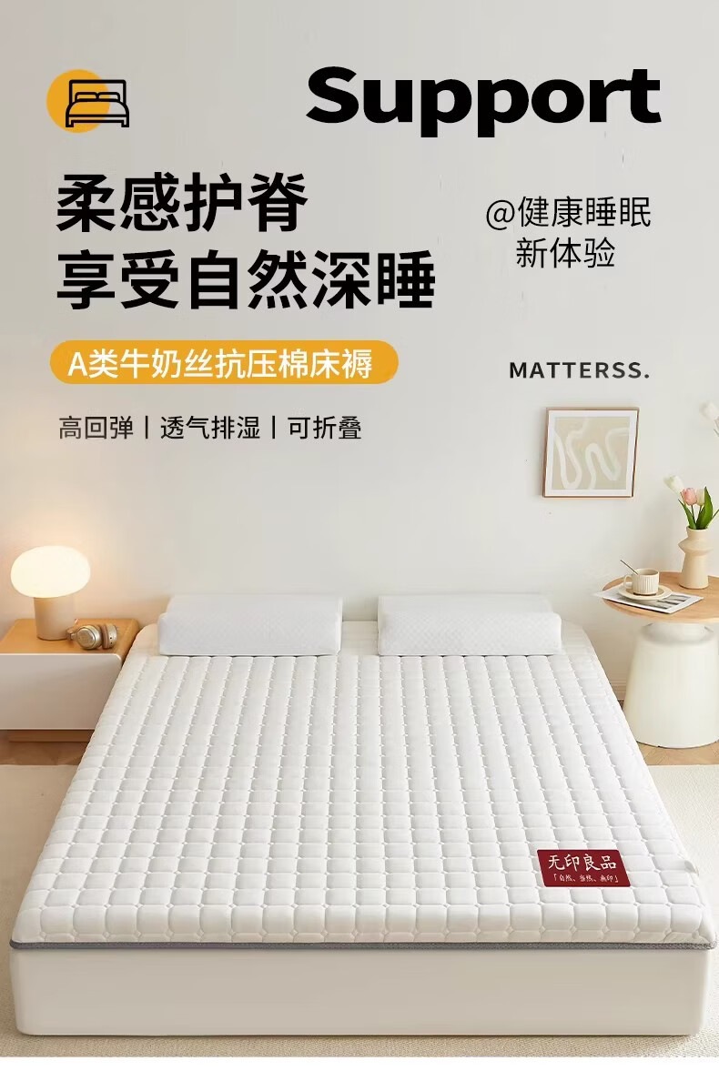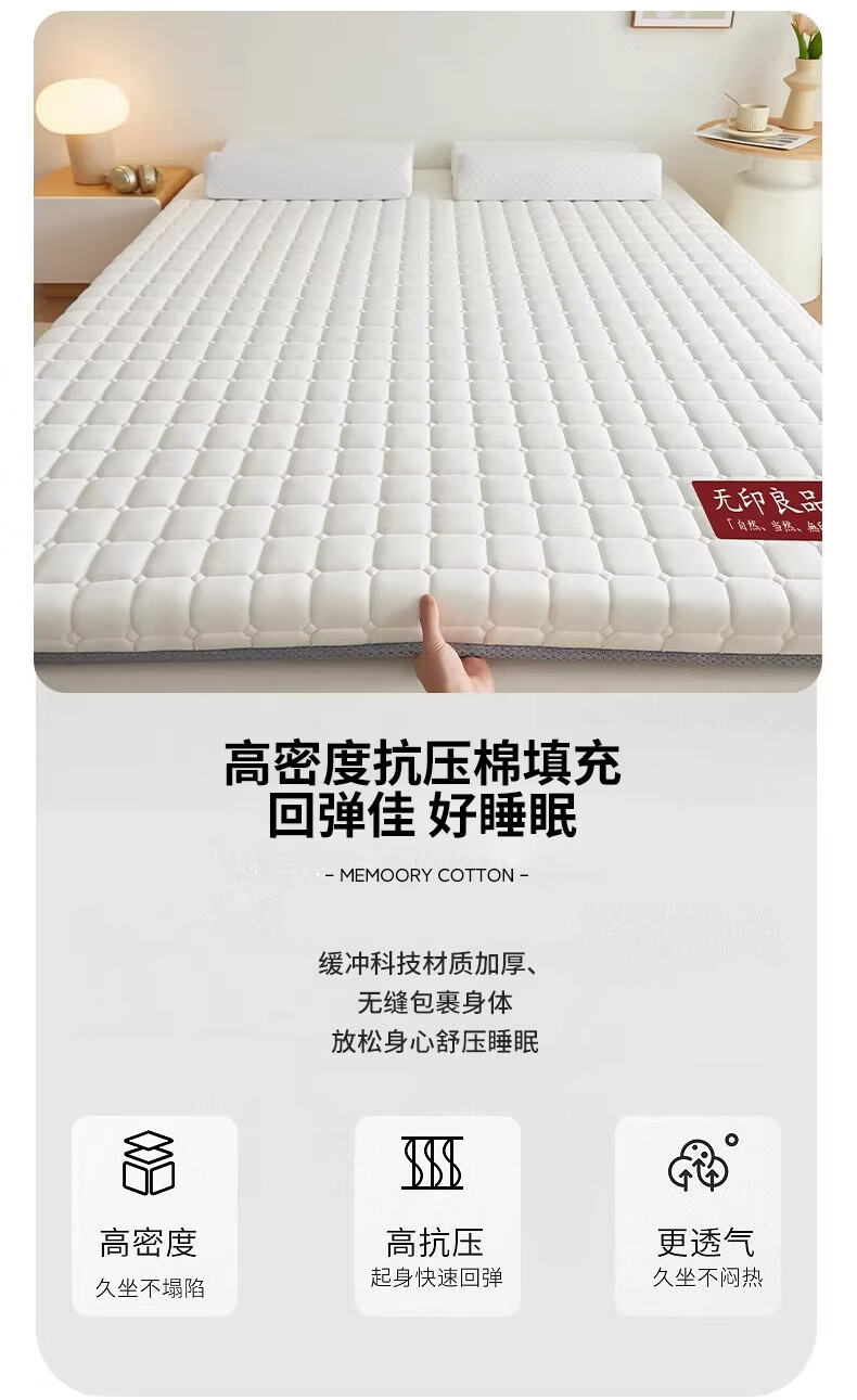 无印良品A类记忆棉床褥1.2x2米单人床垫遮盖物卧室家用榻榻米加厚被褥铺底 牛奶丝-白色【A类裸睡级 厚约5cm】 80cm*190cm-宿舍床