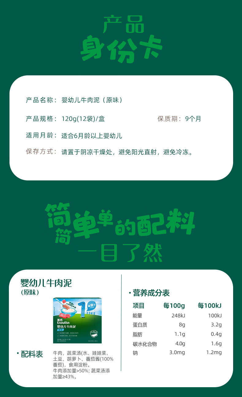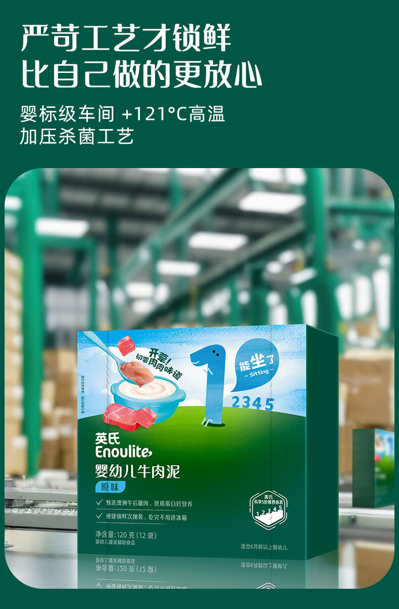 英氏婴幼儿牛肉泥120g婴儿辅食肉泥宝宝肉类辅食蔬菜泥即食便携速食