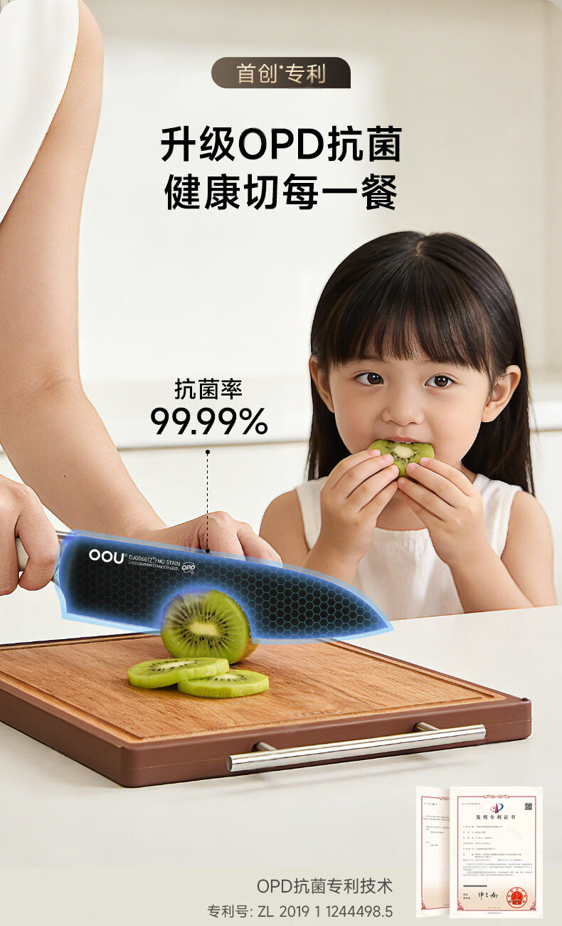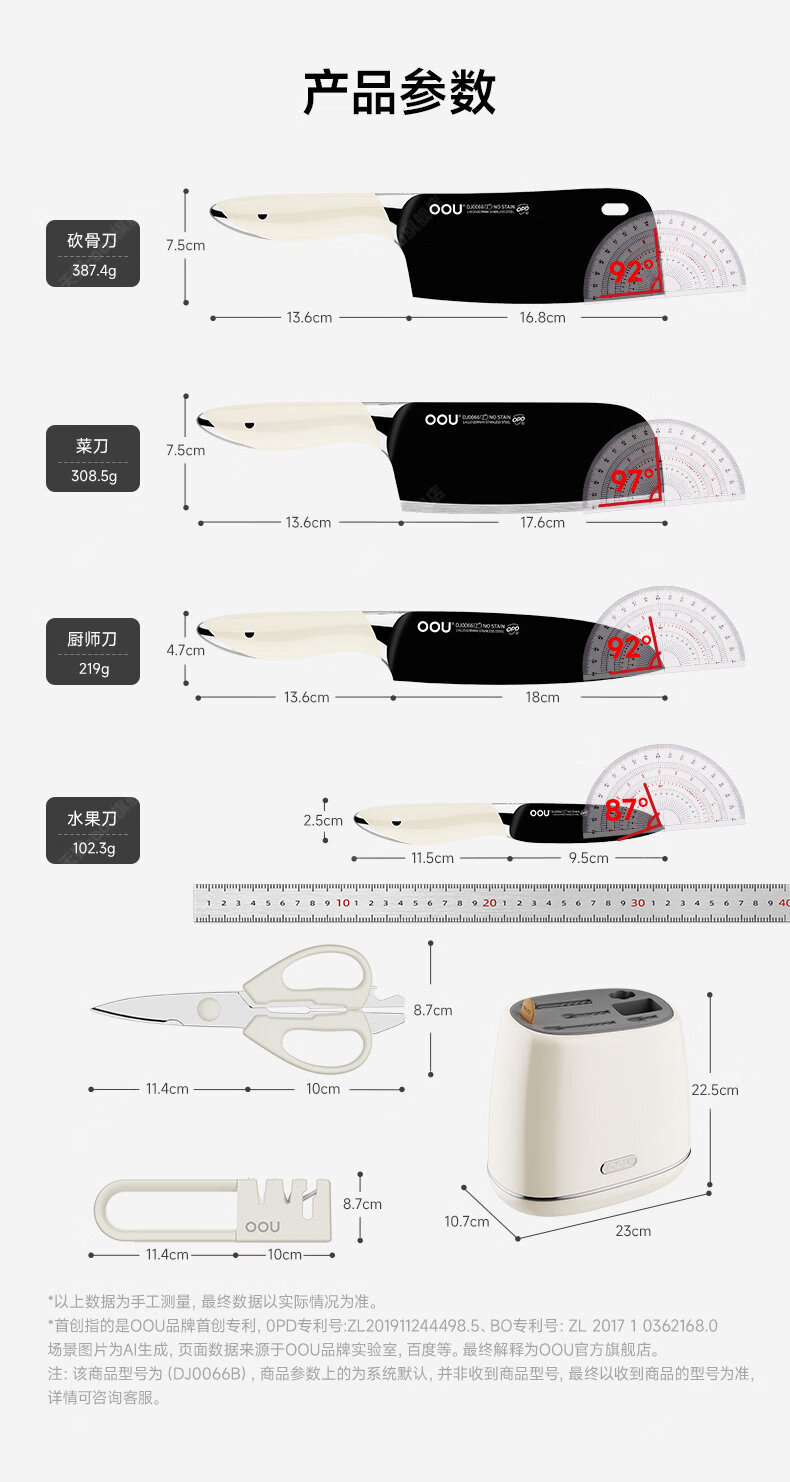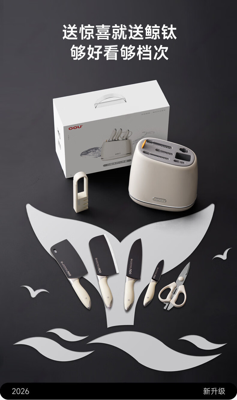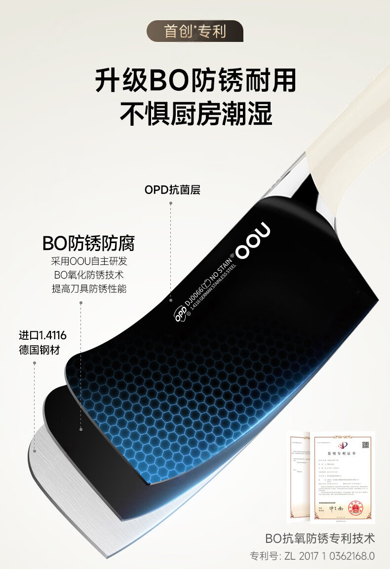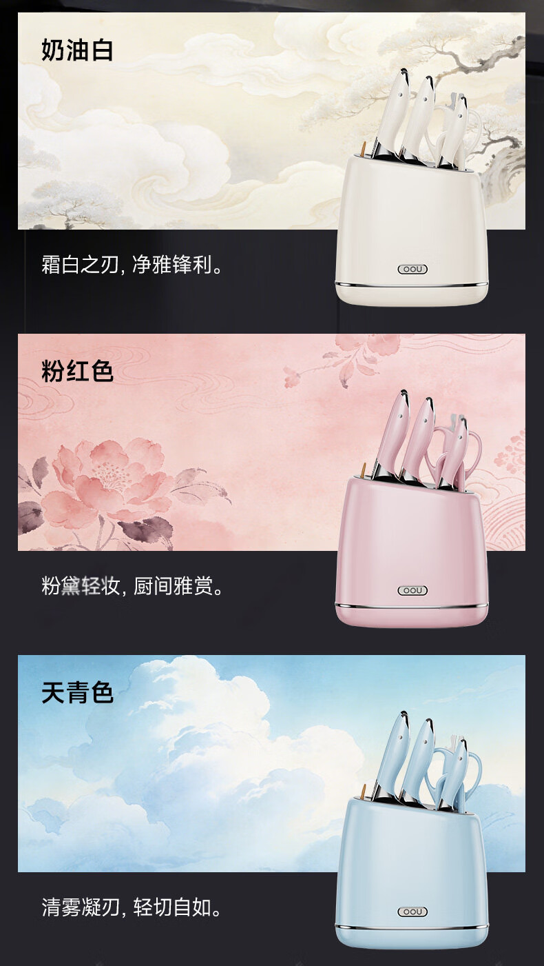 OOU刀具套装全套厨房切菜刀进口钢材专利抗菌技术黑鲸系列抗菌七件套白色