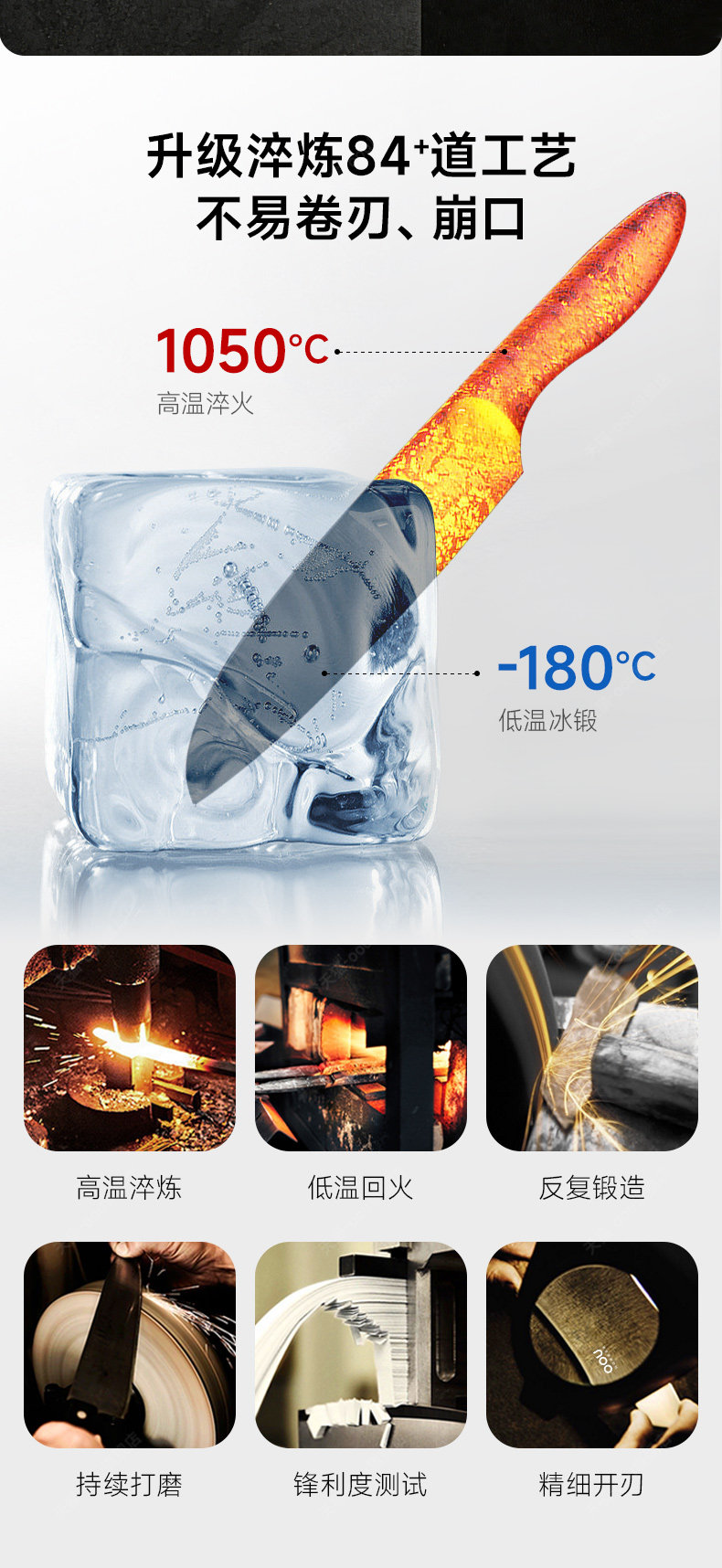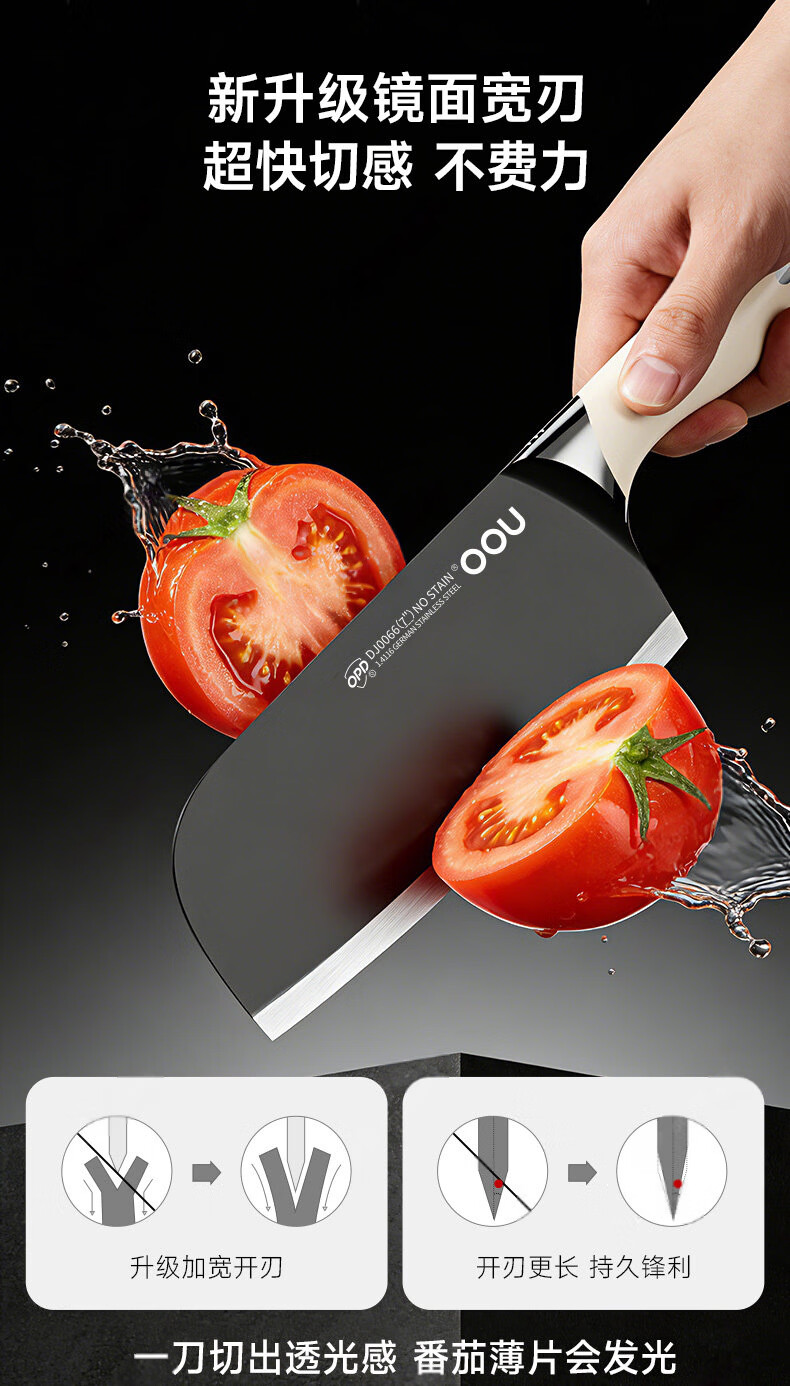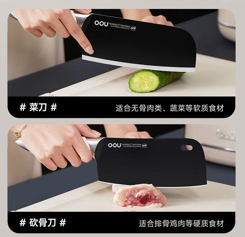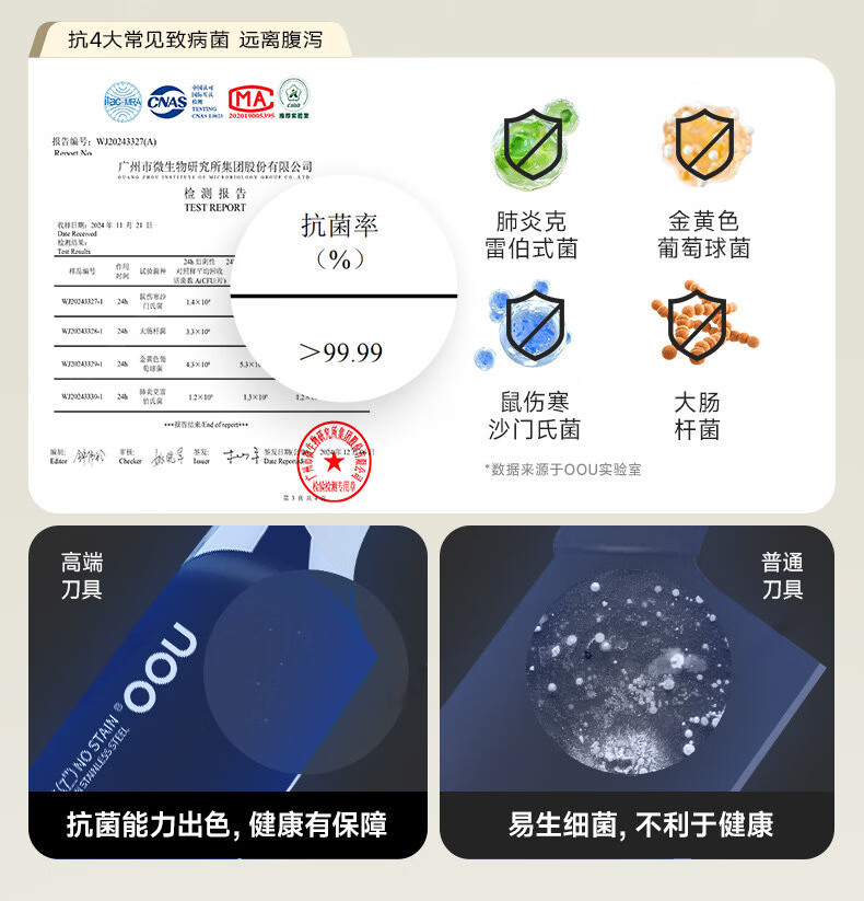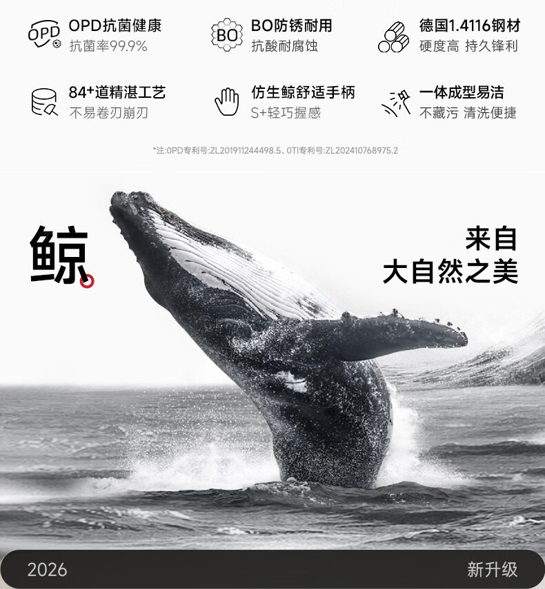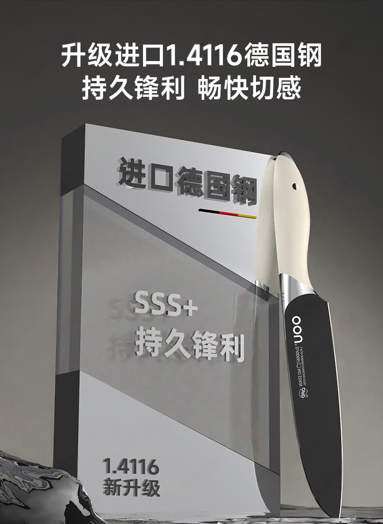 OOU刀具套装全套厨房切菜刀进口钢材专利抗菌技术黑鲸系列抗菌七件套白色