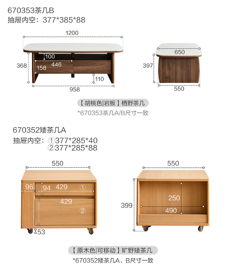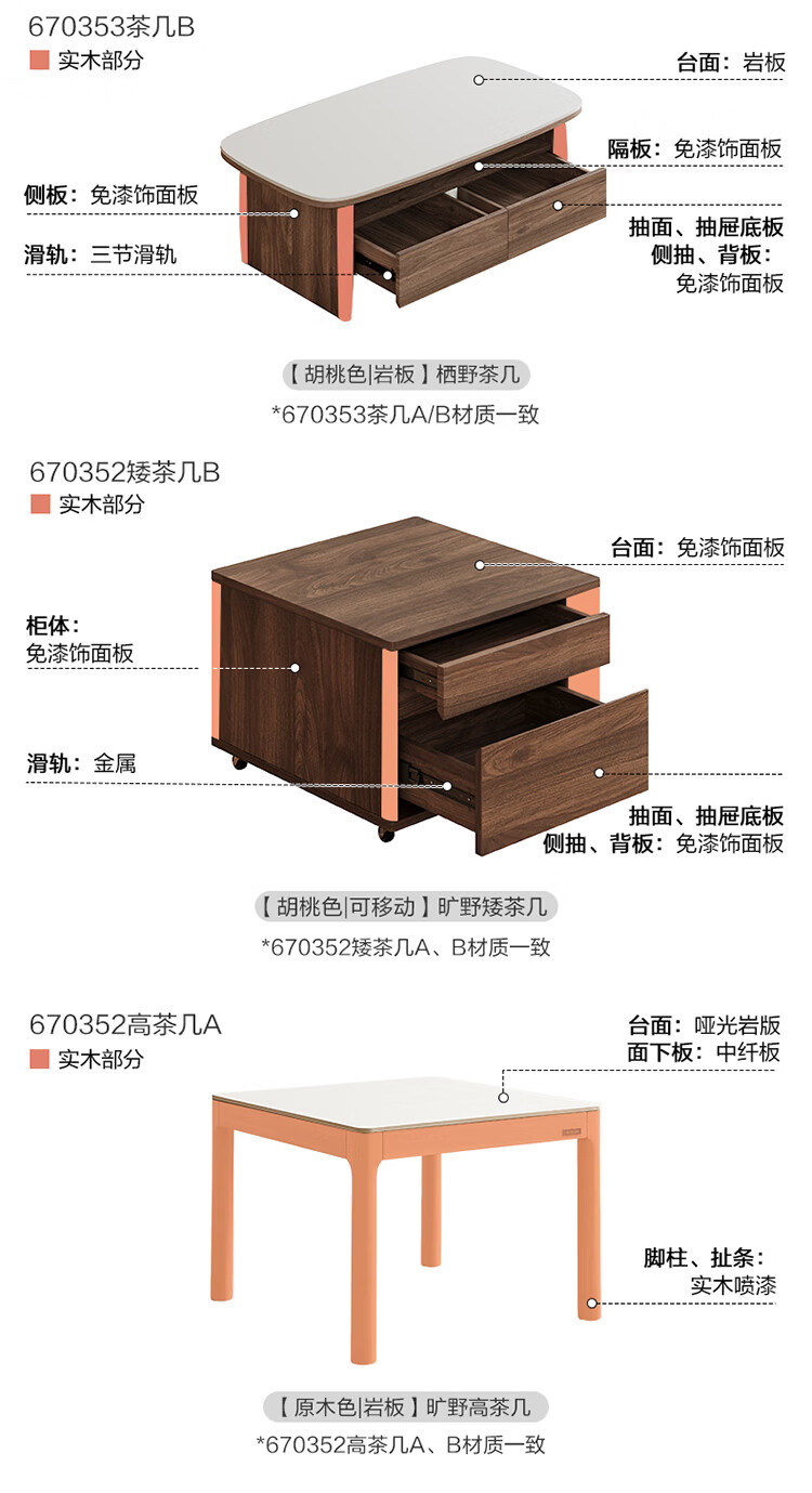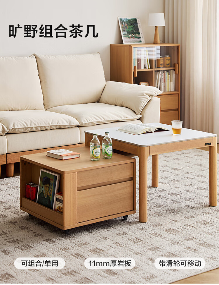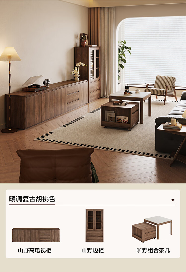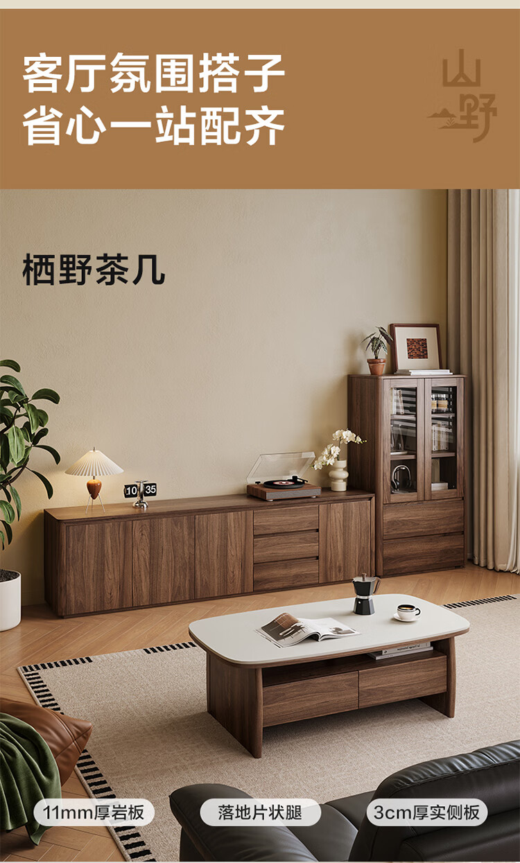 全友家居原木风茶几电视柜组合家具茶几客厅轻奢高级感2026新款矮桌 【胡桃色 | 岩板】栖野茶几-预约