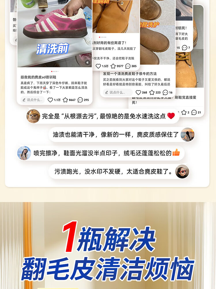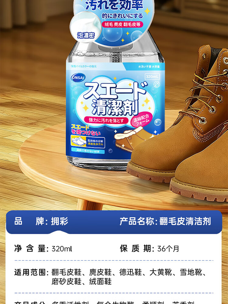 拥彩翻毛皮鞋清洁剂320ml 免水清洗雪地靴磨砂皮麂皮绒面皮干洗护理剂