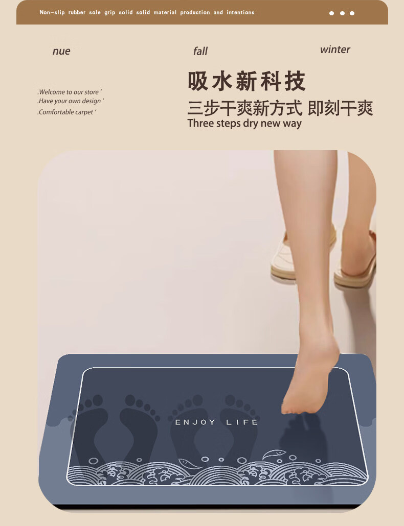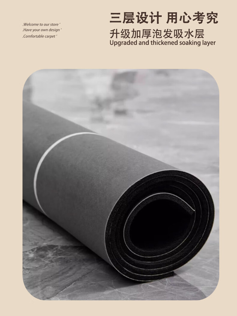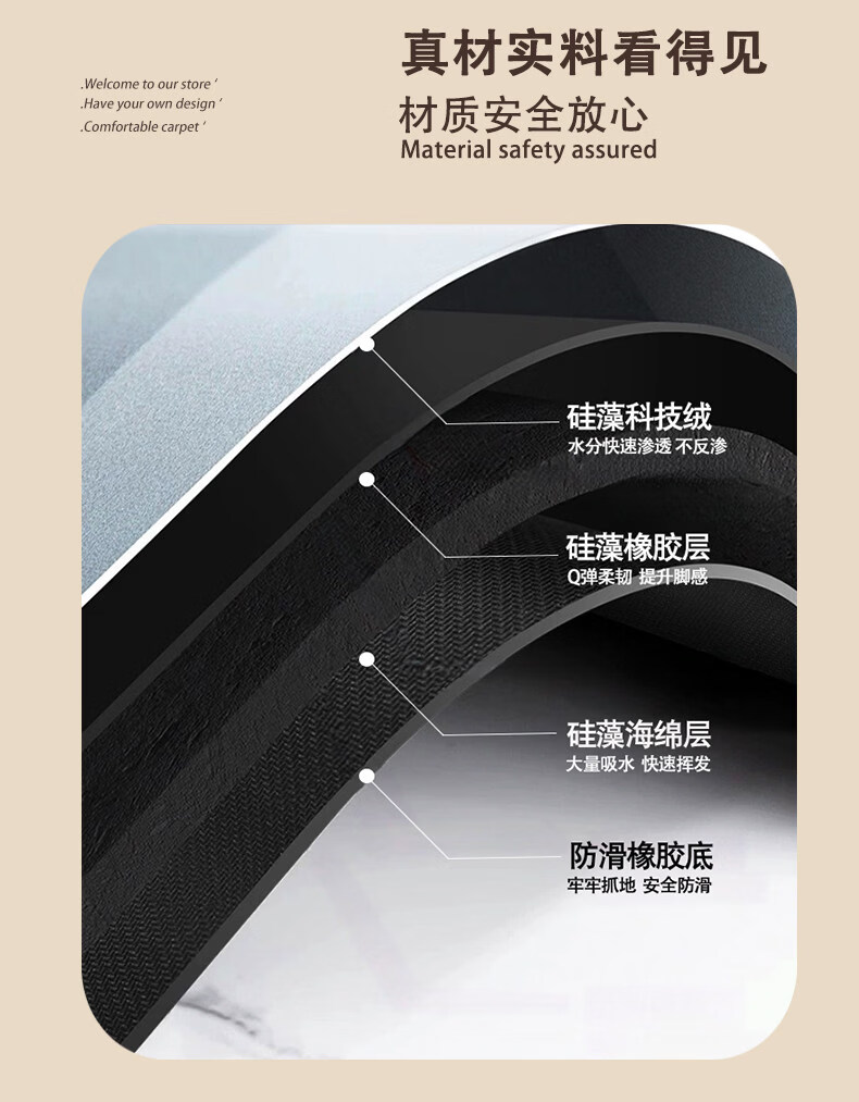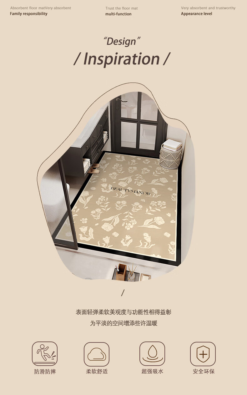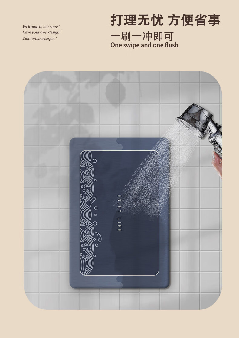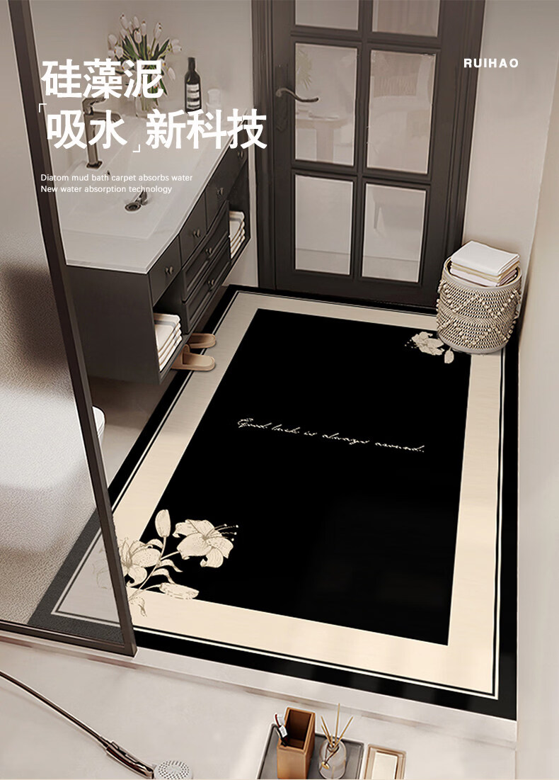DONOYA 多罗亚整铺硅藻泥卫生间地垫浴室门口吸水地垫卫生间门口吸水防滑垫脚垫 琪娜简约【升级加厚硅藻泥4mm丨吸水免擦洗】 50cm*80cm 【超吸水丨现货速发】