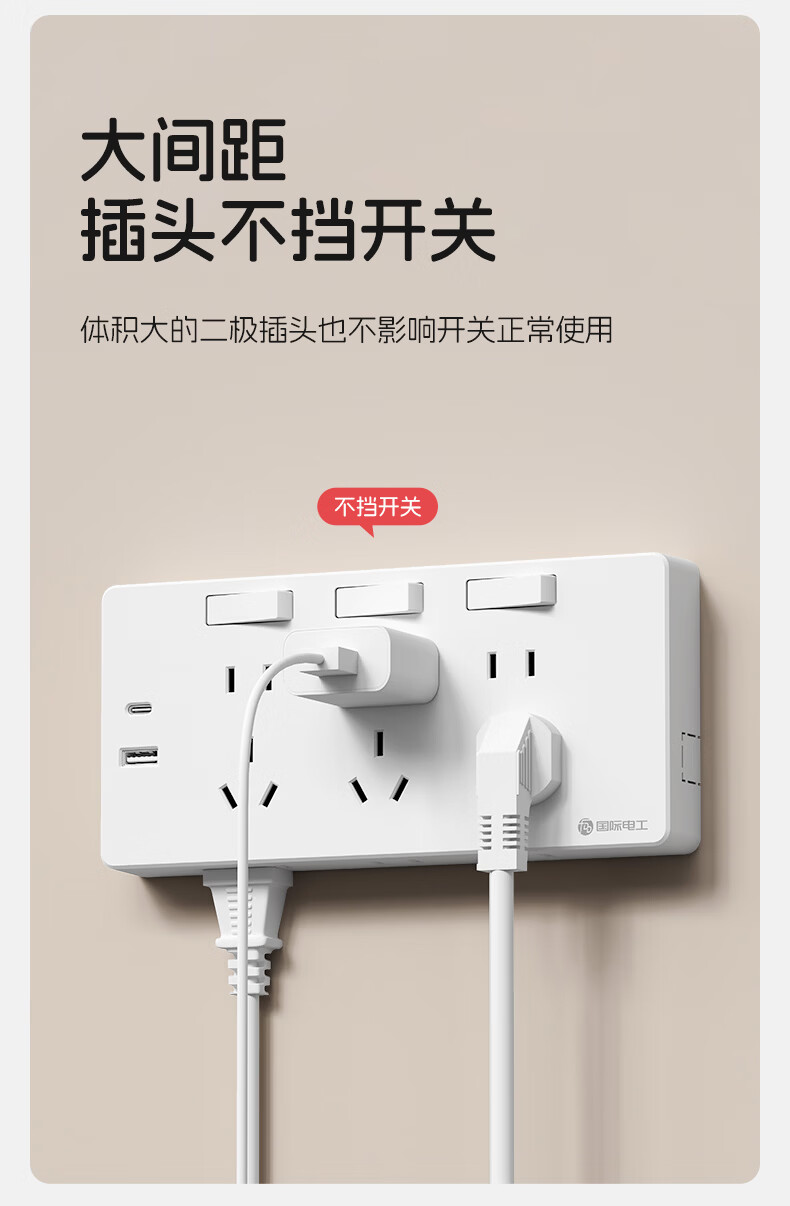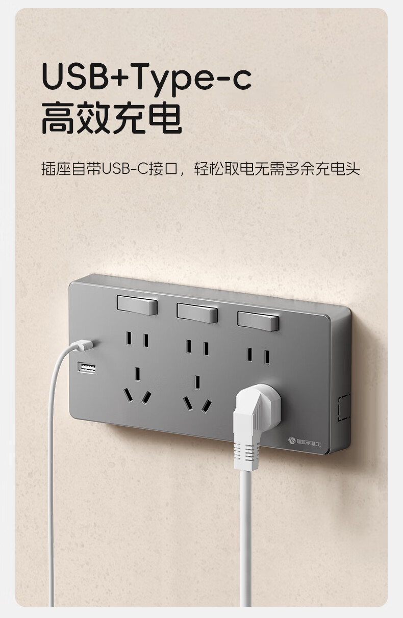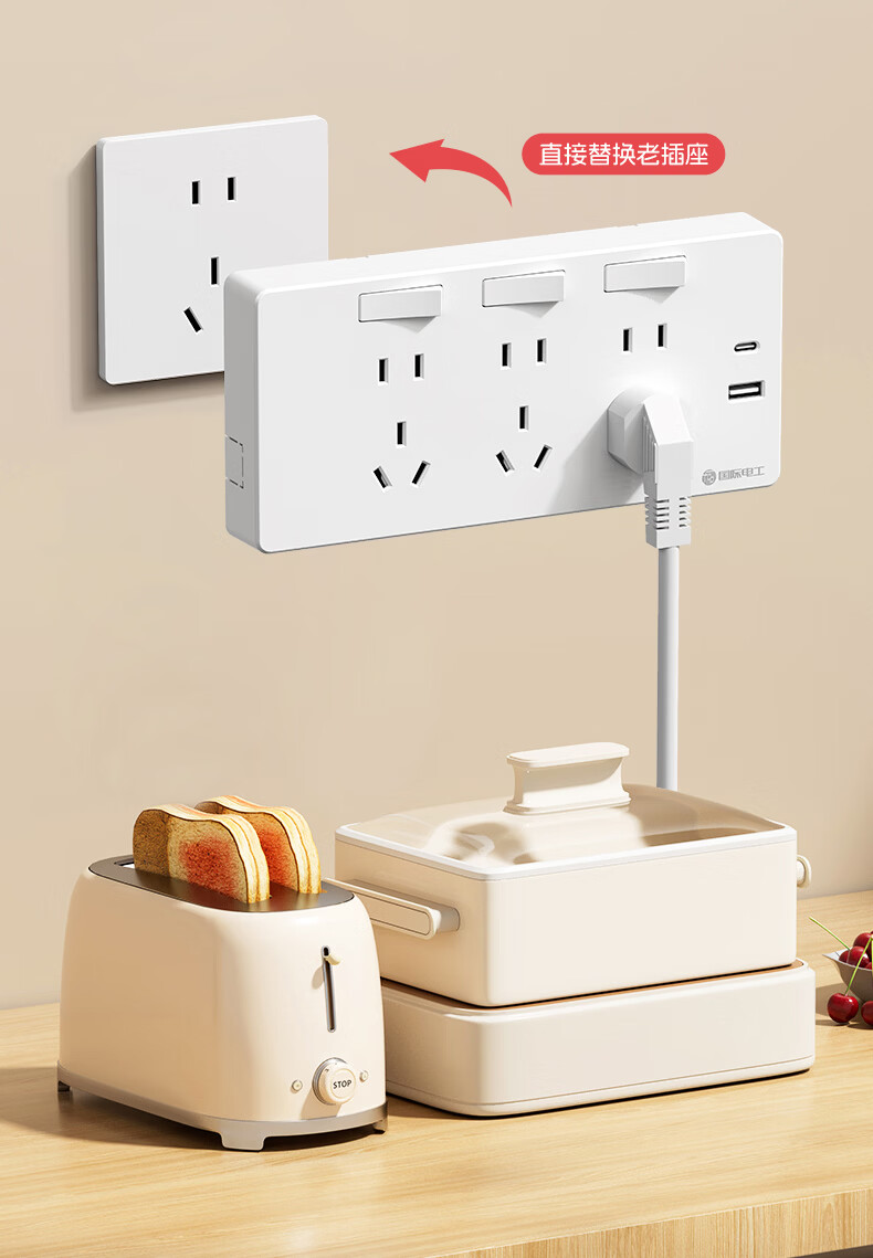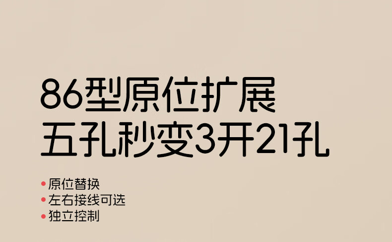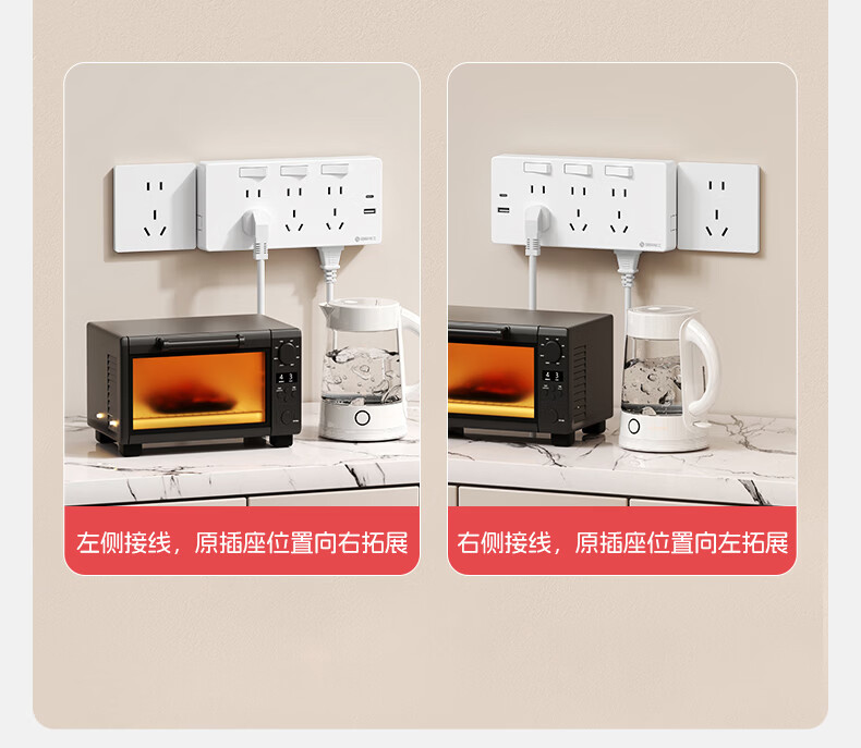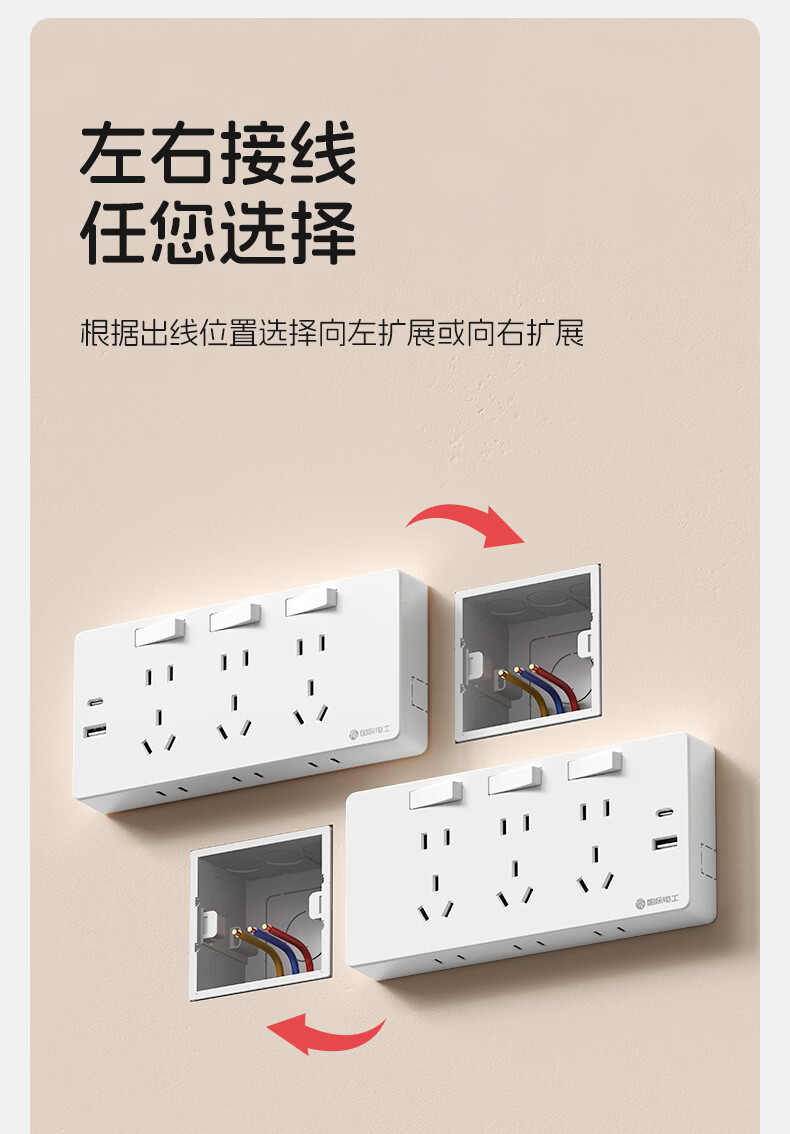 国际电工86型原位扩展插座家用厨房分控带开关排插多功能USB快充拓展插排 白色带USB-三开21孔-向左扩展(2.1A)