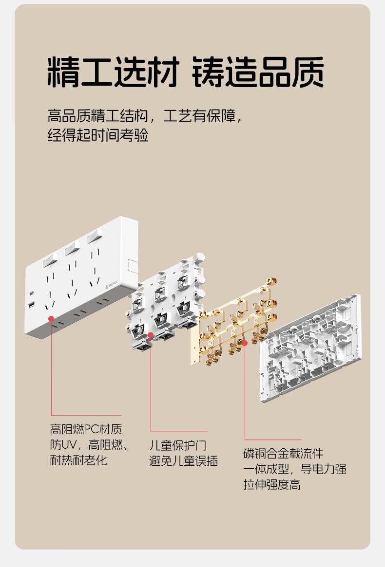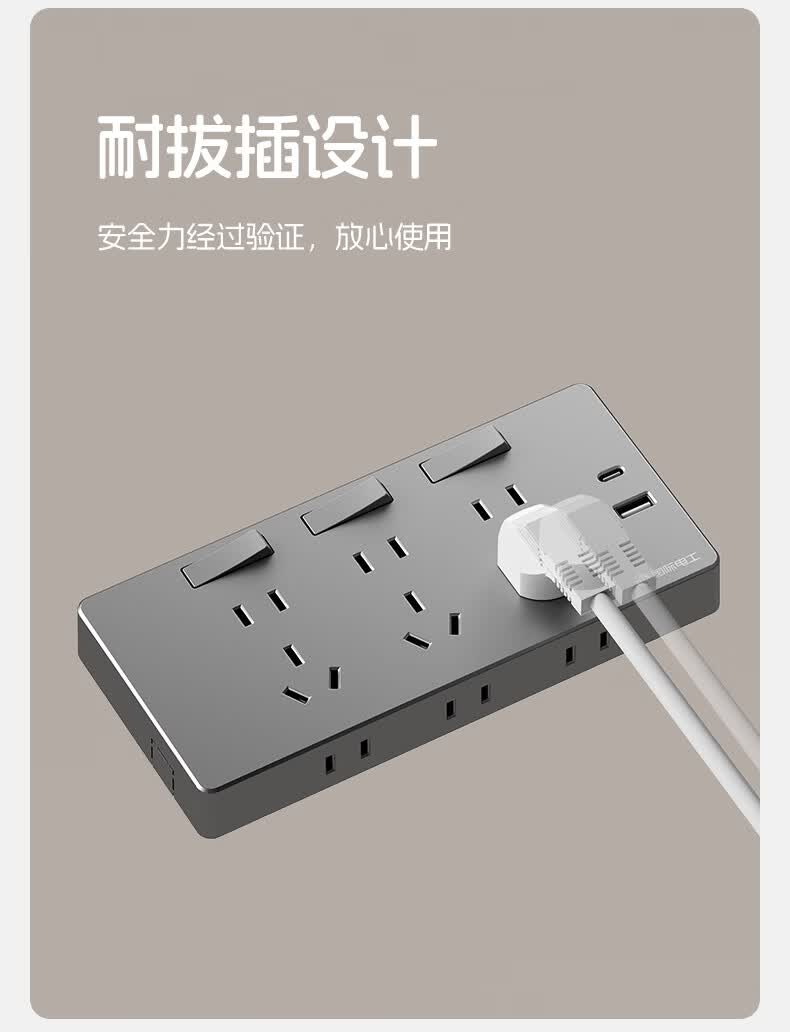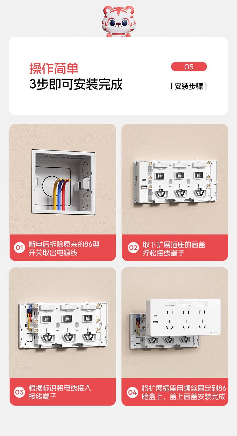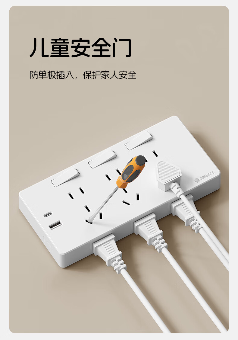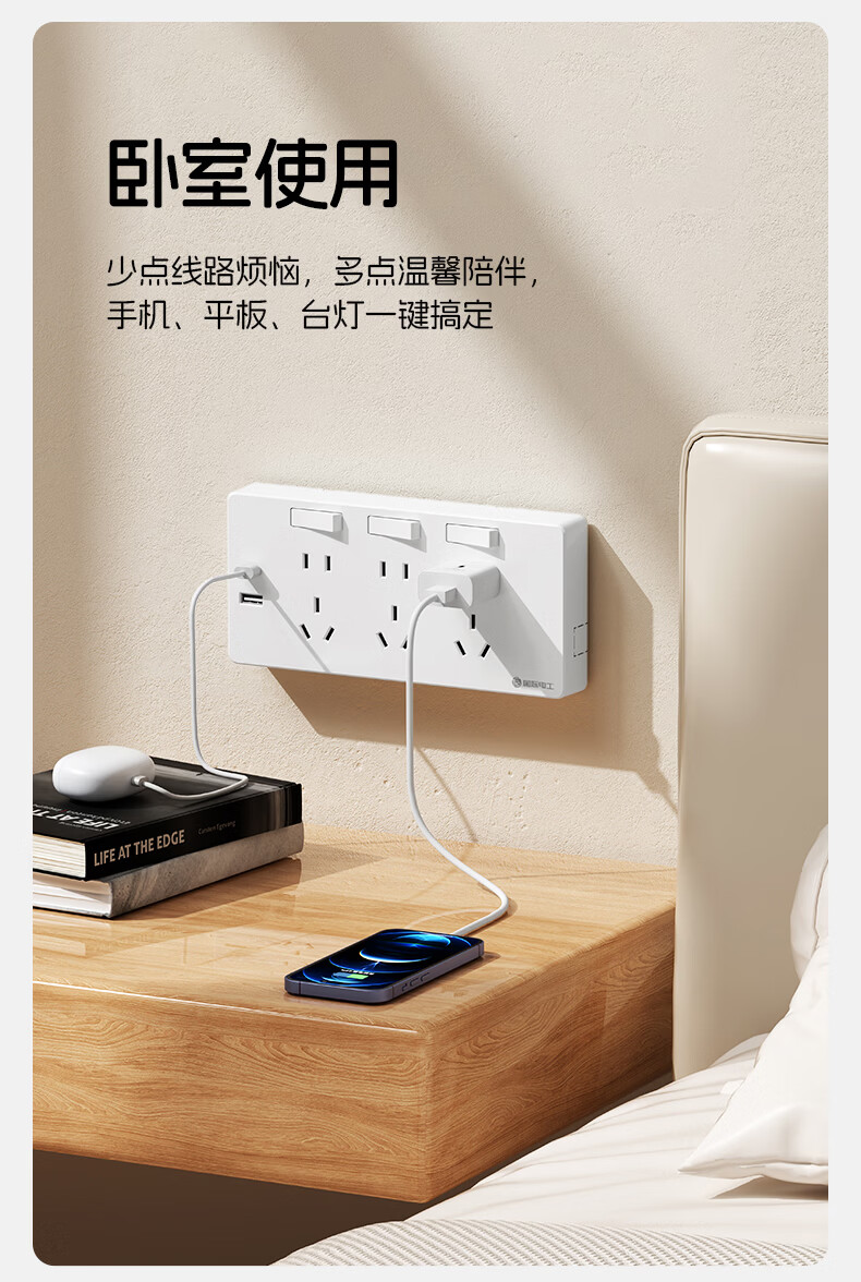 国际电工86型原位扩展插座家用厨房分控带开关排插多功能USB快充拓展插排 白色带USB-三开21孔-向左扩展(2.1A)