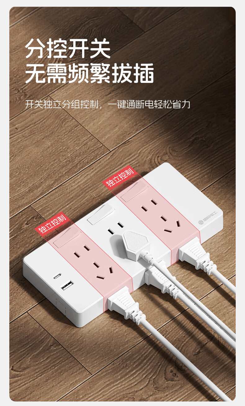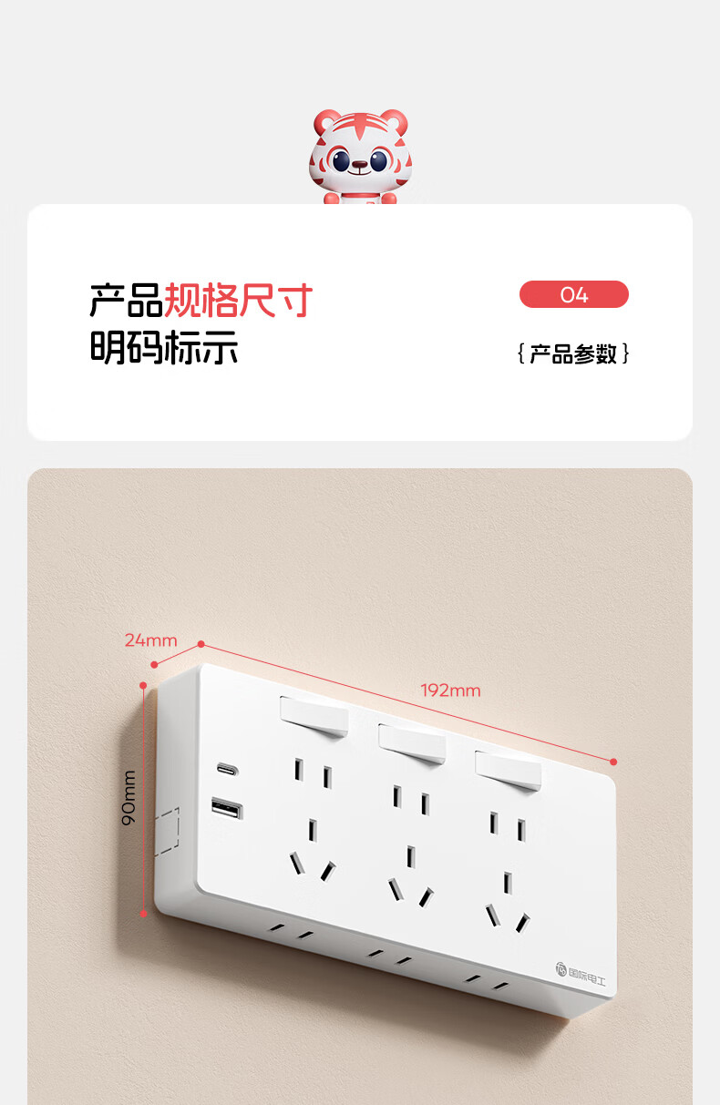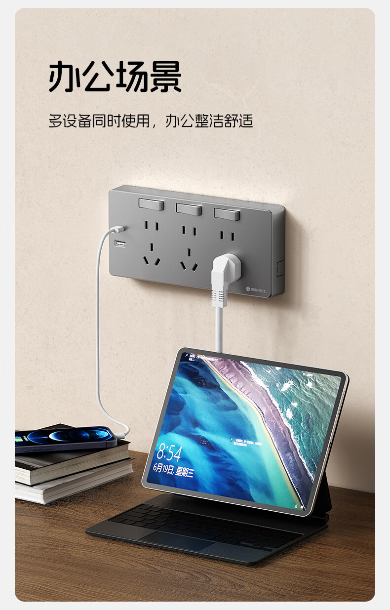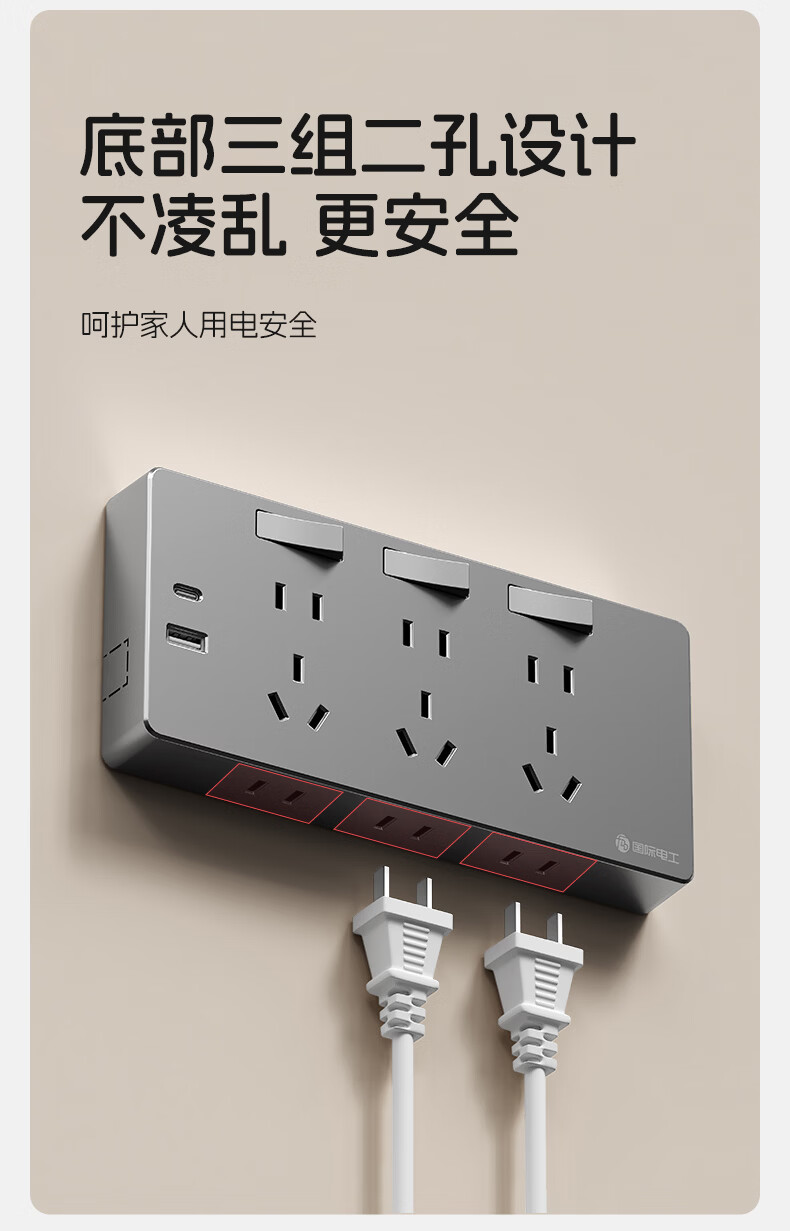 国际电工新国标带线排插办公桌面接线板电源排插斜面多孔位插排带20W快充 四位20孔一键总控【线长0.3米】