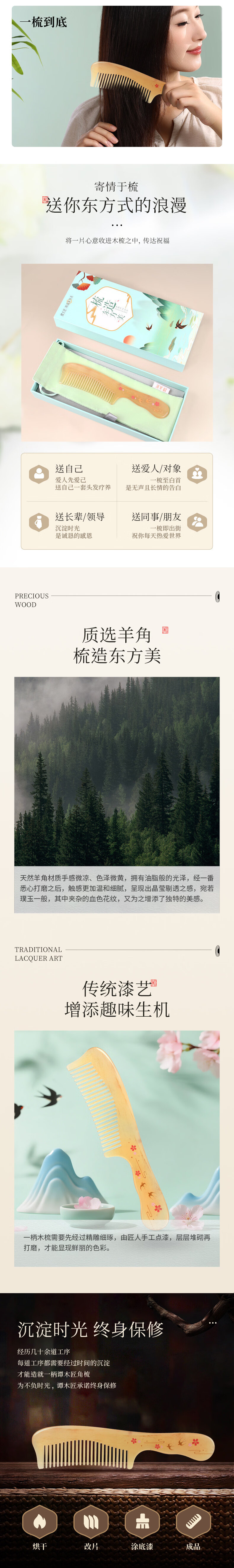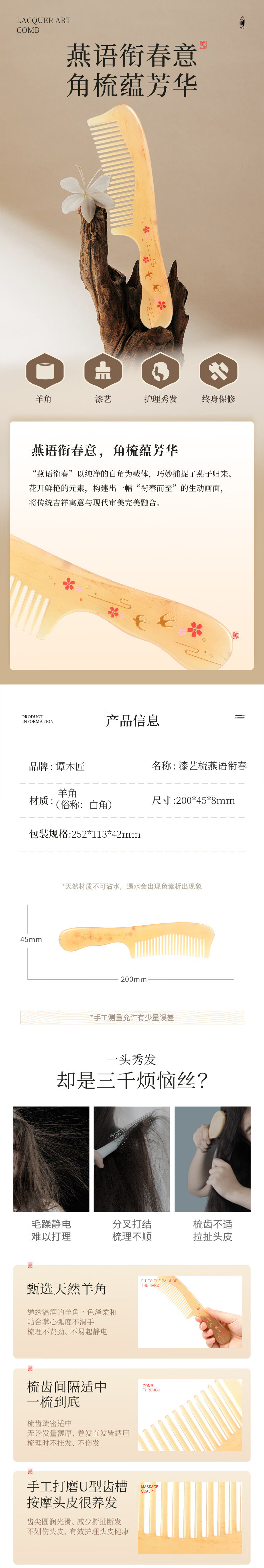 谭木匠羊角有柄梳子礼盒燕语衔春居家日用馈赠亲友礼物温润顺滑按摩头皮