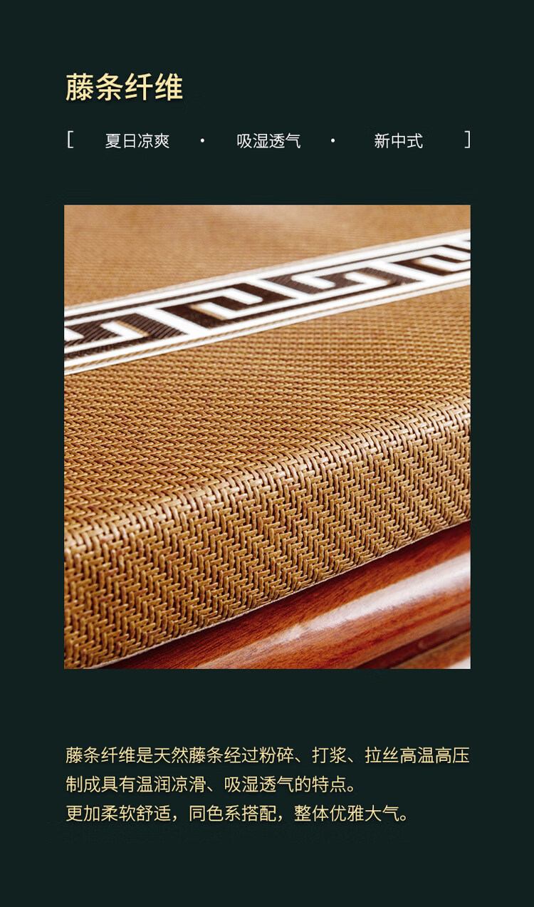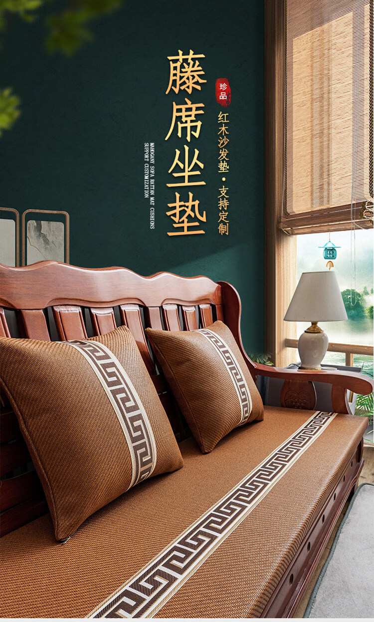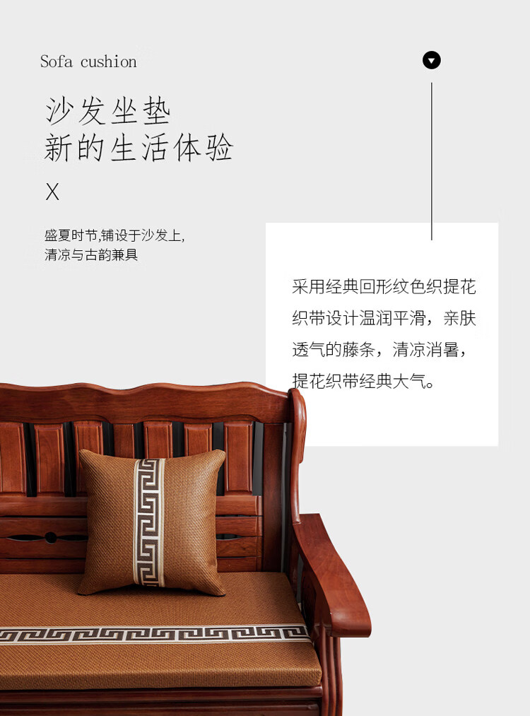 正圣新中式藤席沙发垫四季通用防滑2026年新款红木实木夏季凉席沙发垫 福延年咖(海绵厚3厘米) 单人位50x50cm