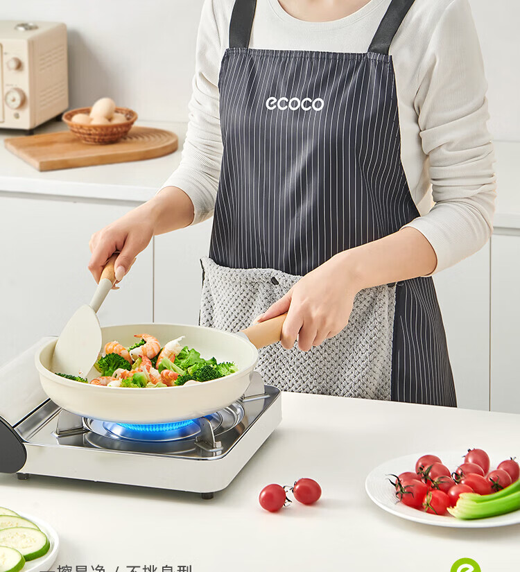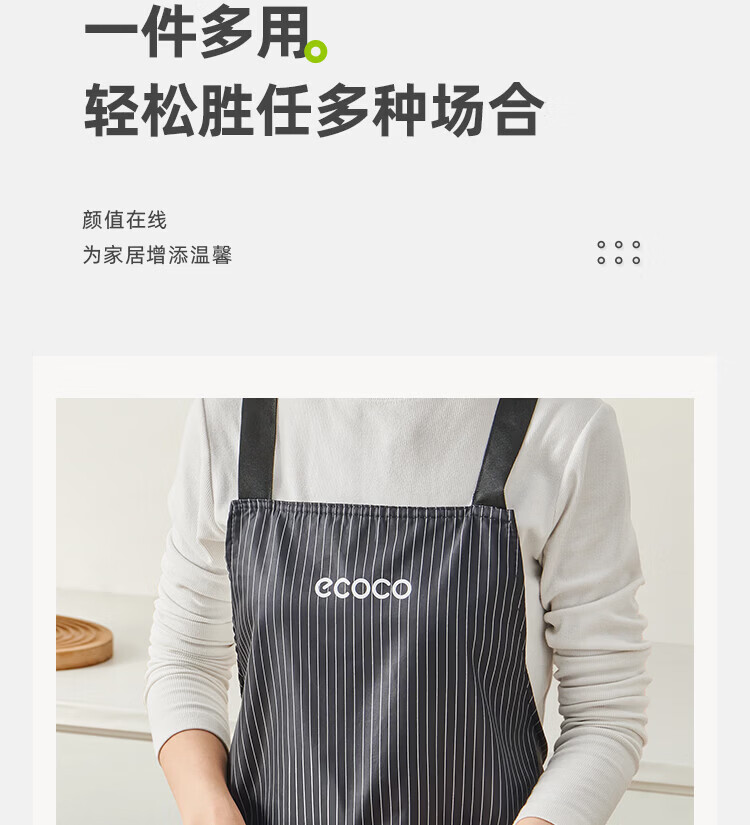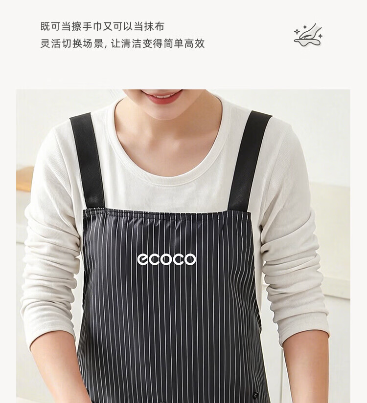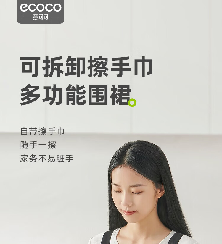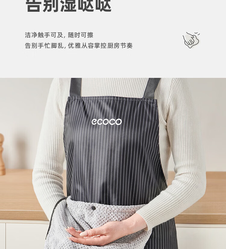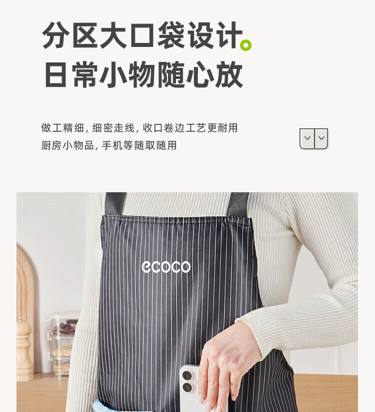 ecoco厨房围裙防水防油家用高级擦手巾可置物工作服围裙罩衣 复古绿