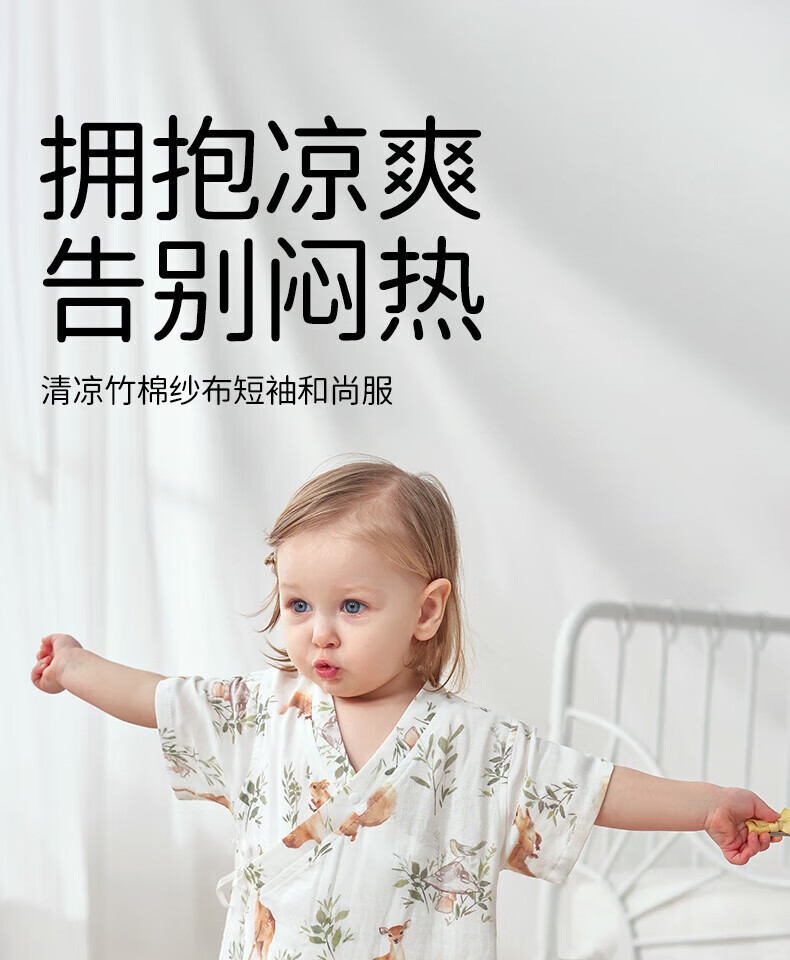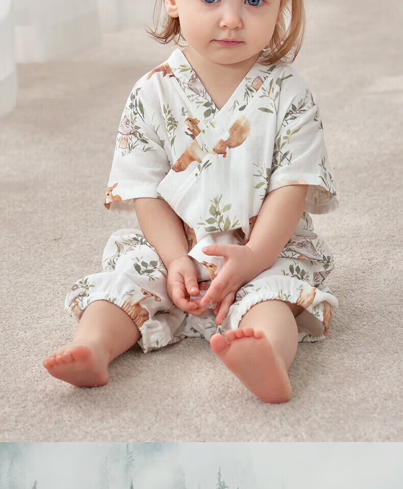 欧孕(OUYUN)婴儿和尚服春夏季连体衣长短袖竹棉新生婴儿宝宝睡衣哈衣爬服 飞艇戏团-短 73cm