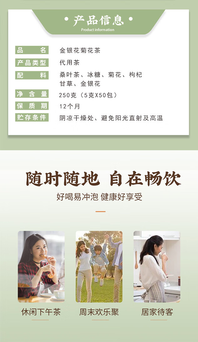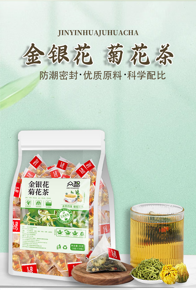 金银花菊花茶菊花清热枸杞甘草金银花桑叶独立组合养生茶正品减脂 金银花菊花茶5g*10包