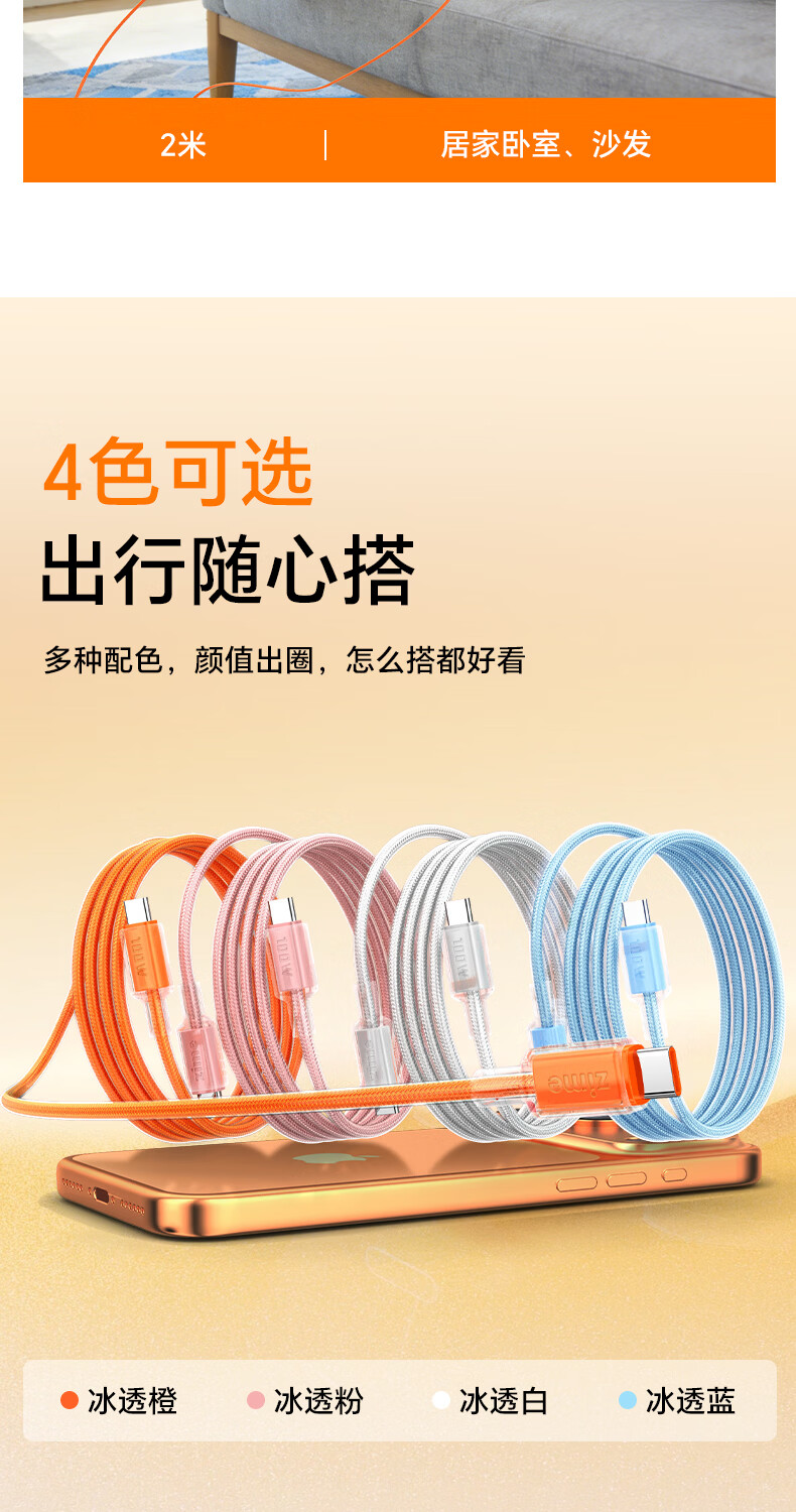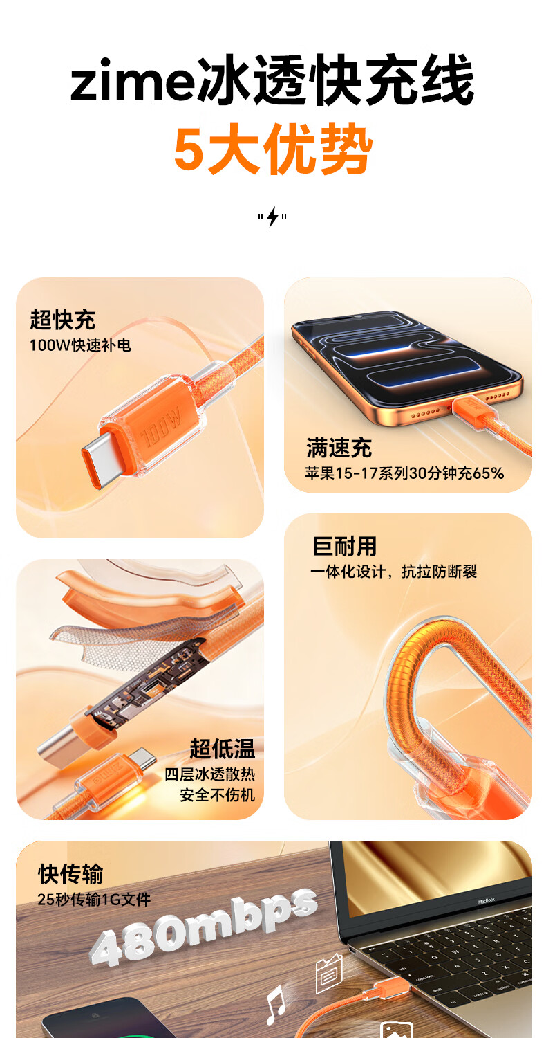 ZIMEtype-c数据线PD100W快充苹果16/15充电线车载5A适用iPhone17/16iPad Pro华为mate70小米笔记本