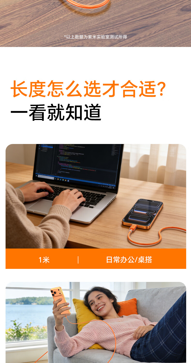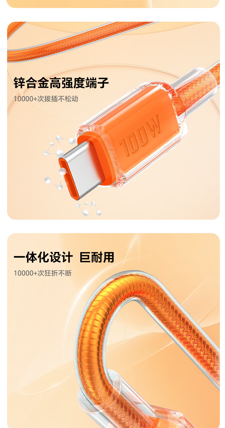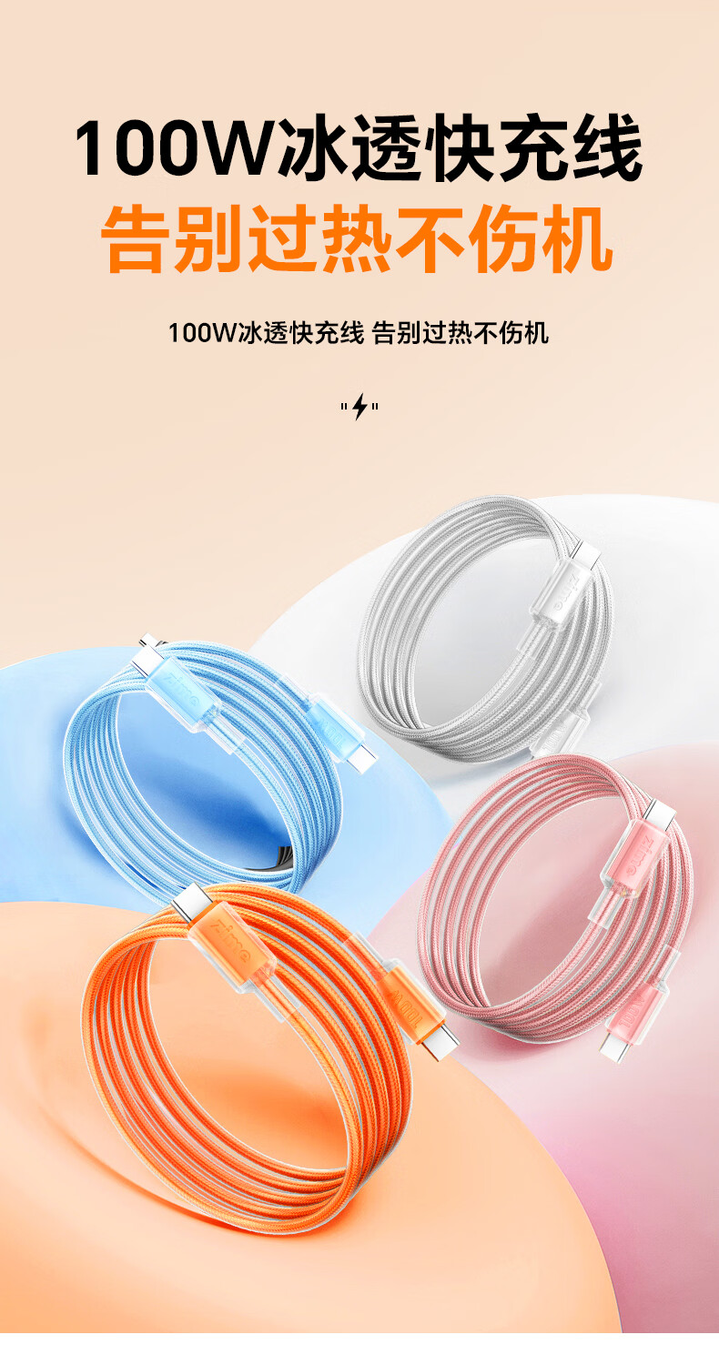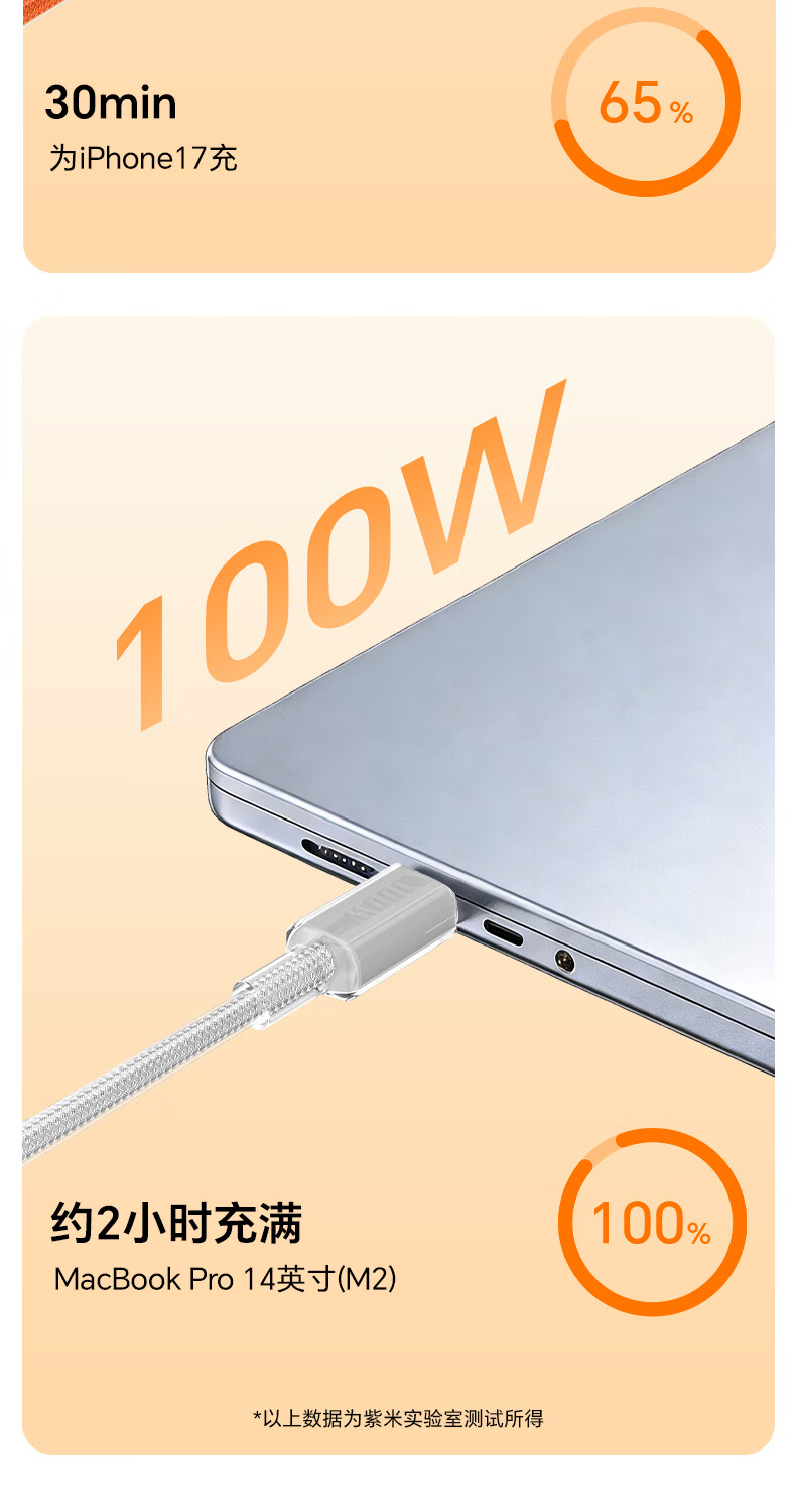 ZIME【低温快充】紫米100W快充数据线充电线抗弯耐脏适用华为小米OV安卓手机平板车载