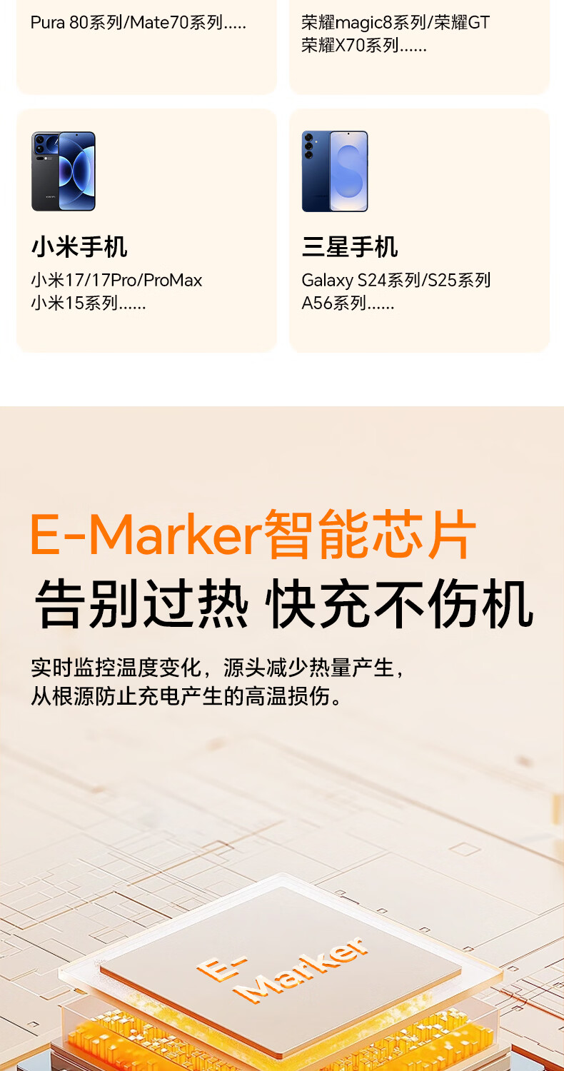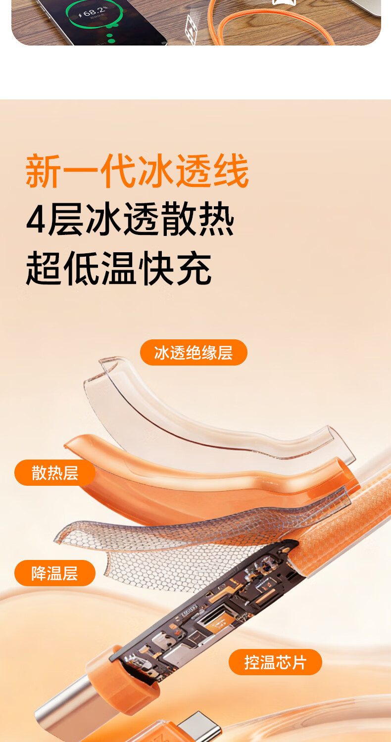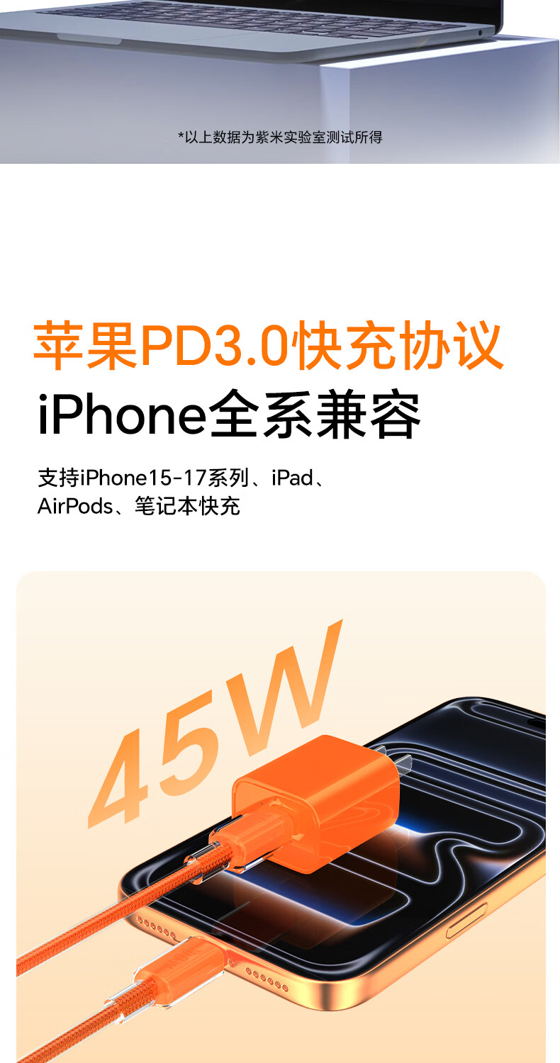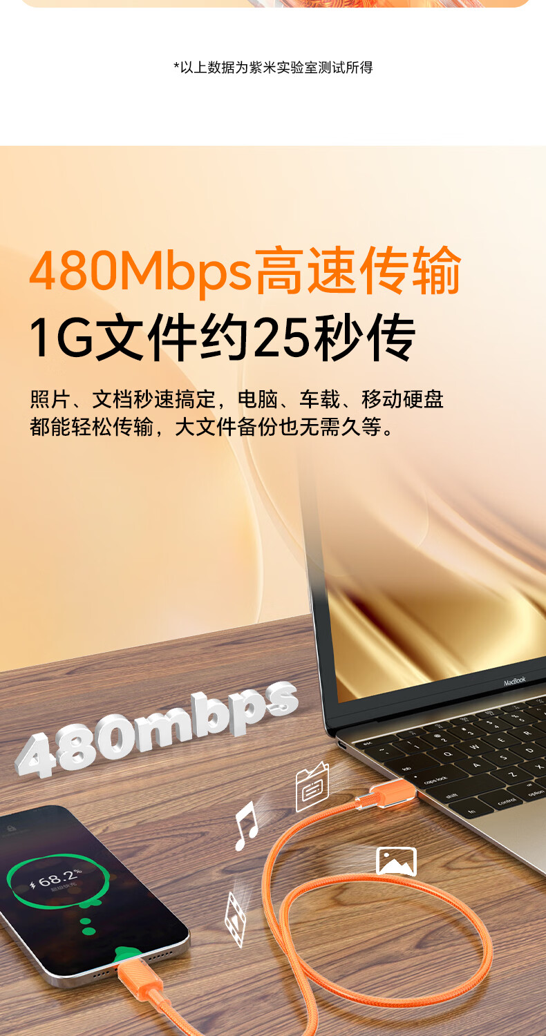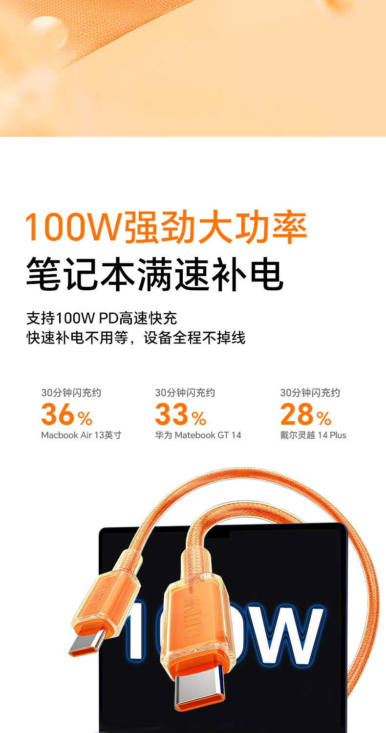 ZIME【低温快充】紫米100W快充数据线充电线抗弯耐脏适用华为小米OV安卓手机平板车载