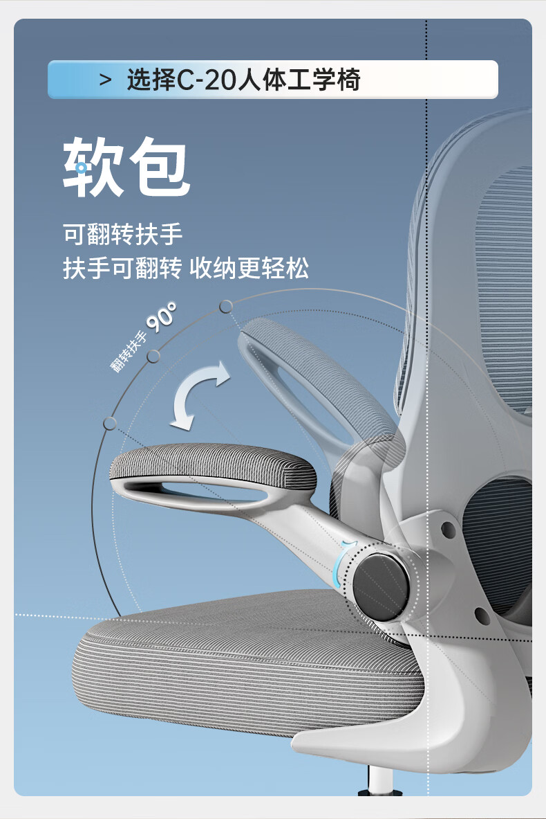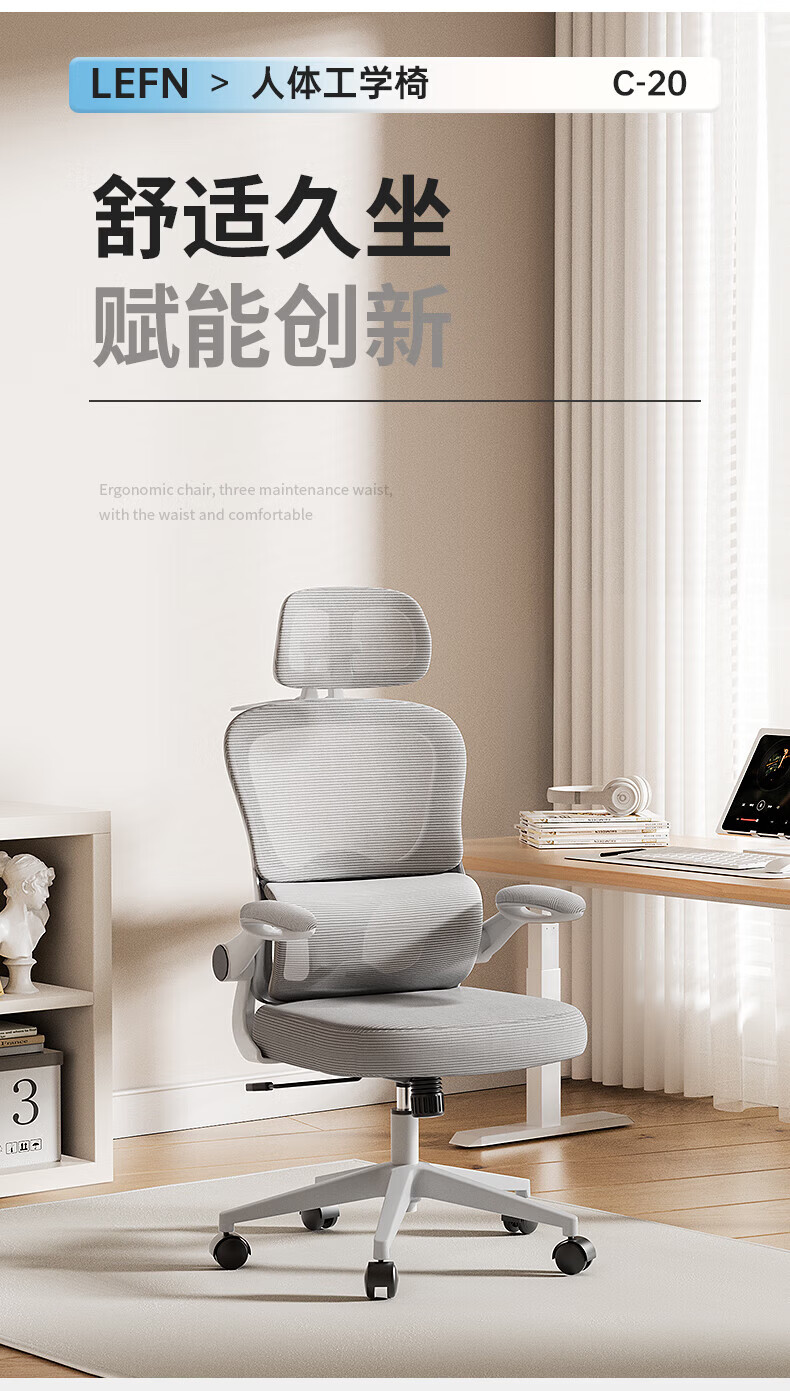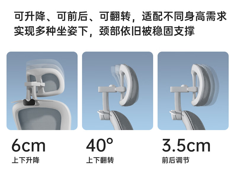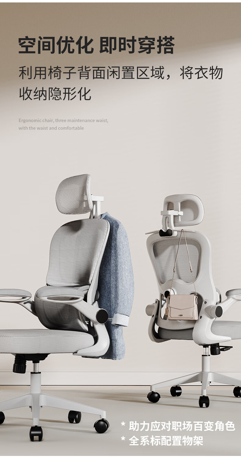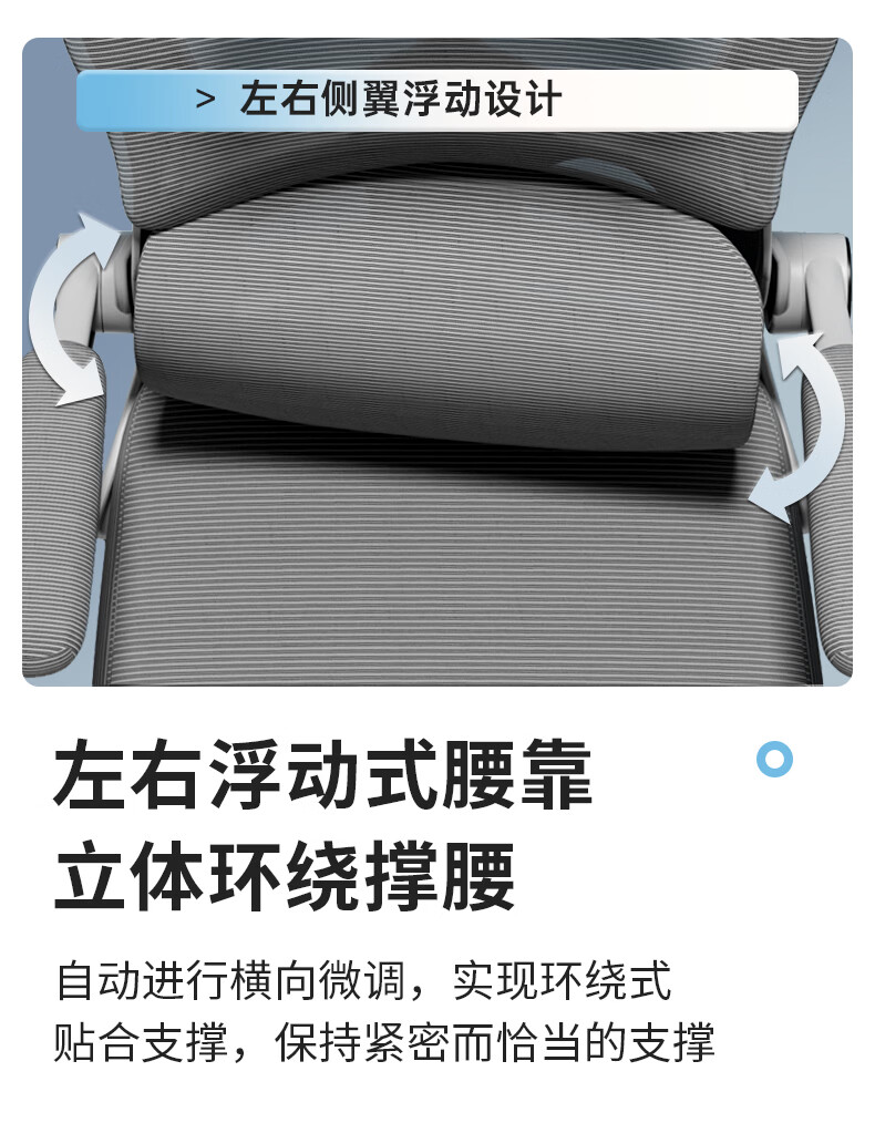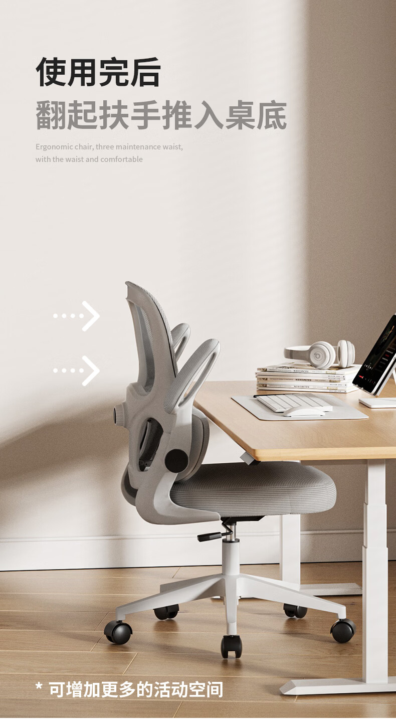悠昊家用电脑椅久坐舒适双靠背人体工学椅宿舍书房椅办公座椅 灰框灰网-头枕