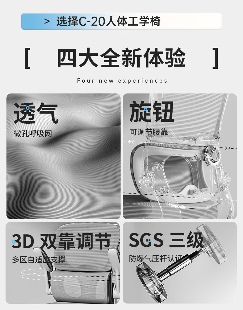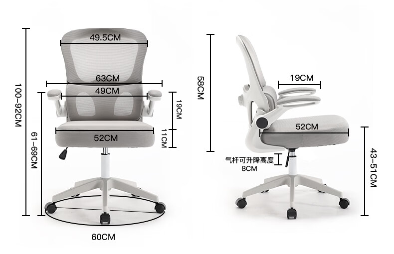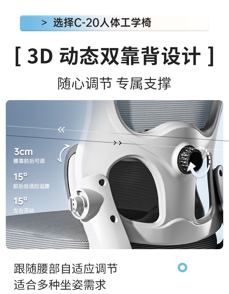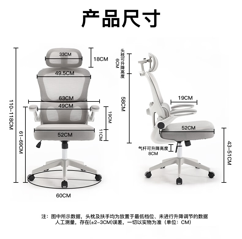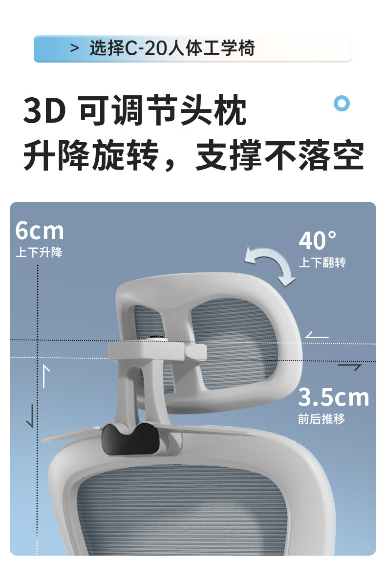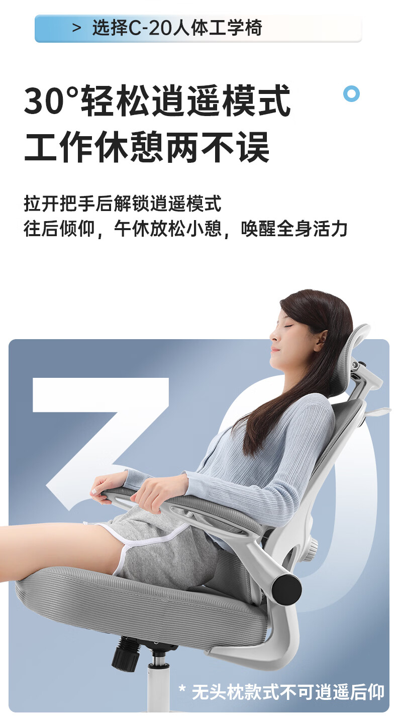悠昊家用电脑椅久坐舒适双靠背人体工学椅宿舍书房椅办公座椅 灰框灰网-头枕