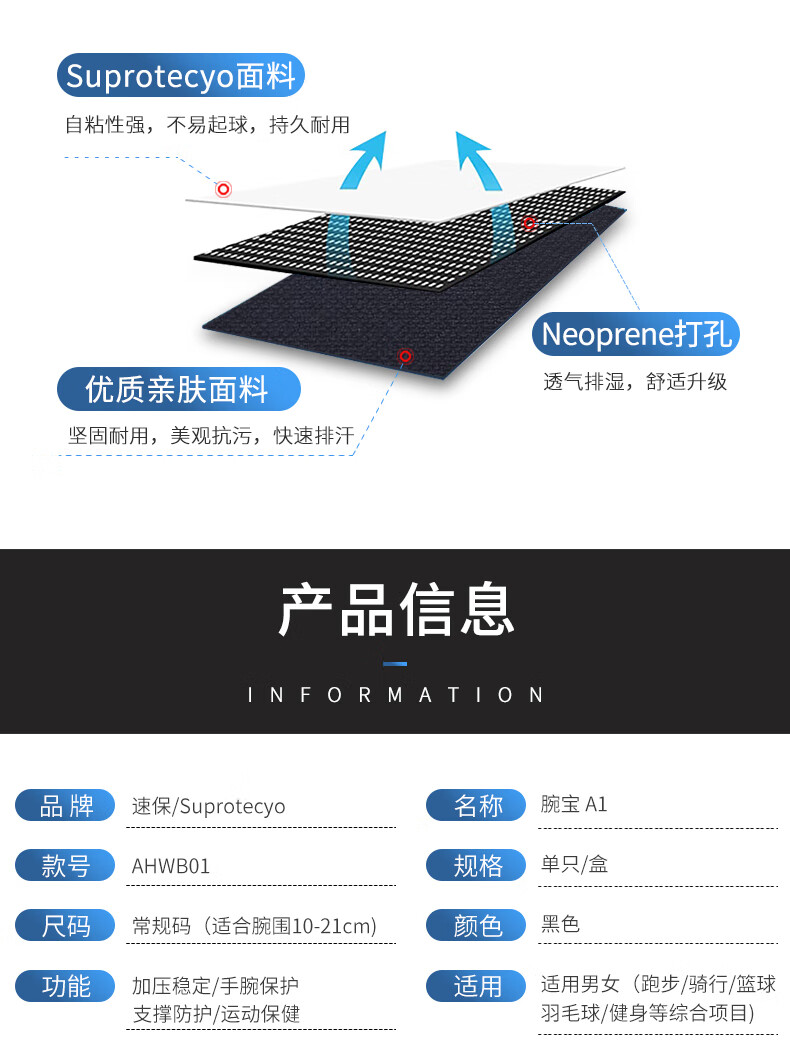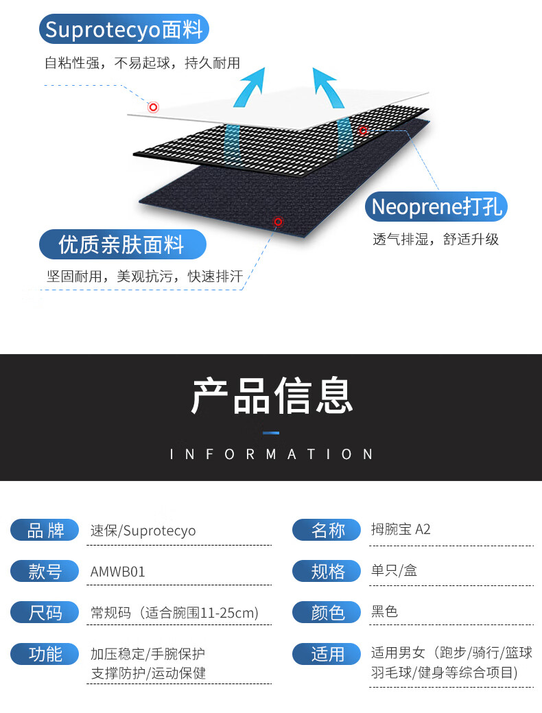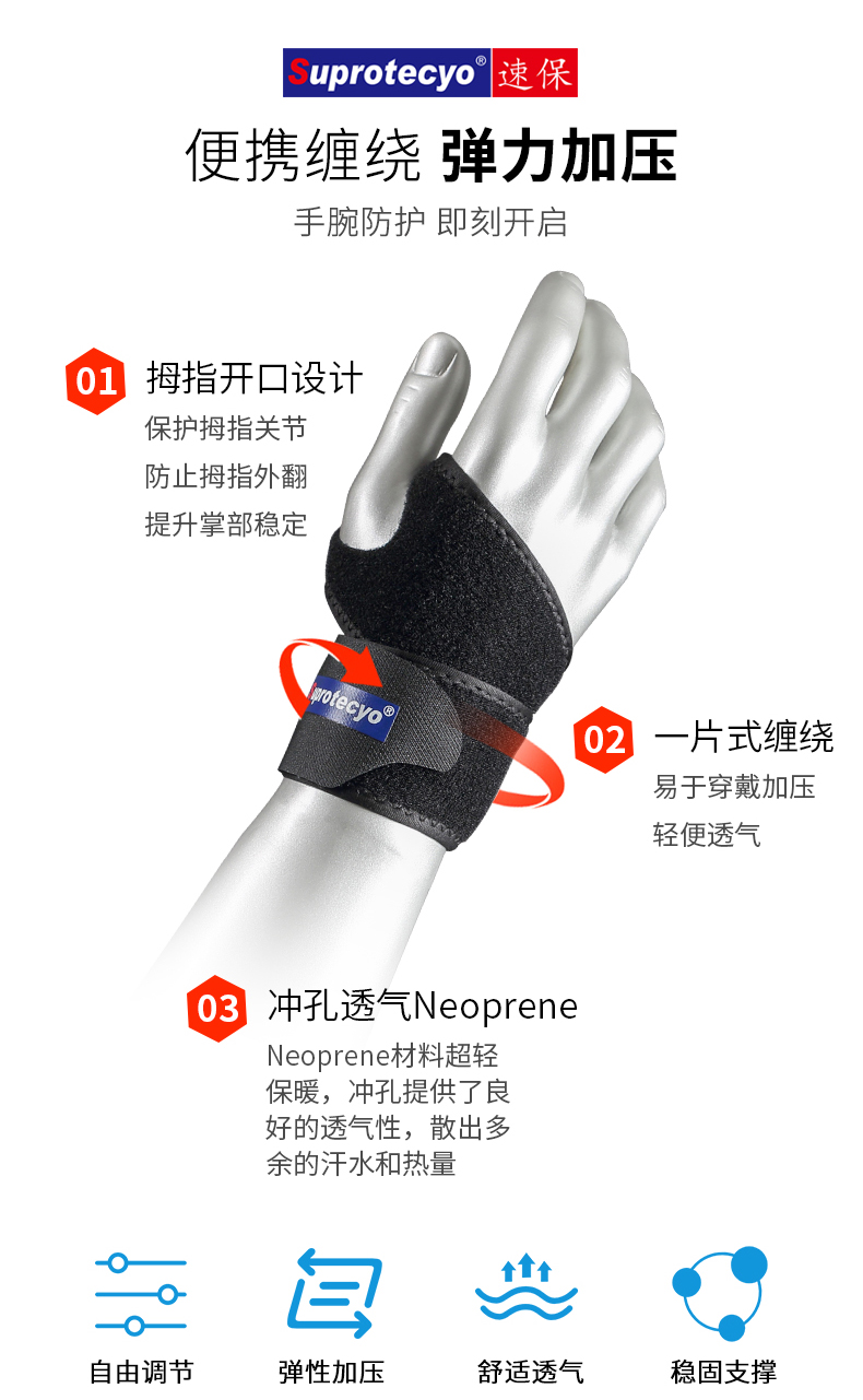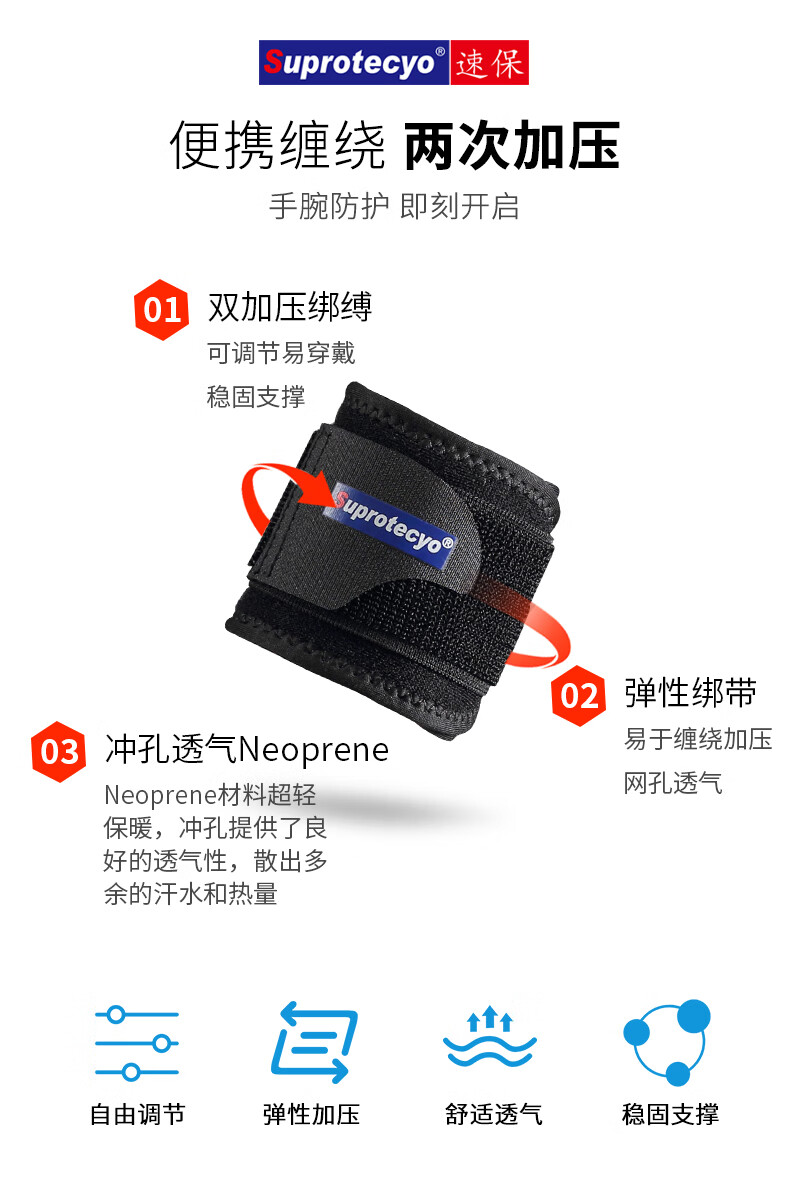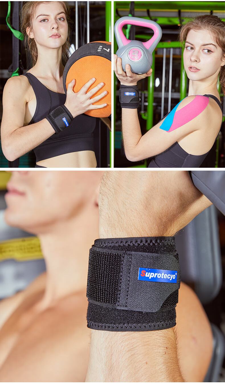 Suprotecyo运动护腕男女羽毛球杠铃健身篮球腱鞘保护加压手腕防扭伤护具腕带 环绕双加压护腕A1(单只)
