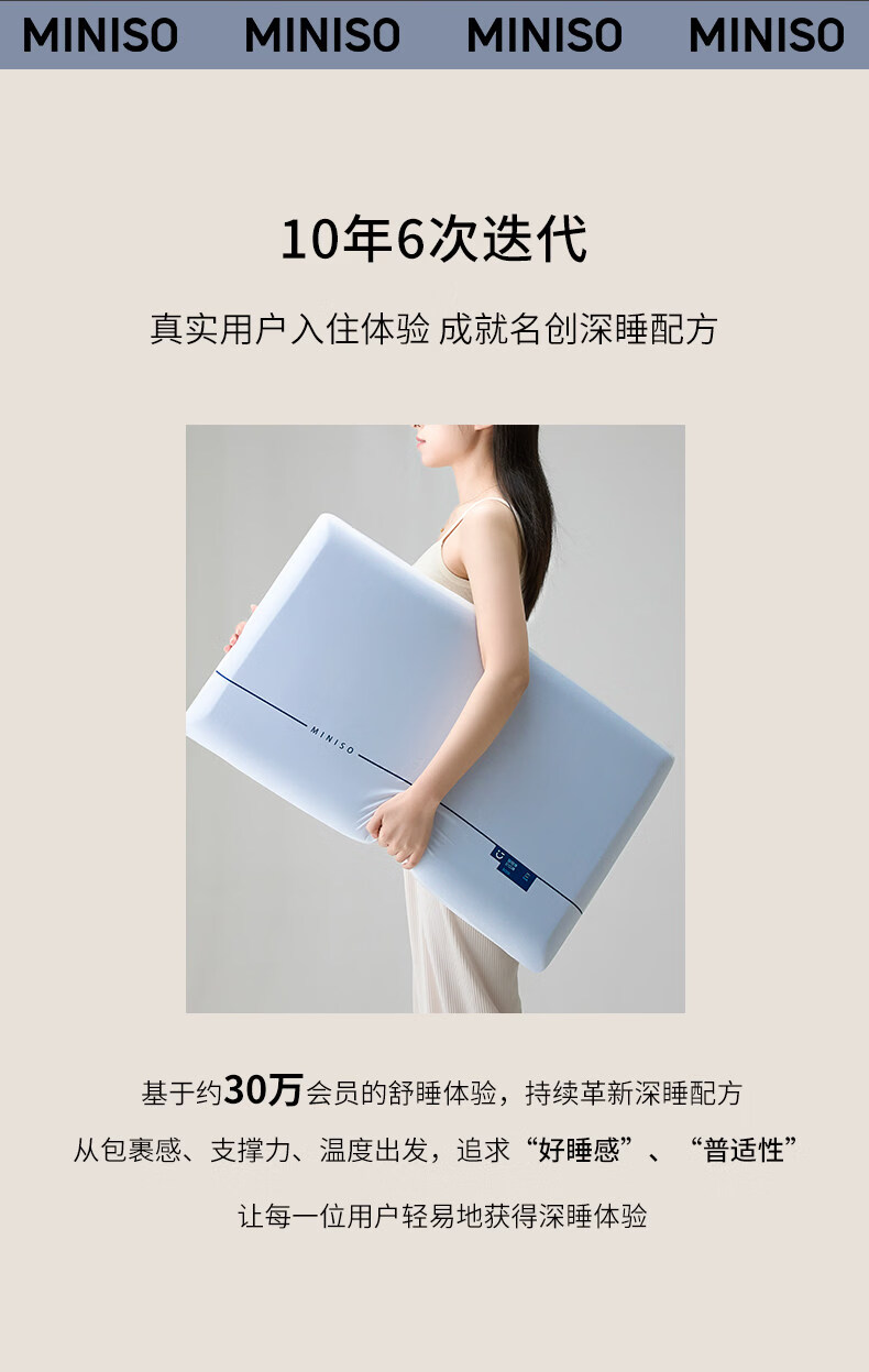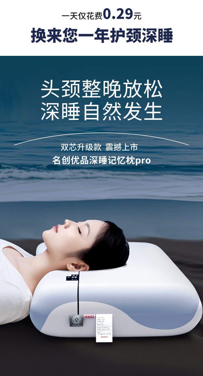 名创优品(MINISO)深睡记忆棉双芯枕头 家用慢回弹护颈枕睡眠枕芯成人单只酒店枕 慢回弹记忆枕|单支装(6cm) 无规格