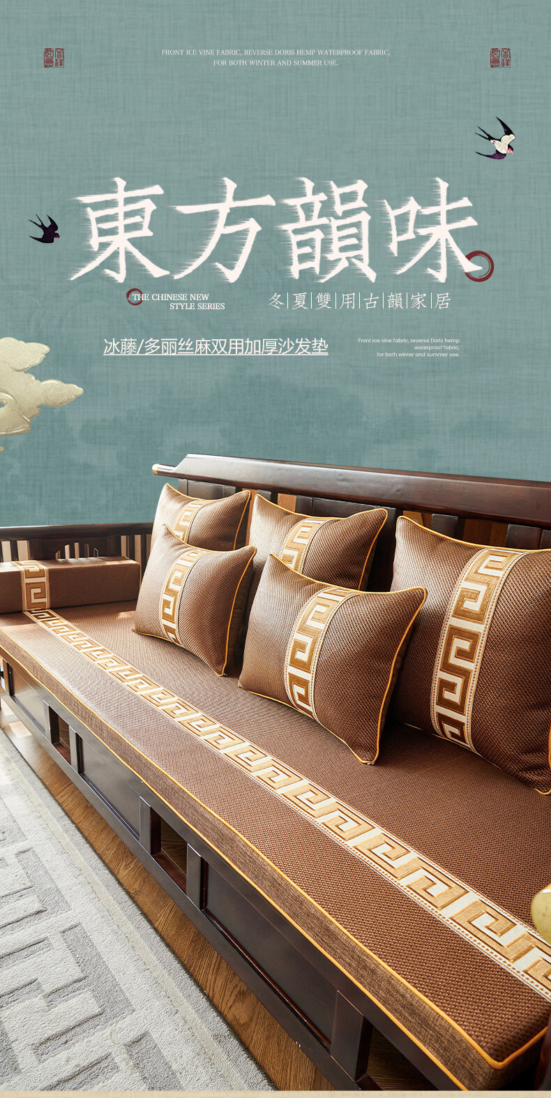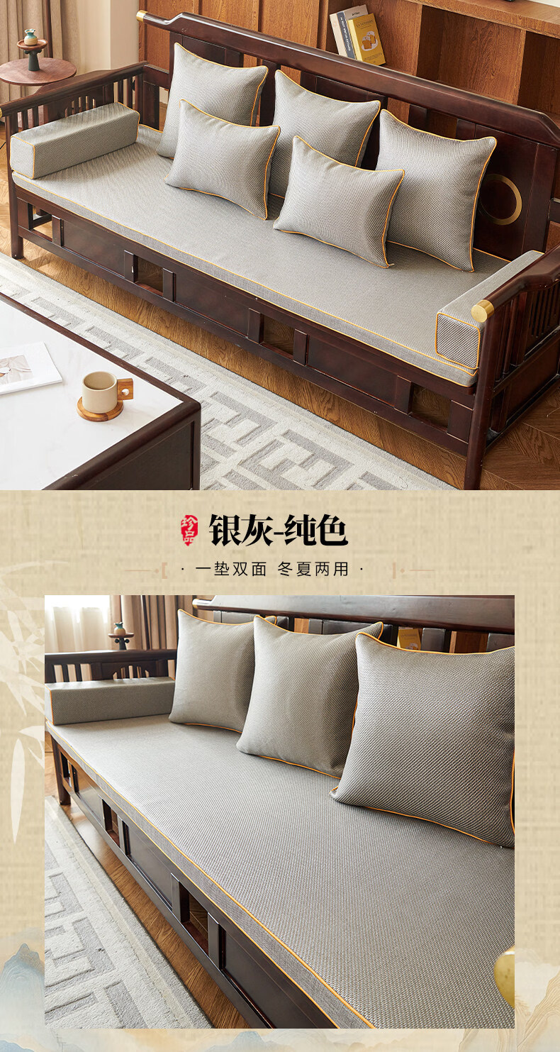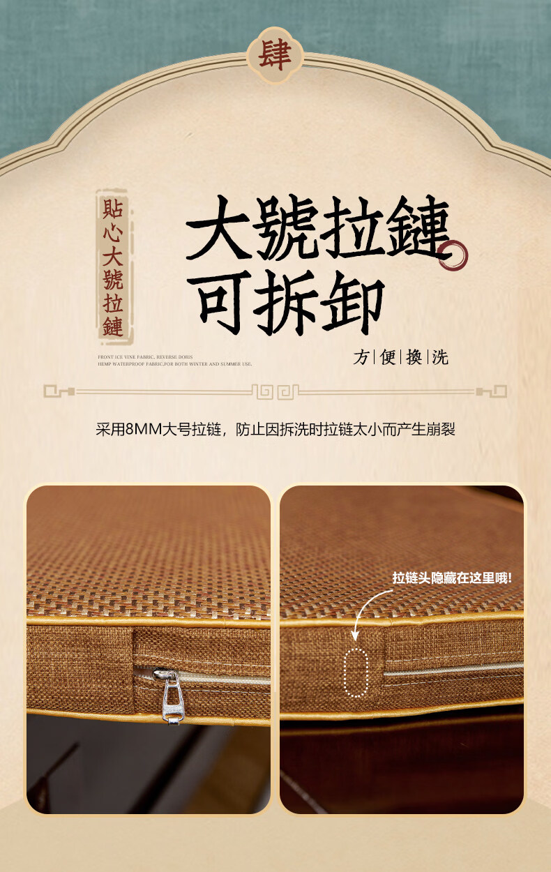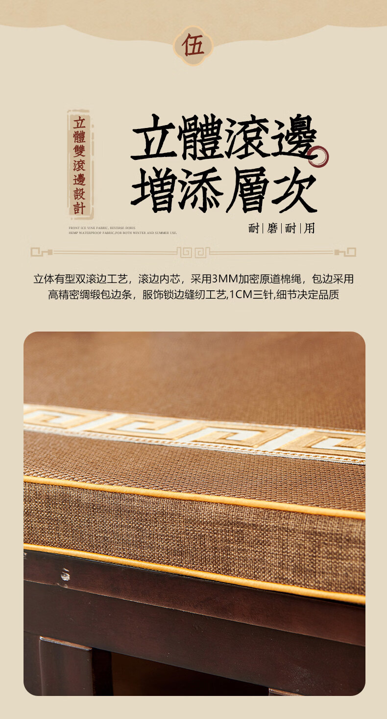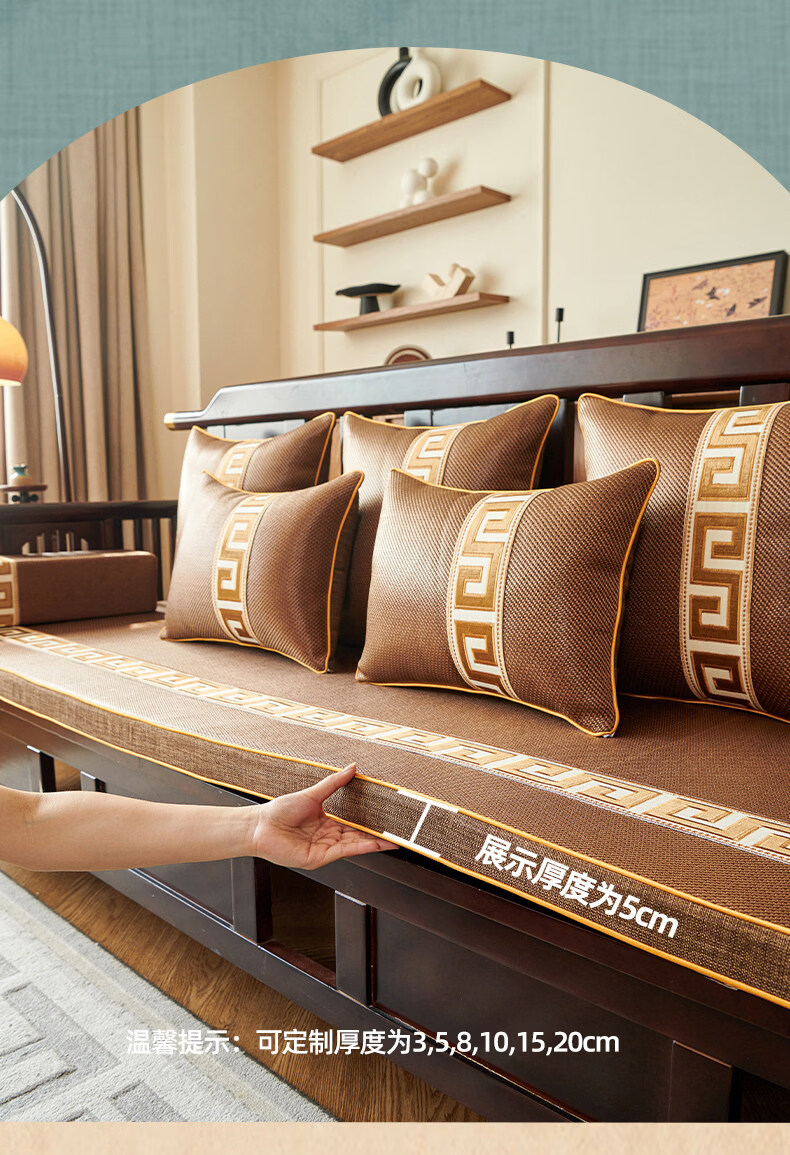 正圣新中式藤席沙发垫四季通用防滑2026年新款夏季藤麻双面沙发海绵垫 万福深咖【一垫双用】 52*55cm单人座【升级50D海绵】