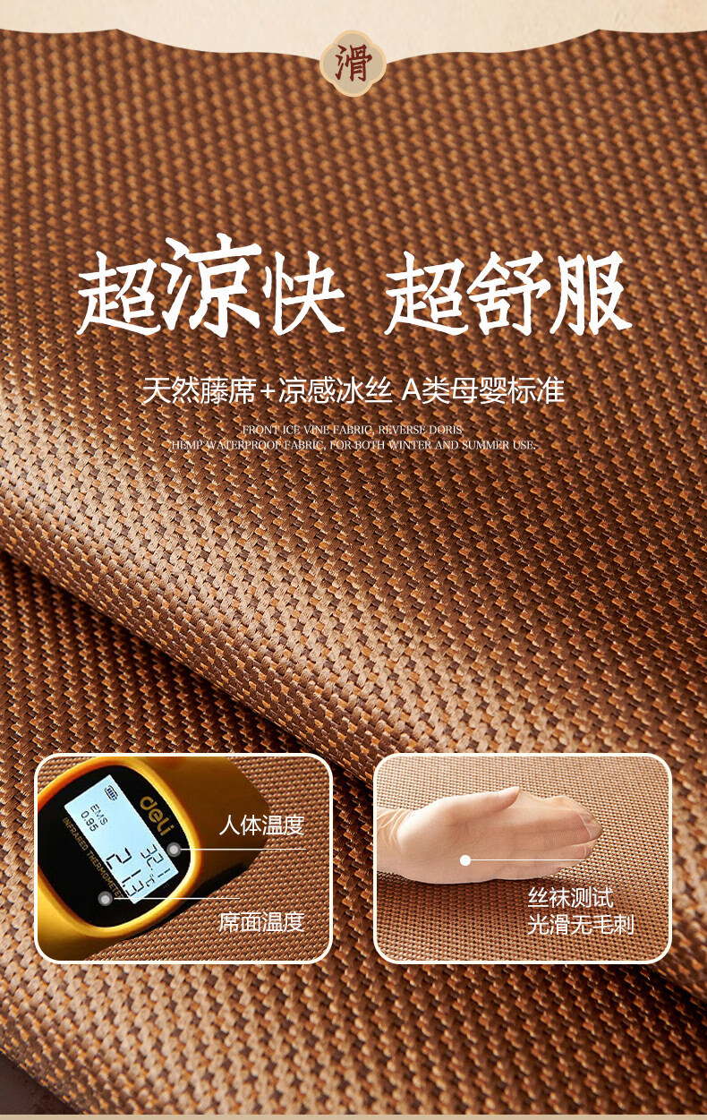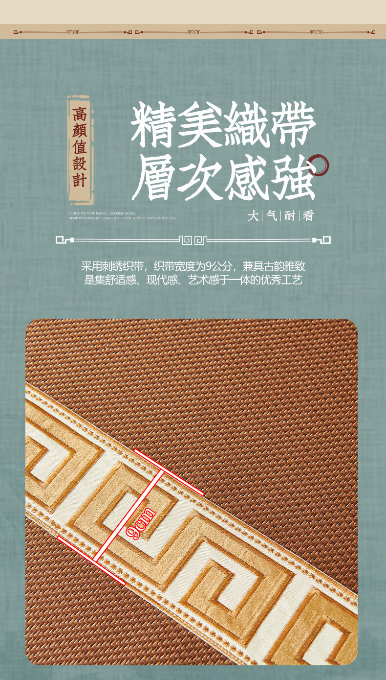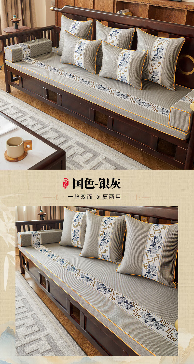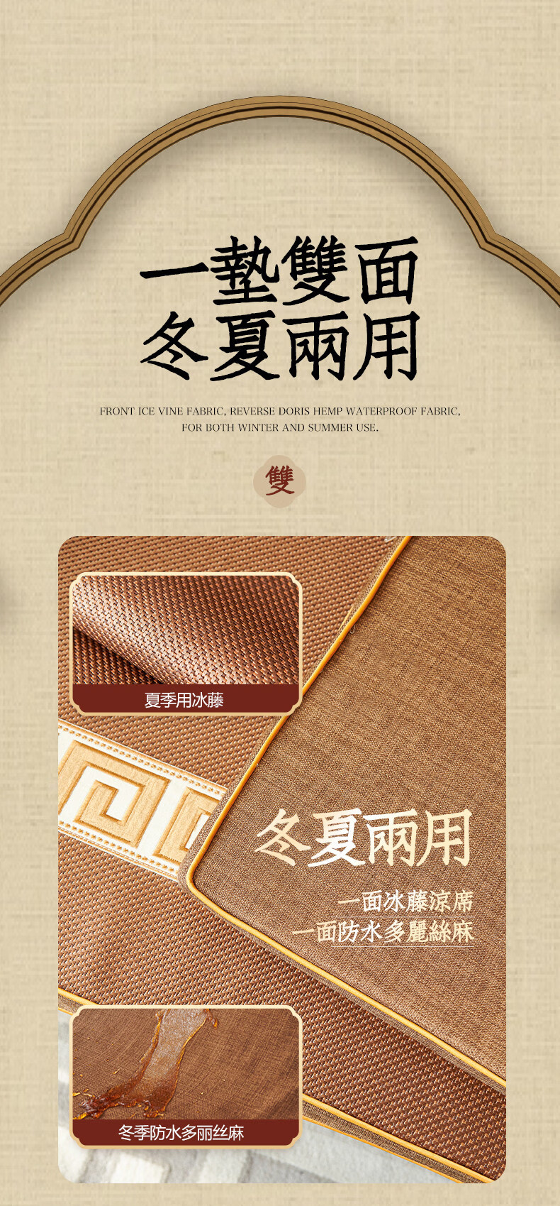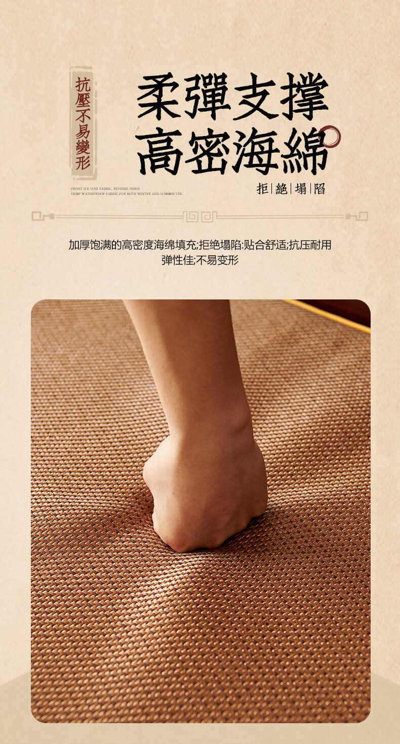 正圣新中式藤席沙发垫四季通用防滑2026年新款夏季藤麻双面沙发海绵垫 万福深咖【一垫双用】 52*55cm单人座【升级50D海绵】