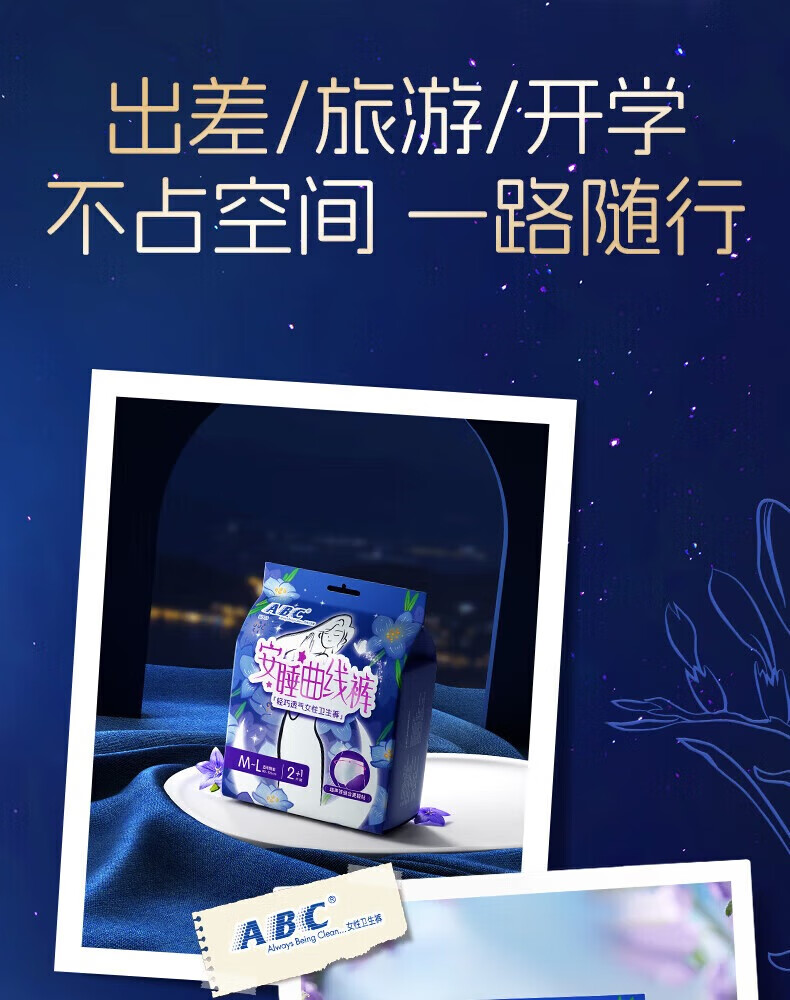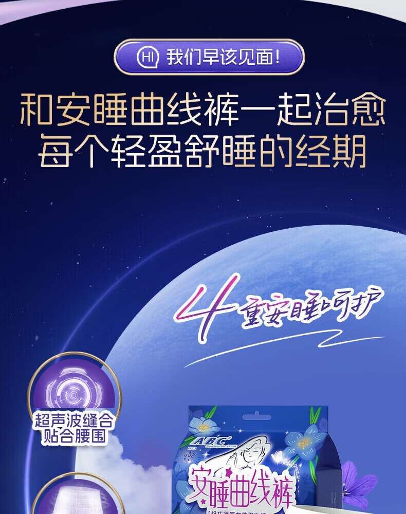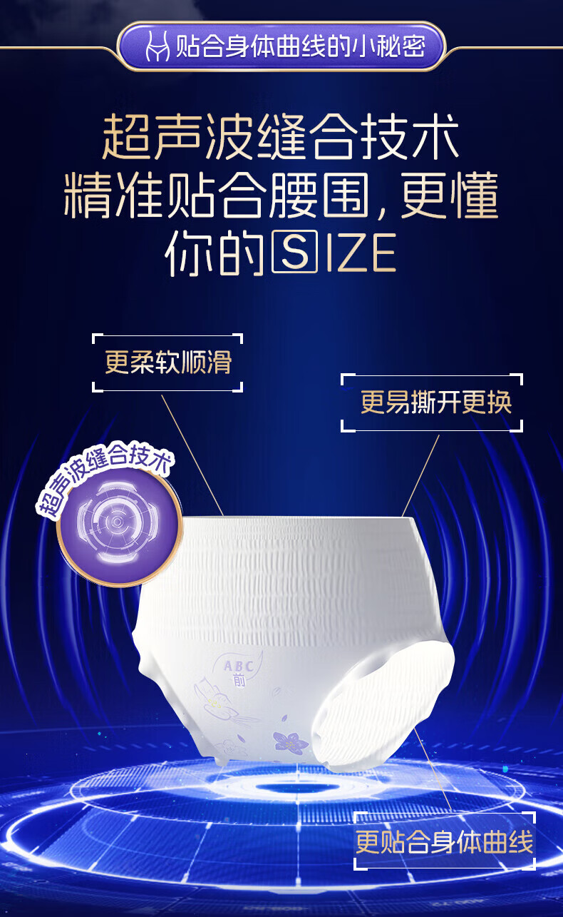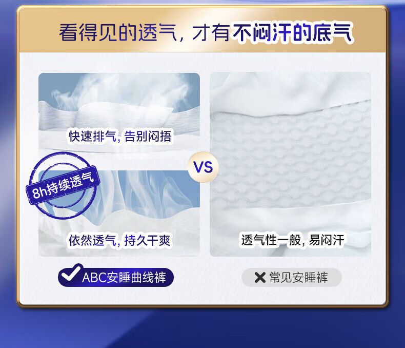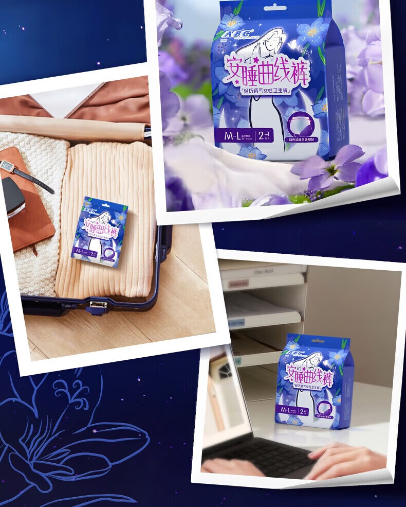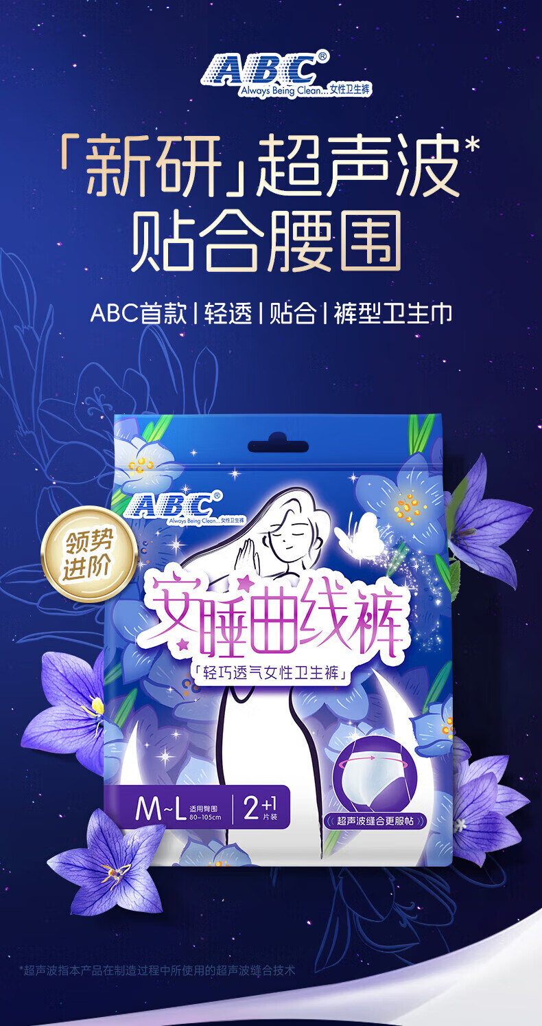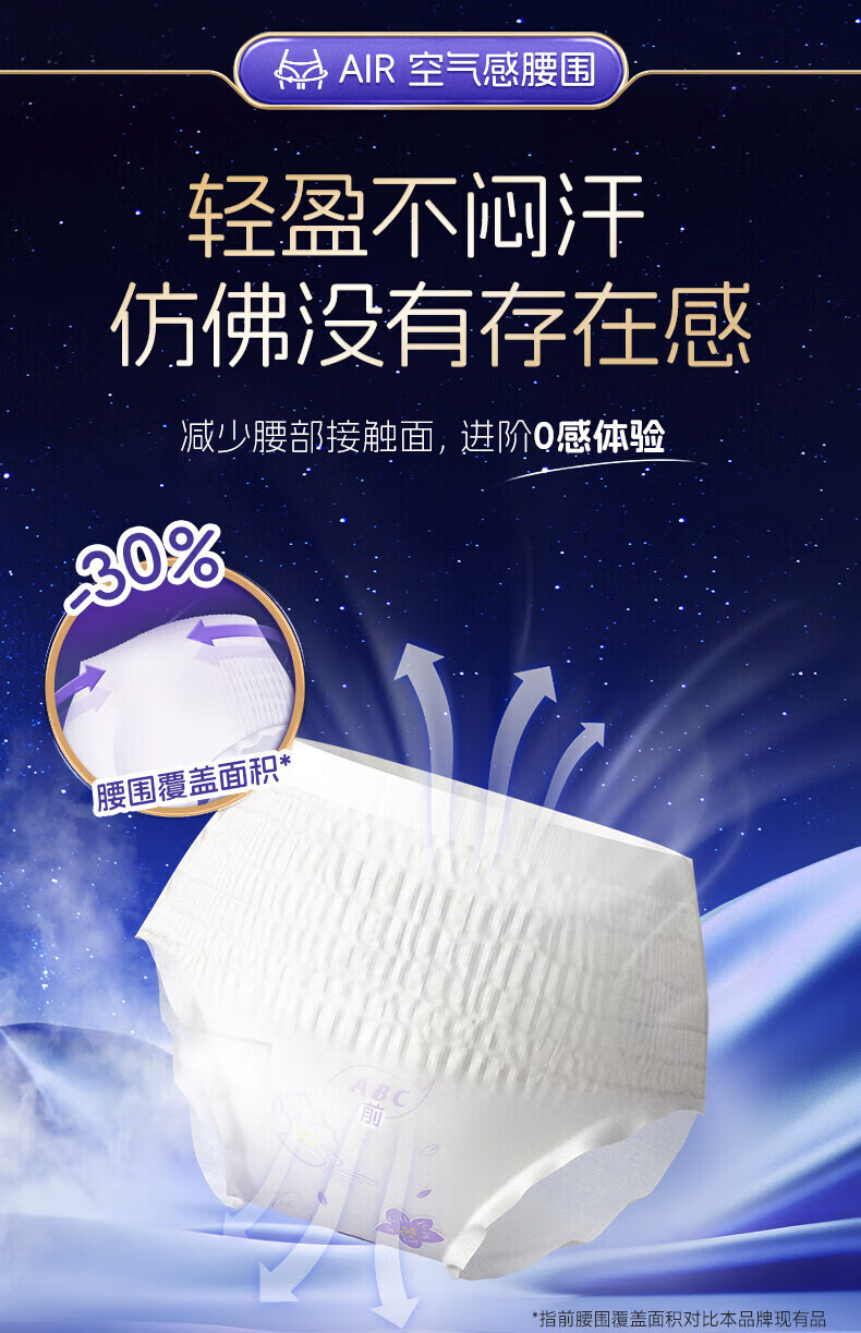 ABC安睡曲线裤透气防漏不闷热贴合腰围棉柔安全裤12条M-L码80-140斤c