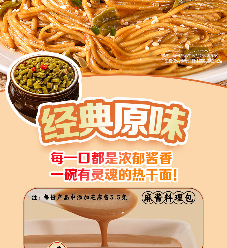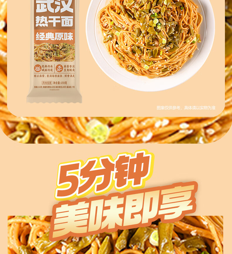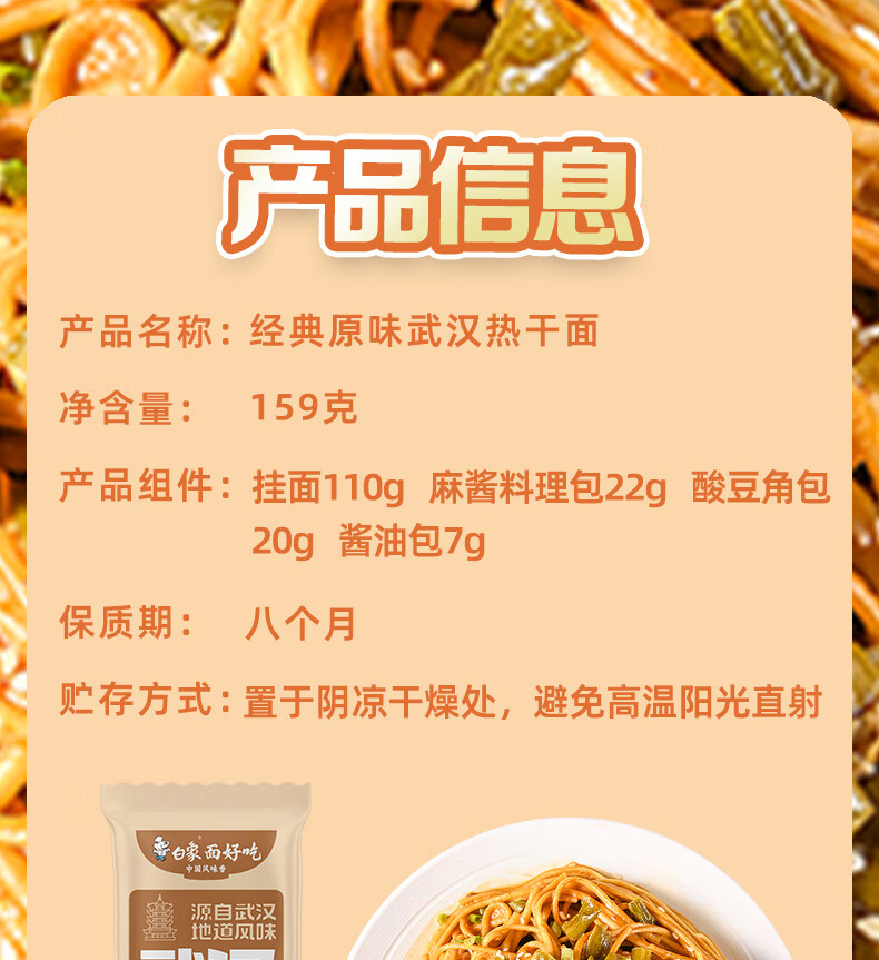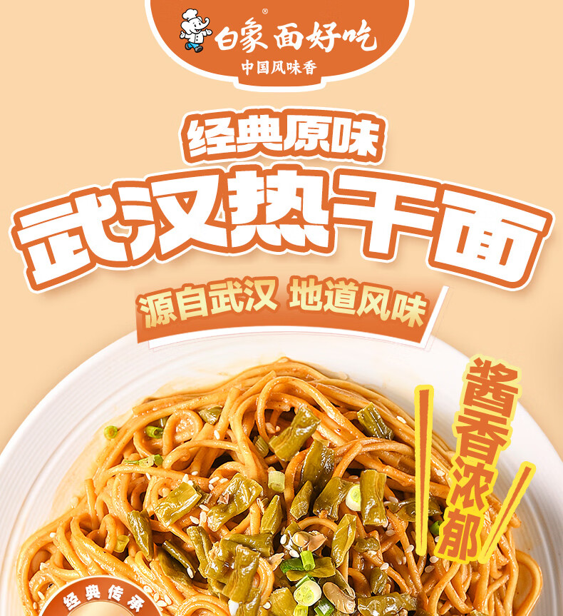 白象 武汉热干面经典原味159g*6包 非油炸面条碱水面细拌面